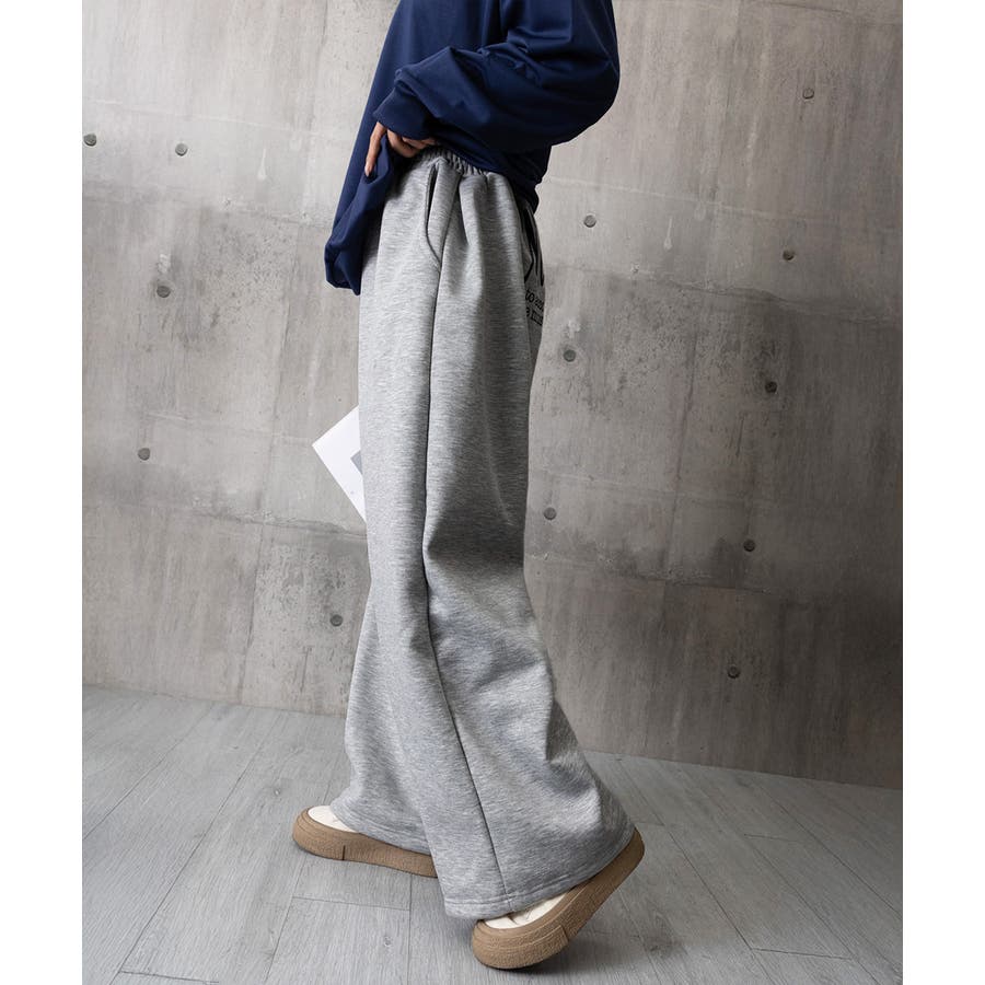ロゴデザインが目を引く、ルーズシルエットのワイドスウェットパンツ。