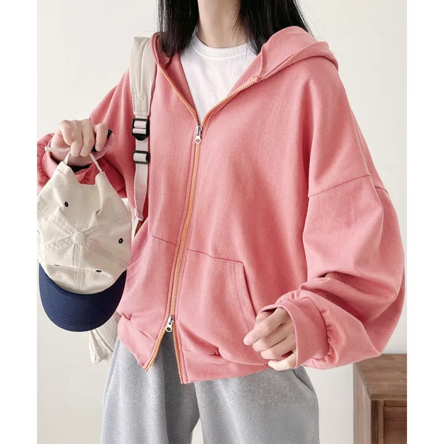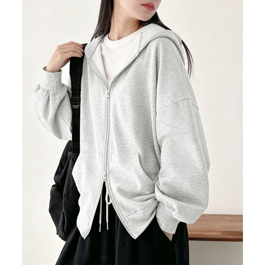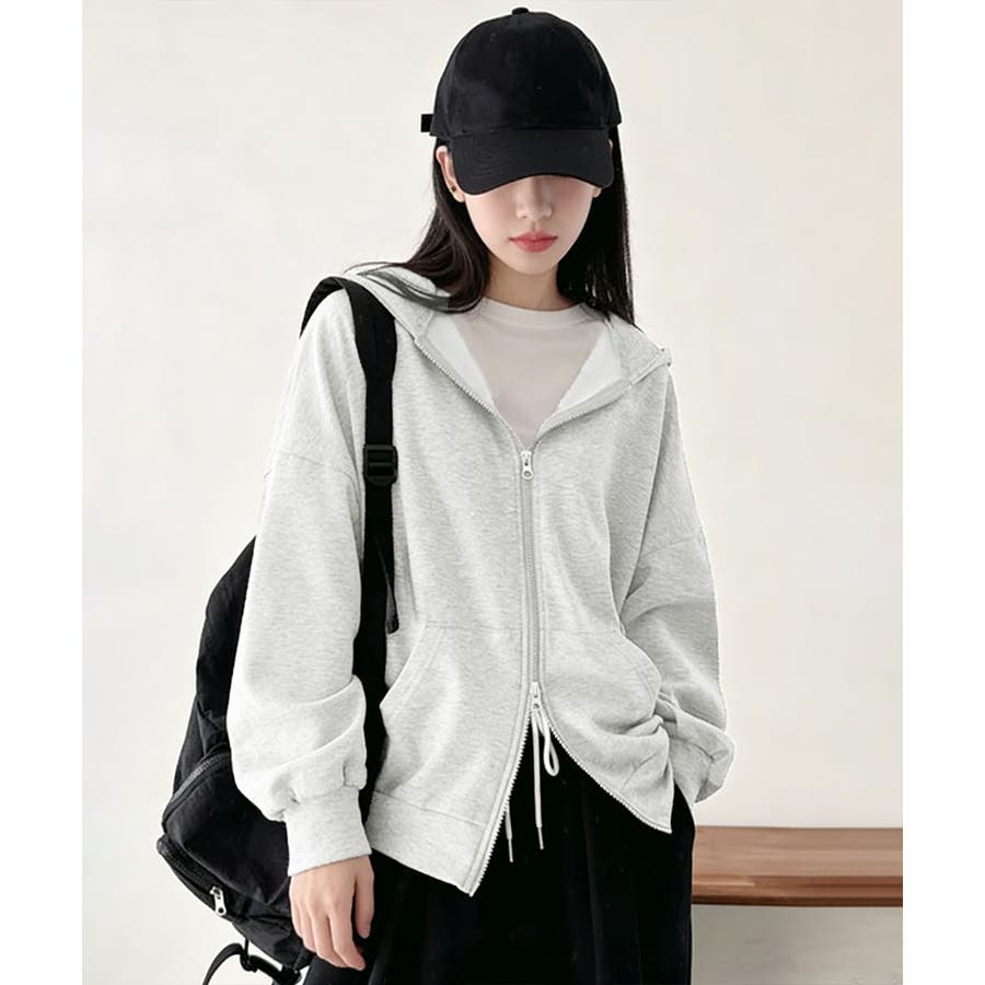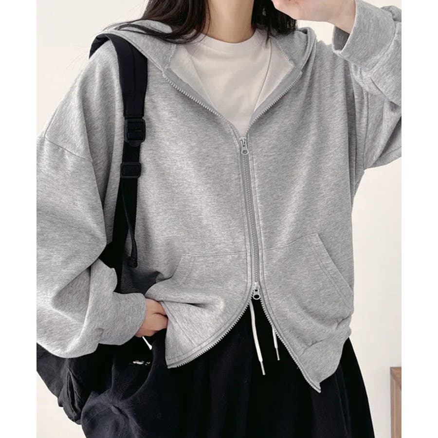 フーディパーカーレディース 薄手スウェットブルゾン ドロップショルダー