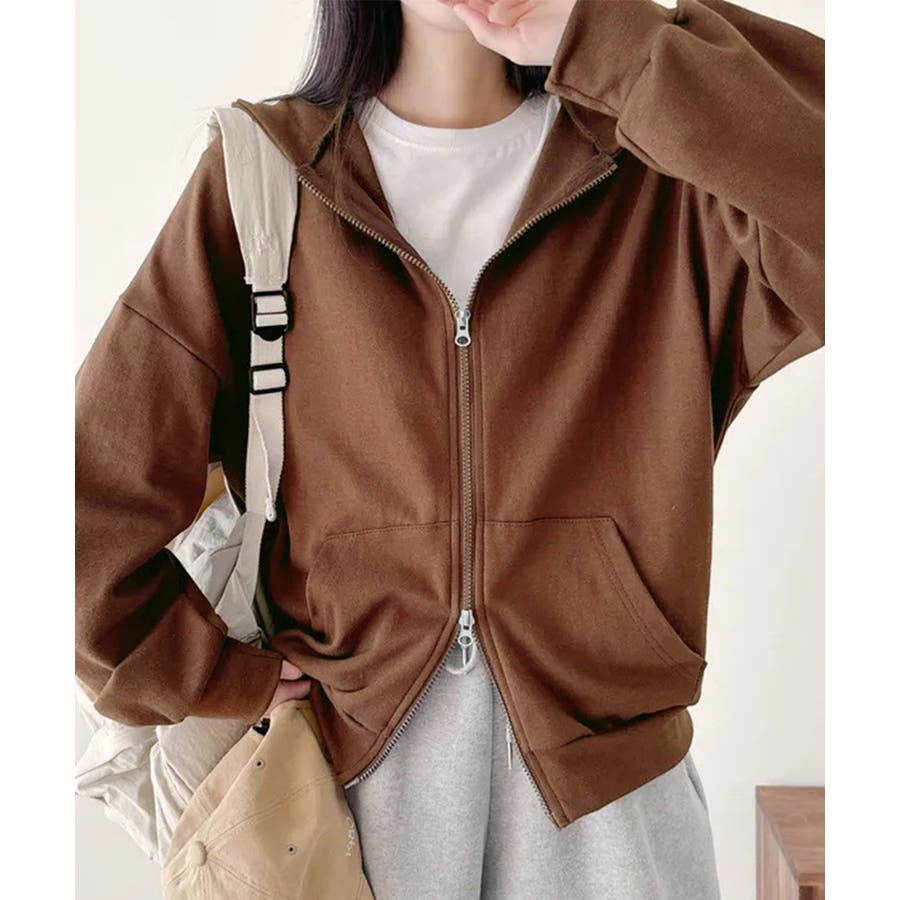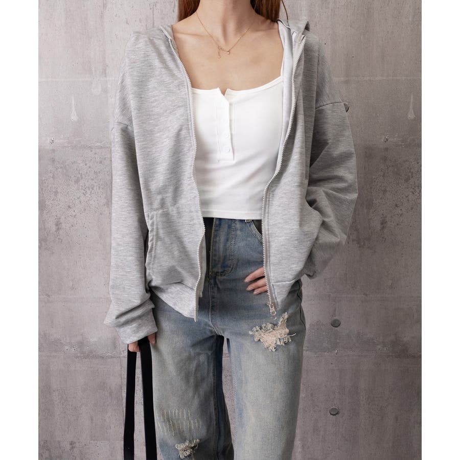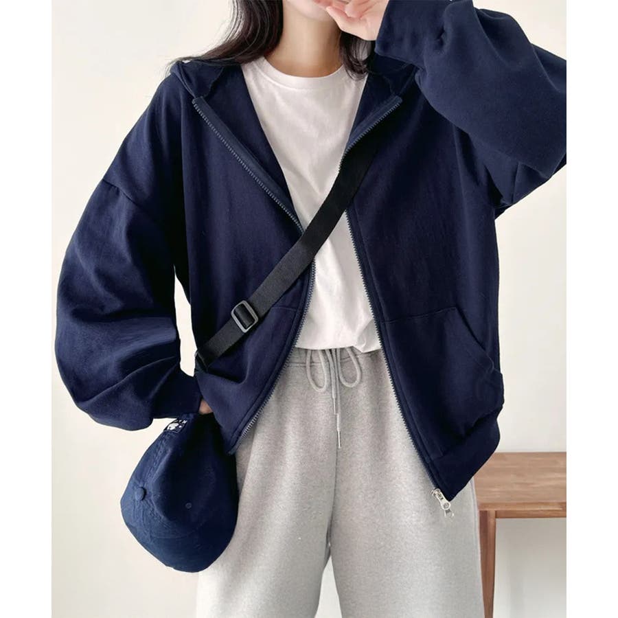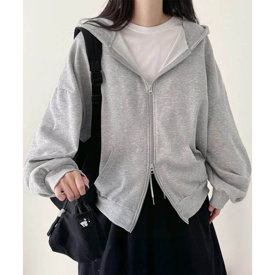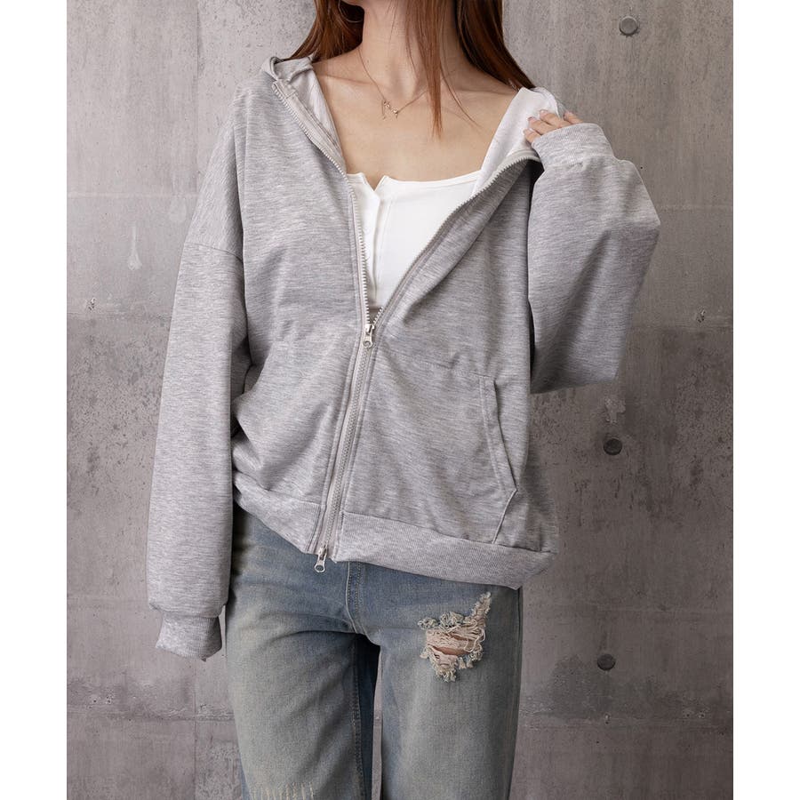 フーディパーカーレディース 薄手スウェットブルゾン ドロップショルダー