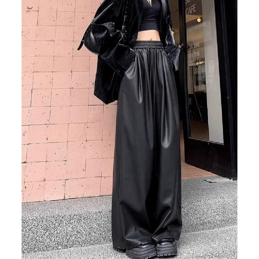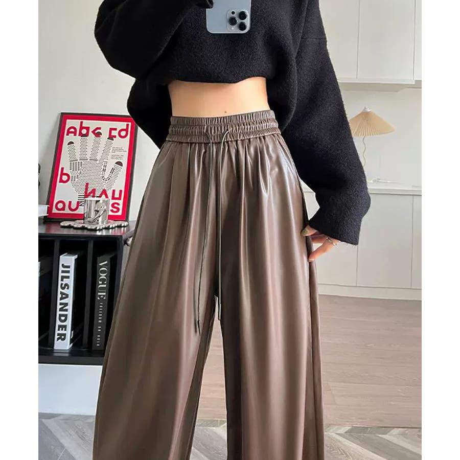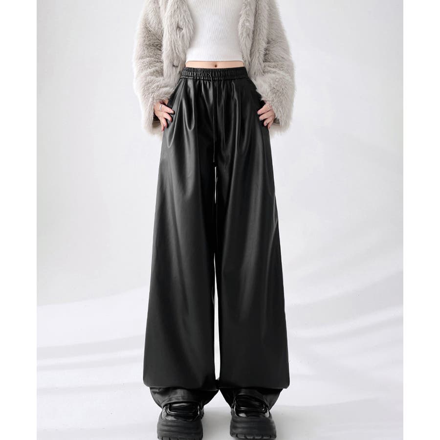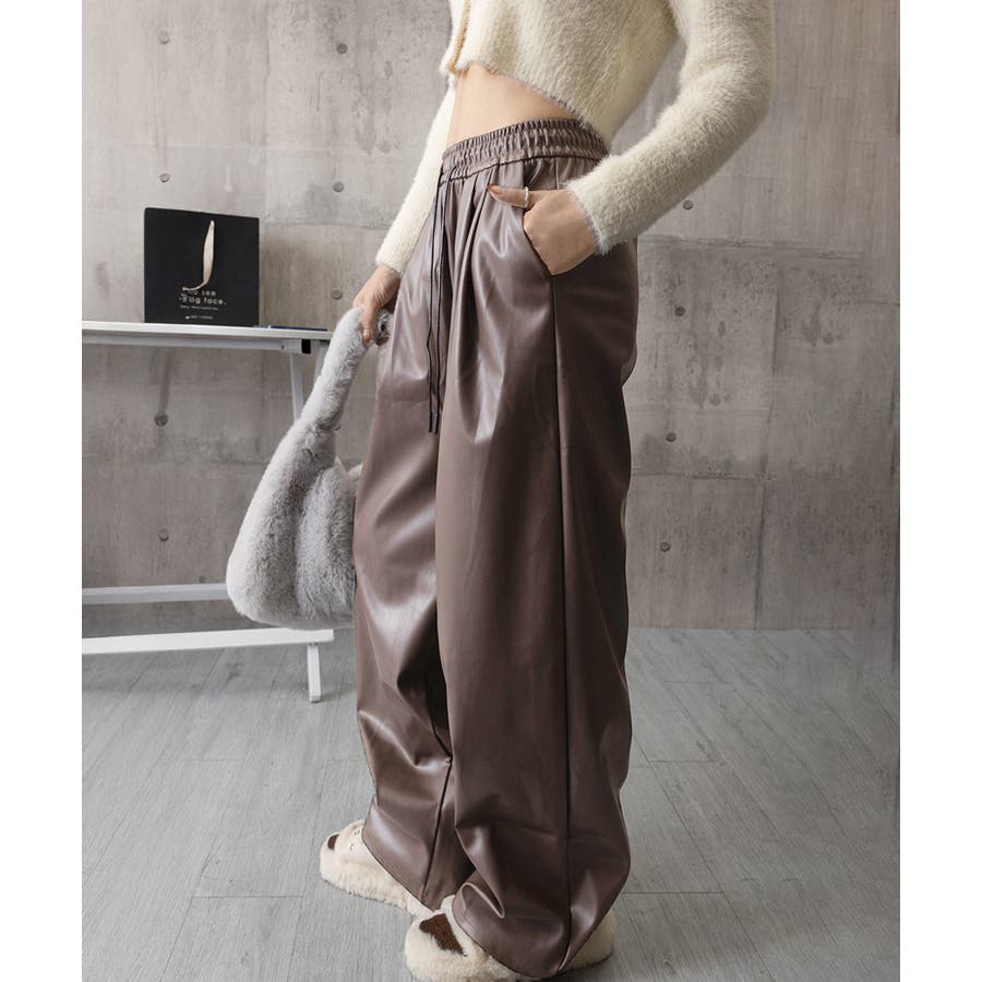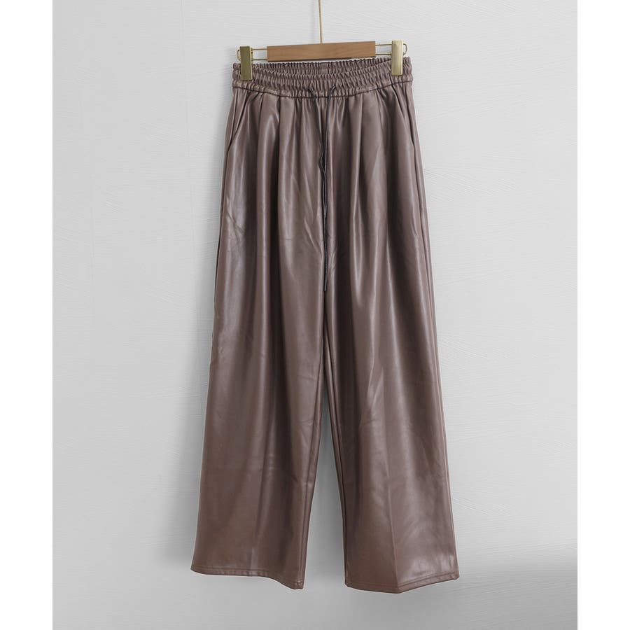 フェイクレザーワイドパンツ ハイウエスト