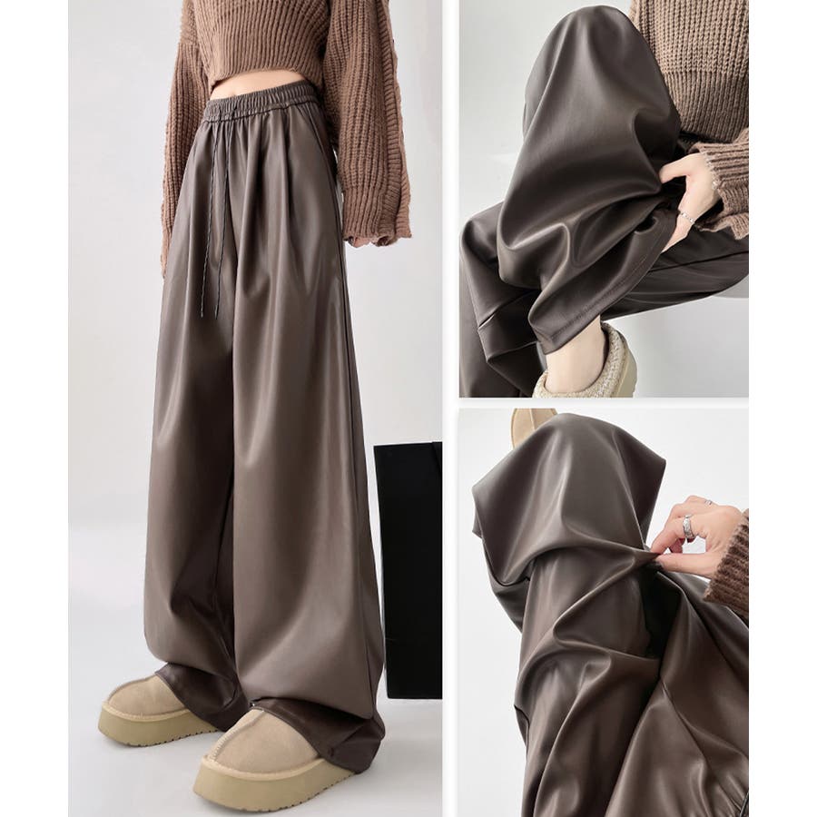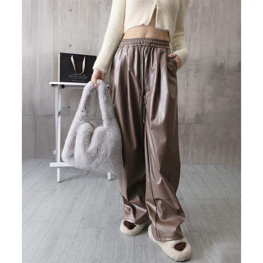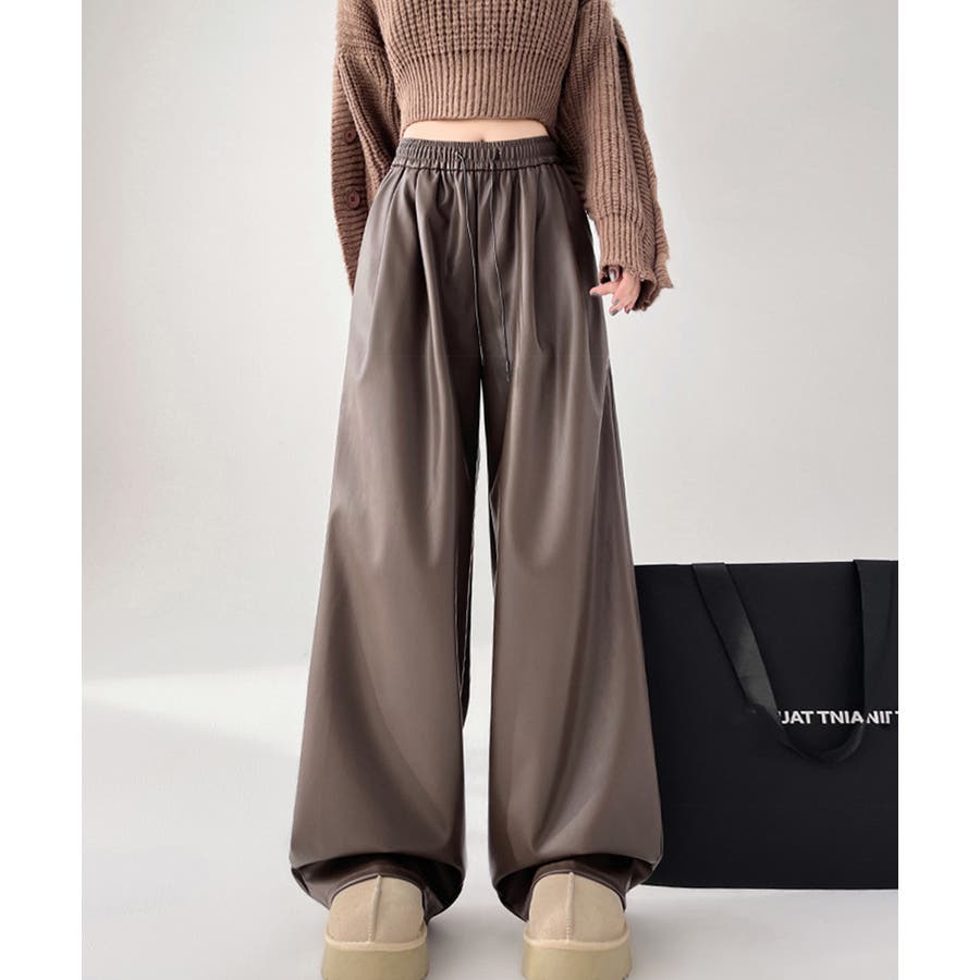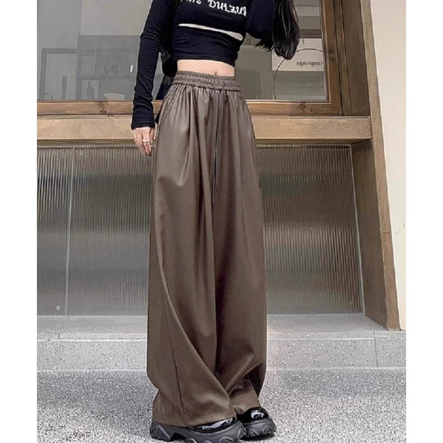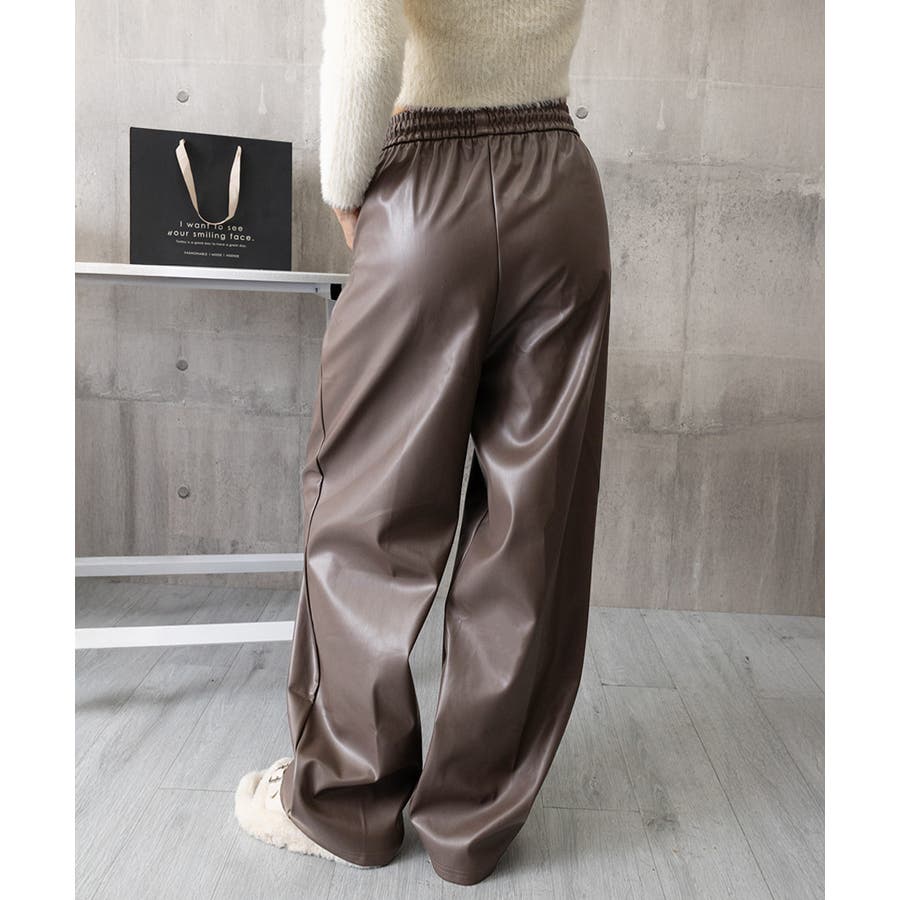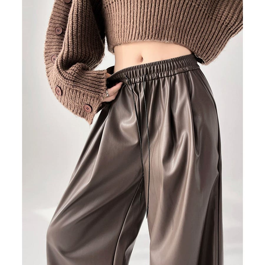 フェイクレザーワイドパンツ ハイウエスト