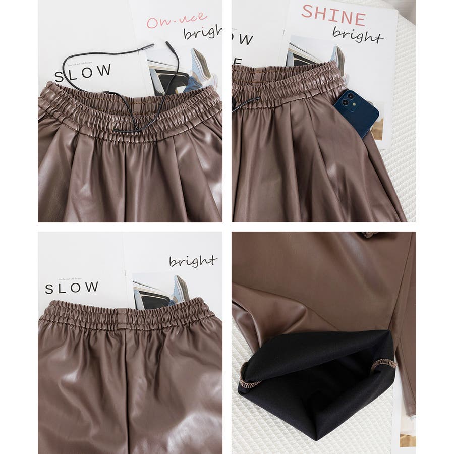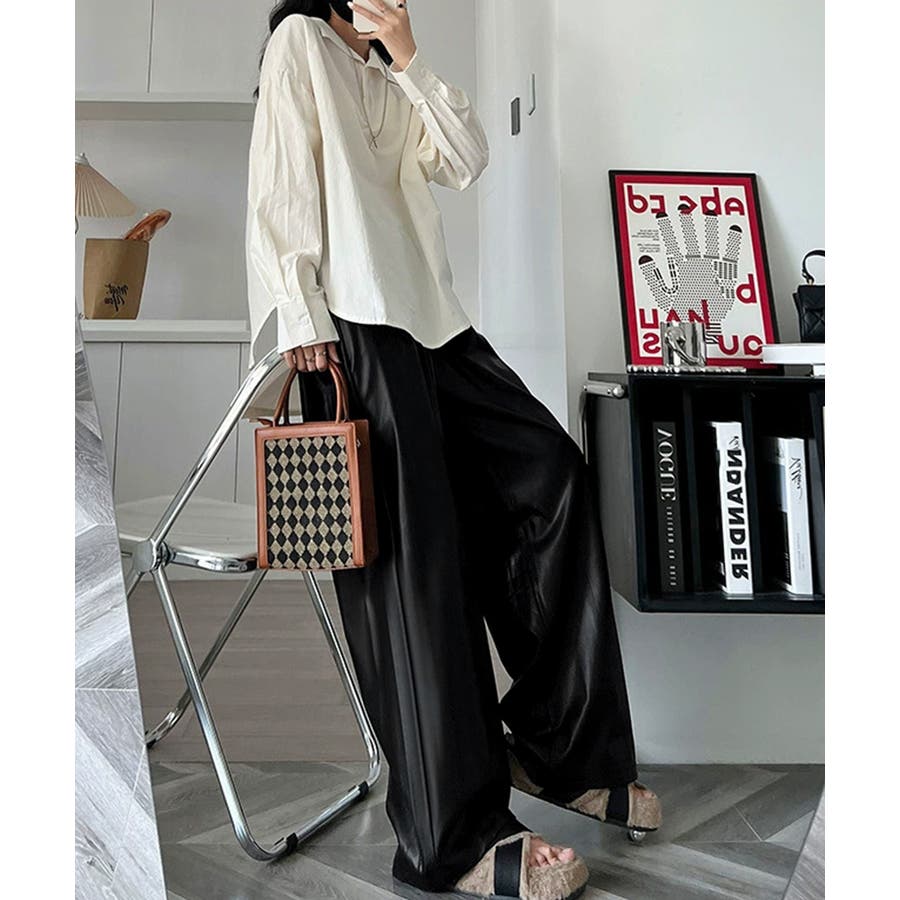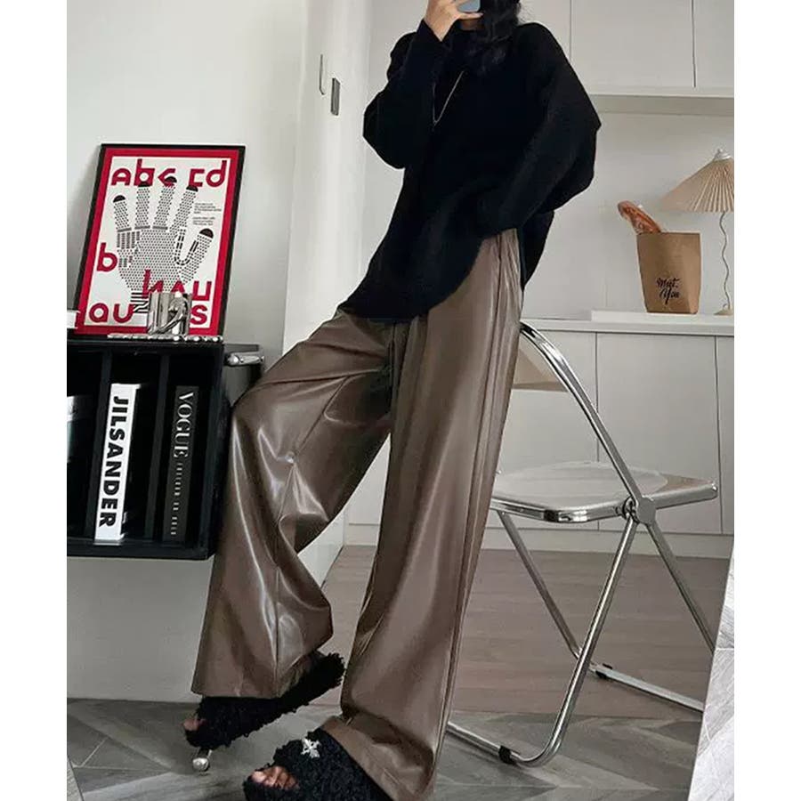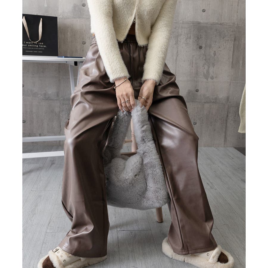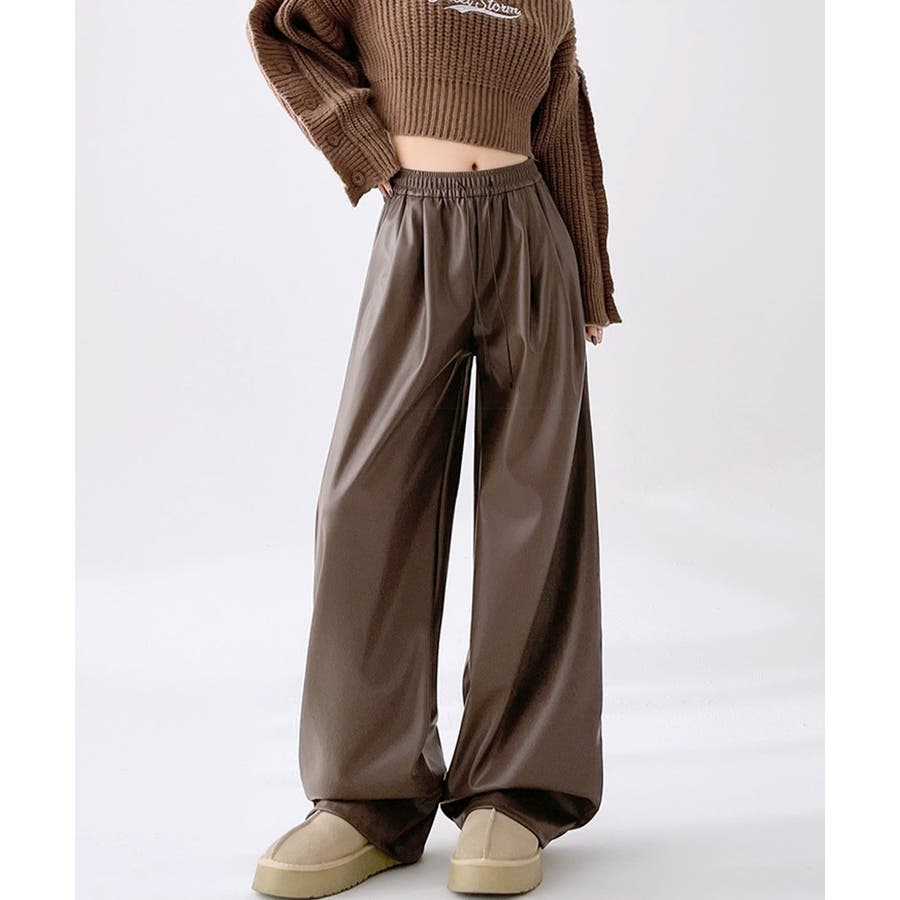 フェイクレザーワイドパンツ ハイウエスト