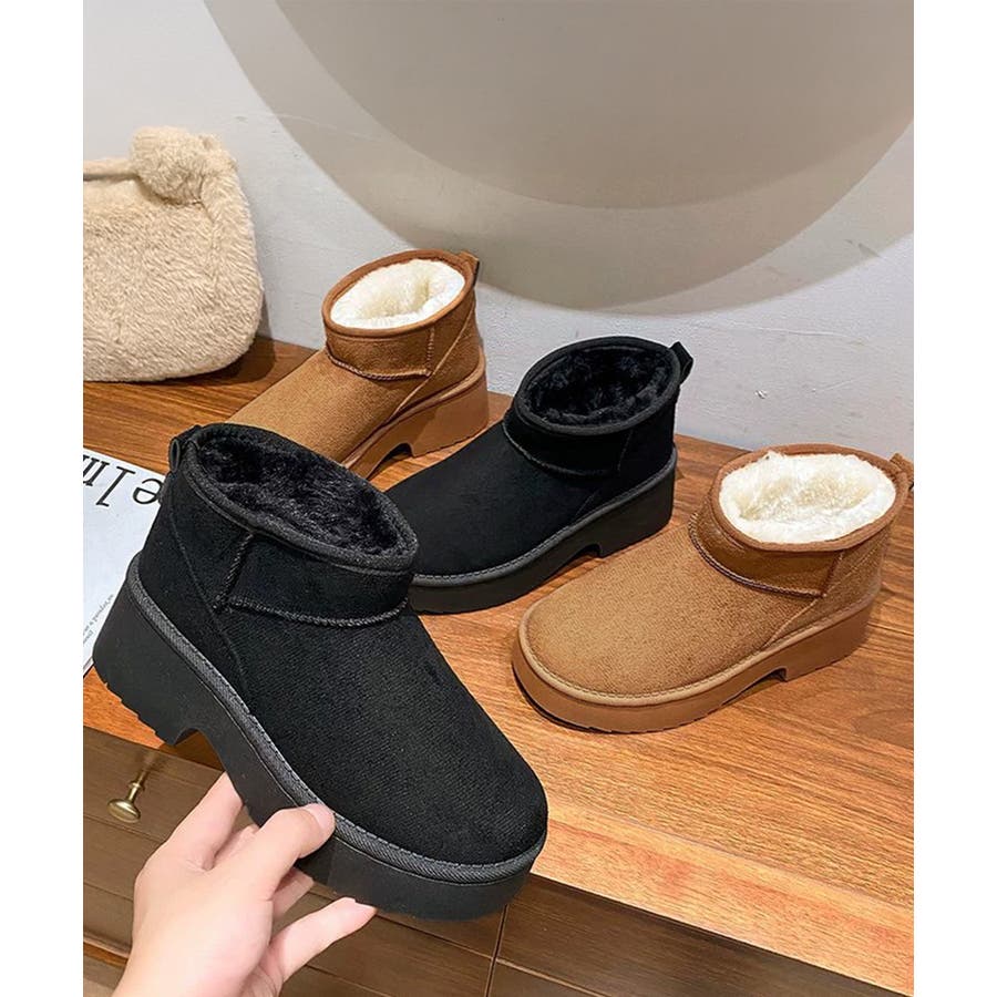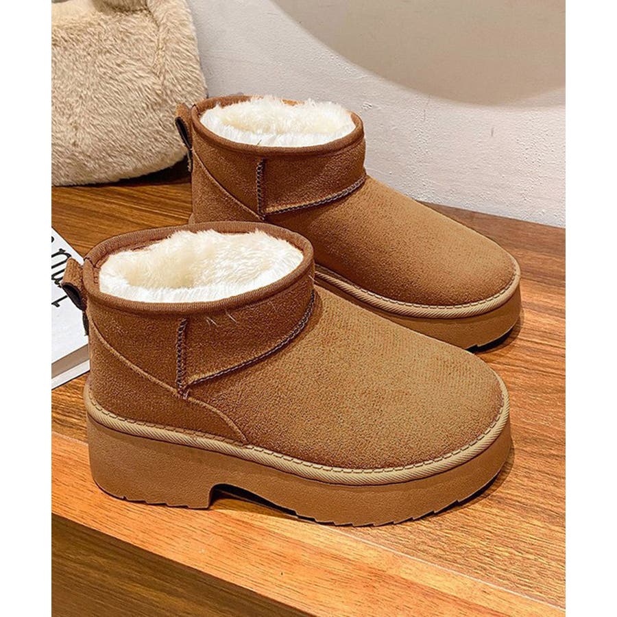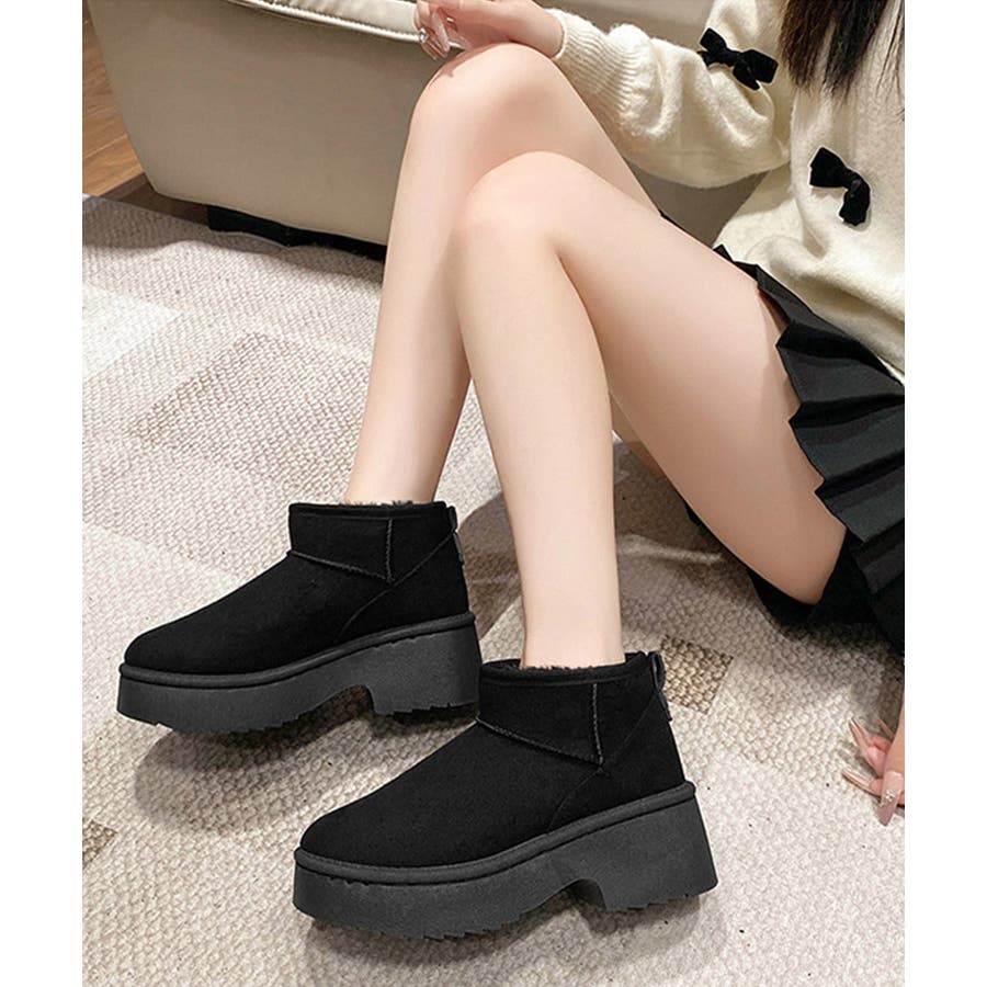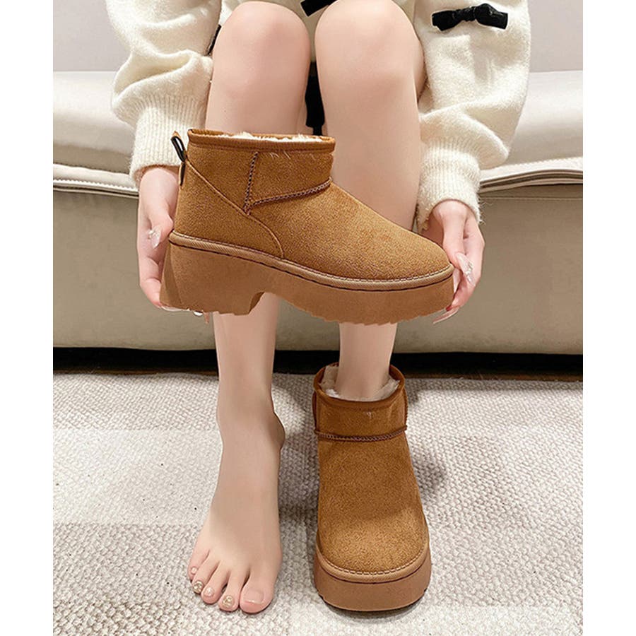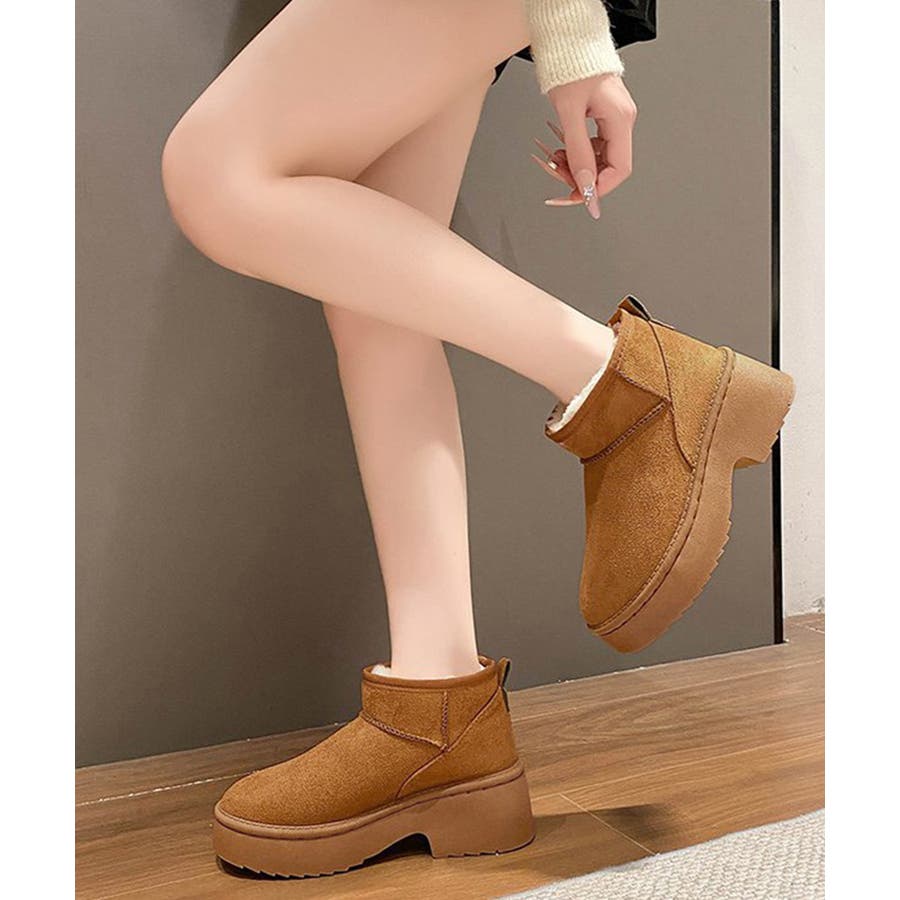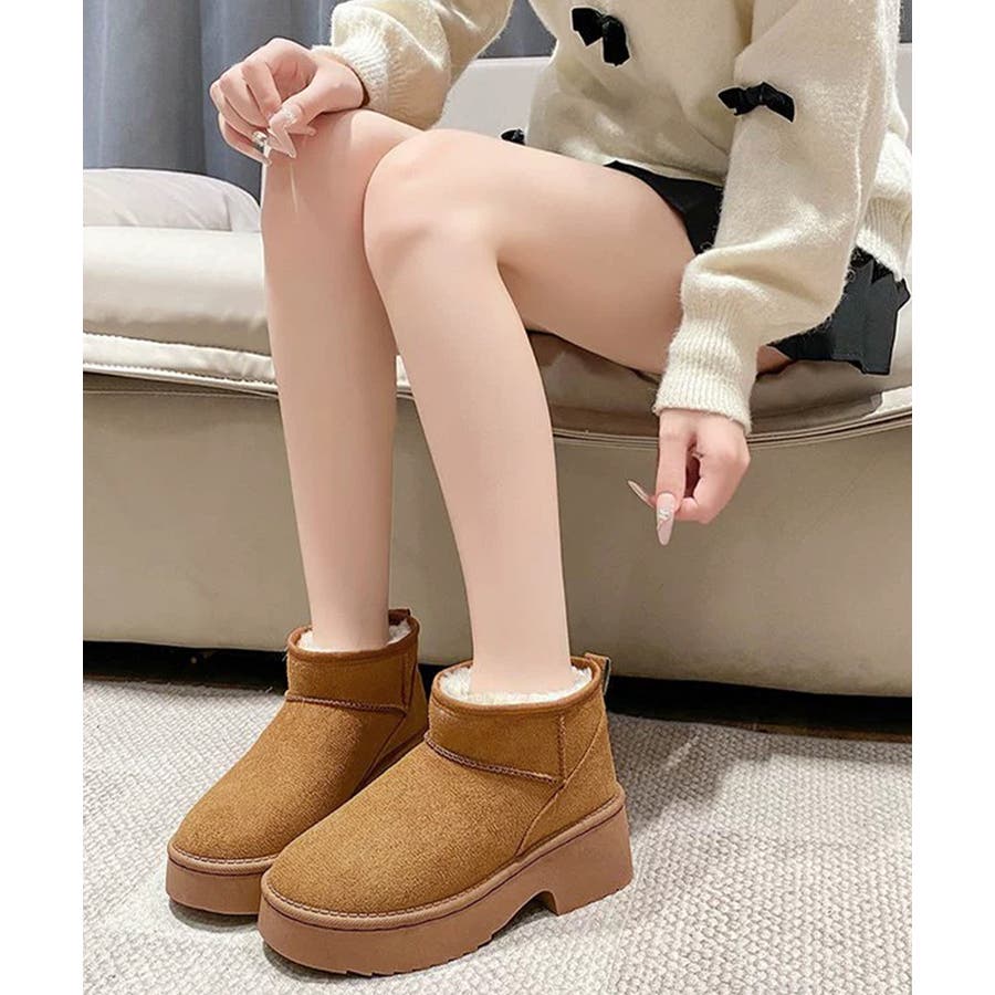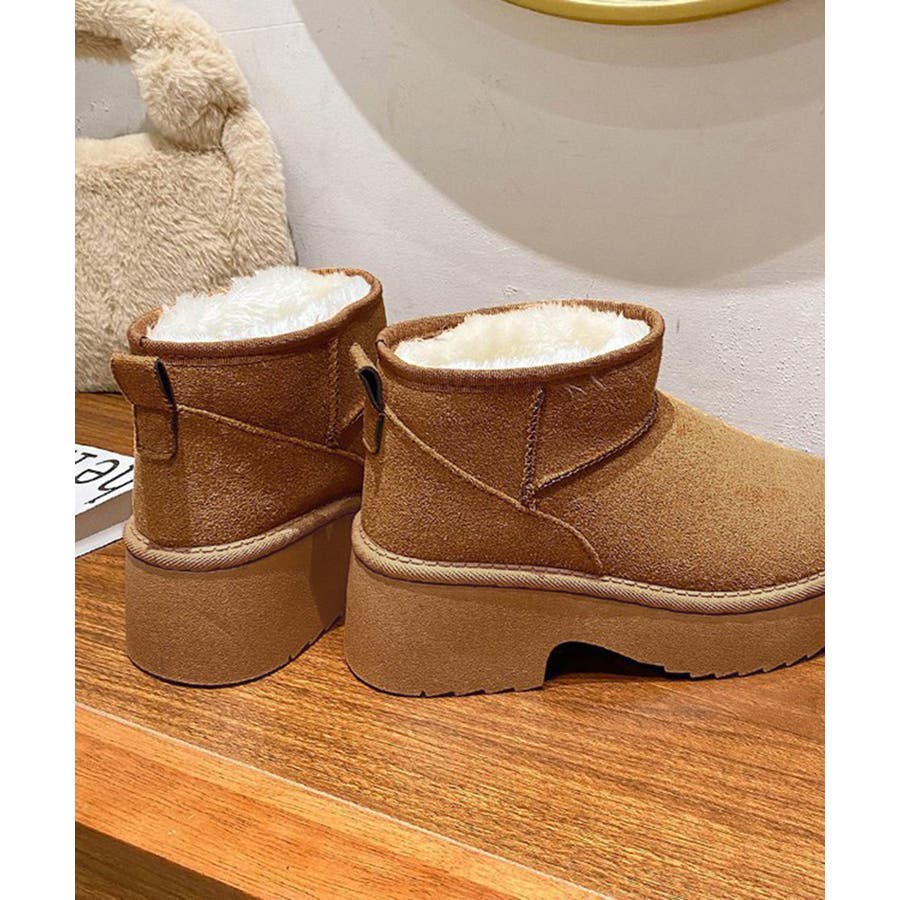 厚底ムートンブーツチャンキーヒールブーツ