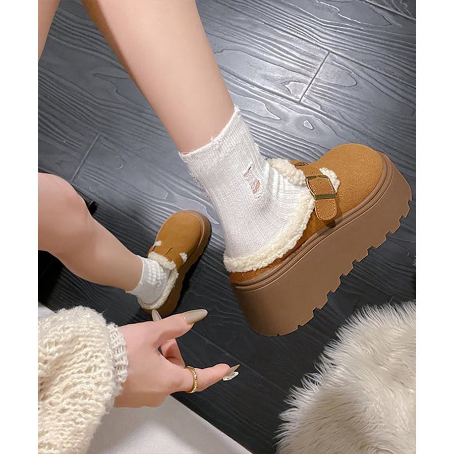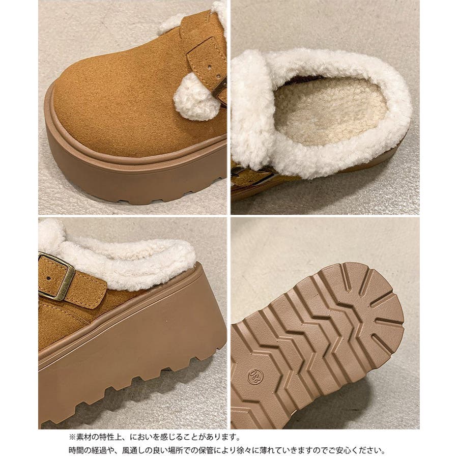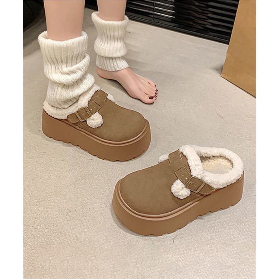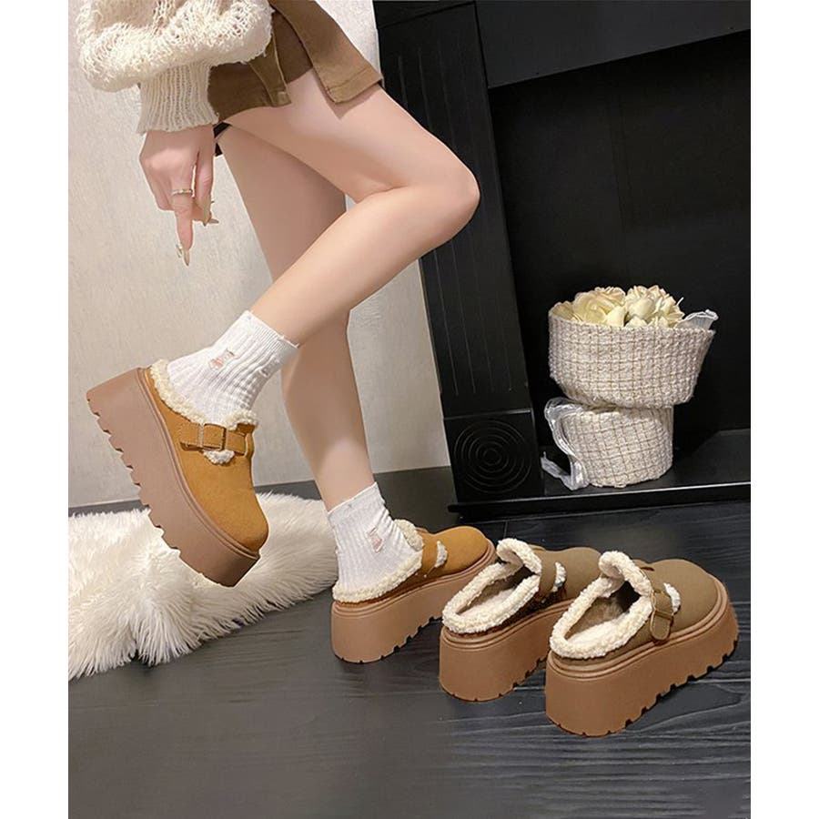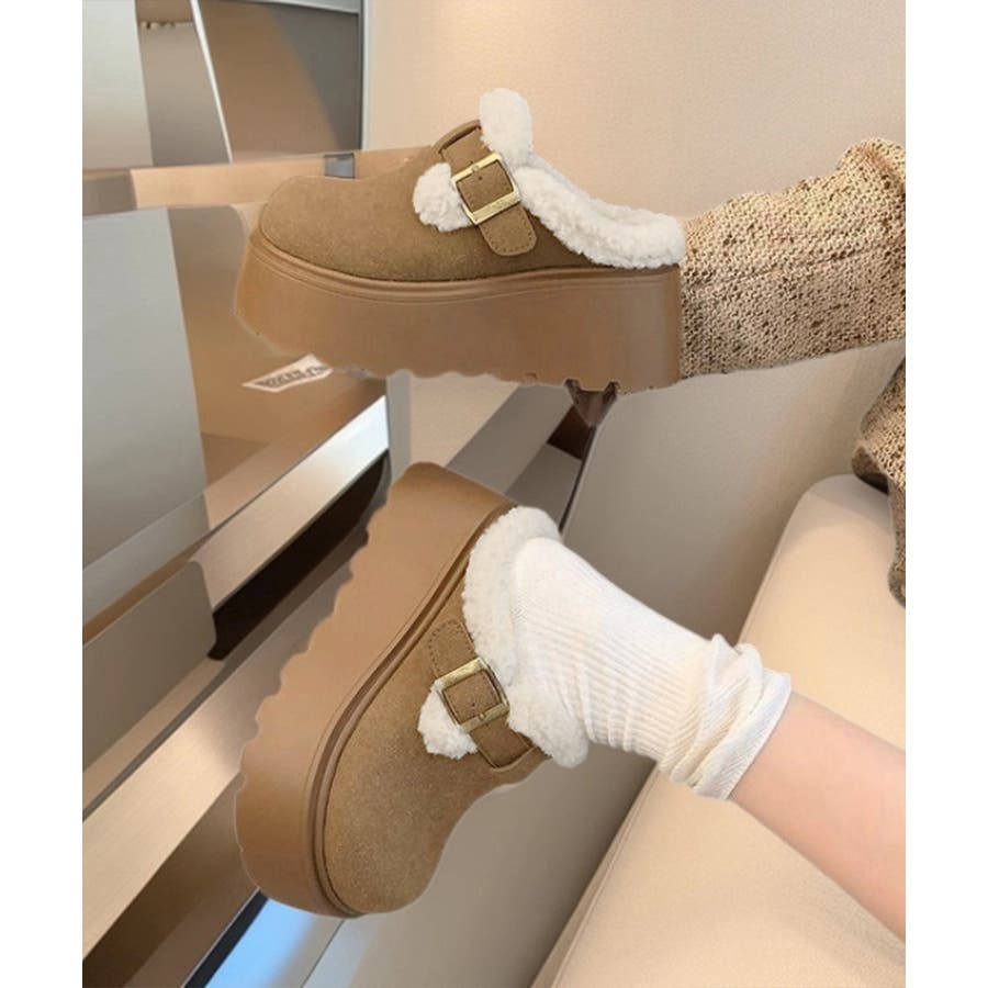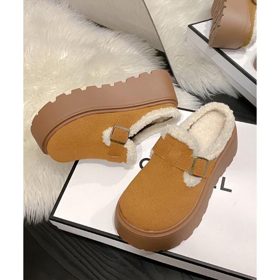 冷え対策保温厚底靴 ストリート厚底サボ 裏起毛ボアシューズ