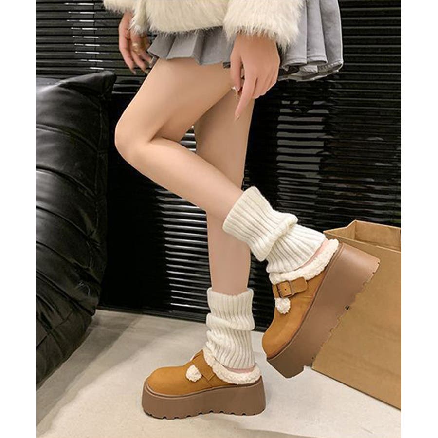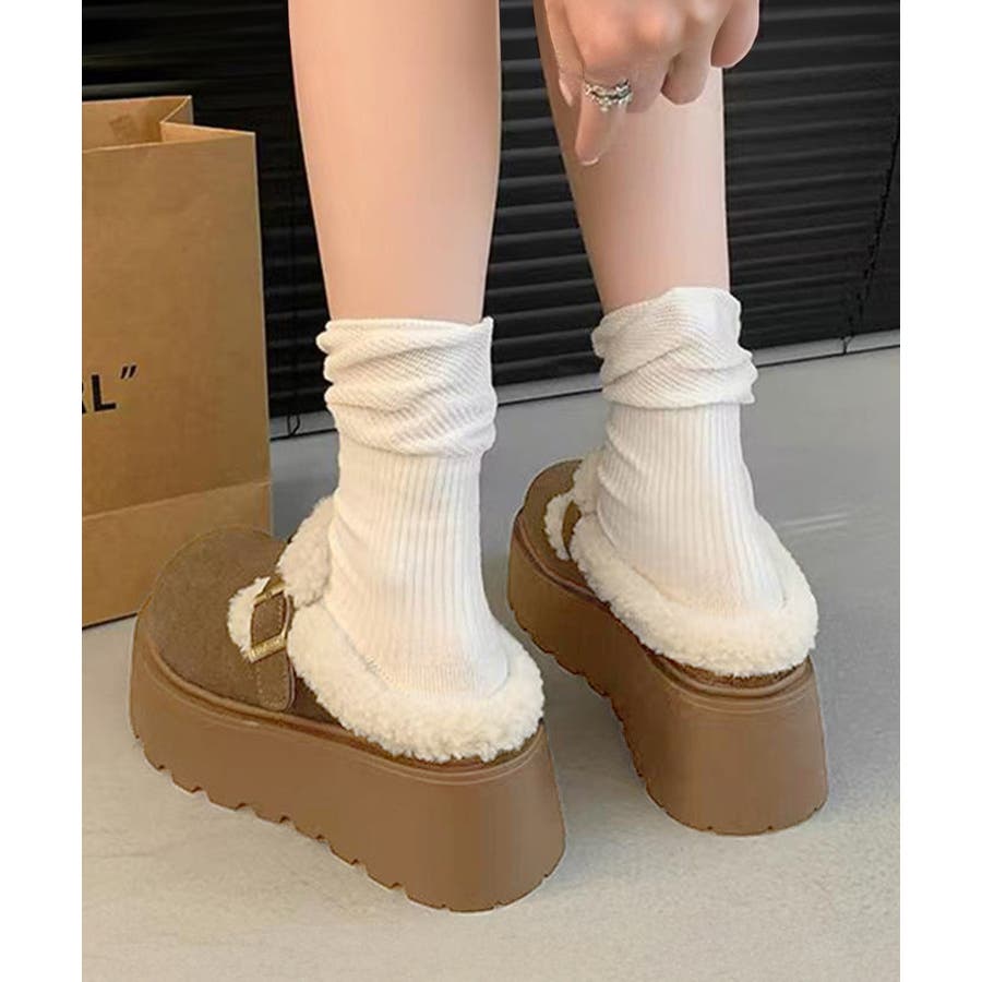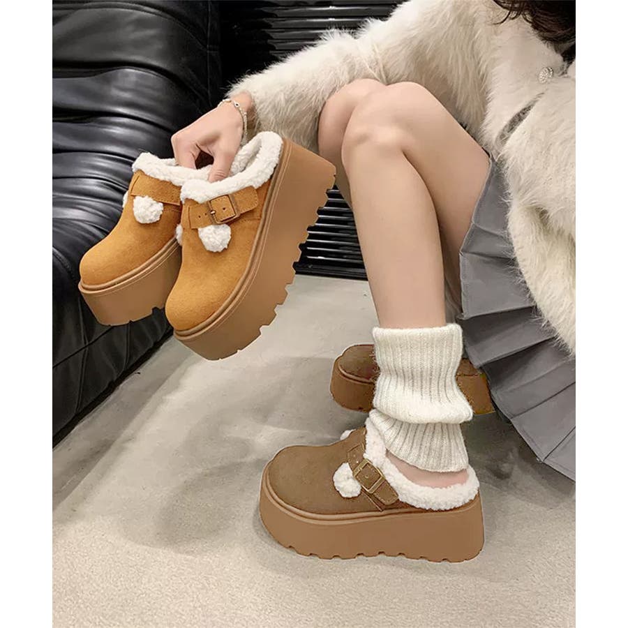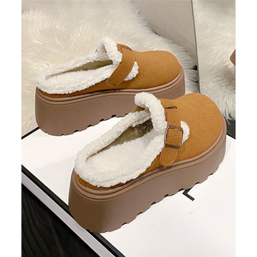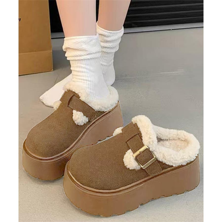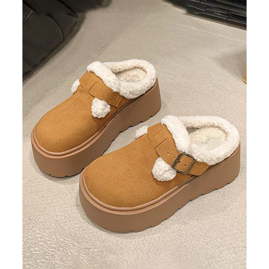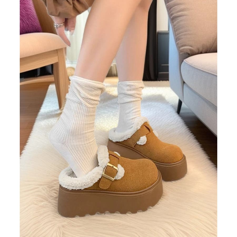 冷え対策保温厚底靴 ストリート厚底サボ 裏起毛ボアシューズ