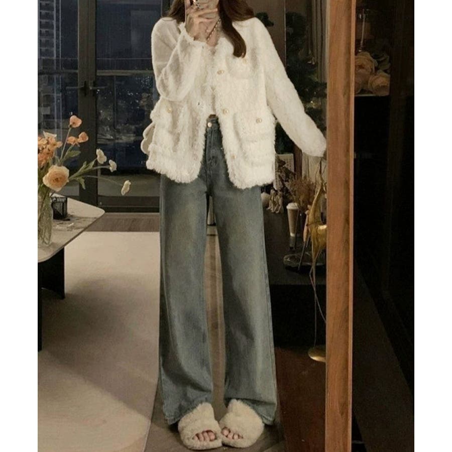 おしゃれニット羽織 モヘアジャケット春 エレガントアウター