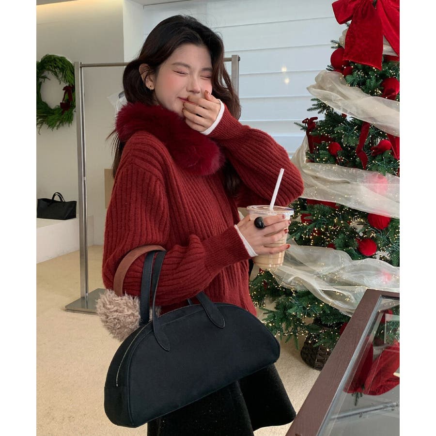 首元のファー襟が顔まわりを華やかに見せるデザイン。