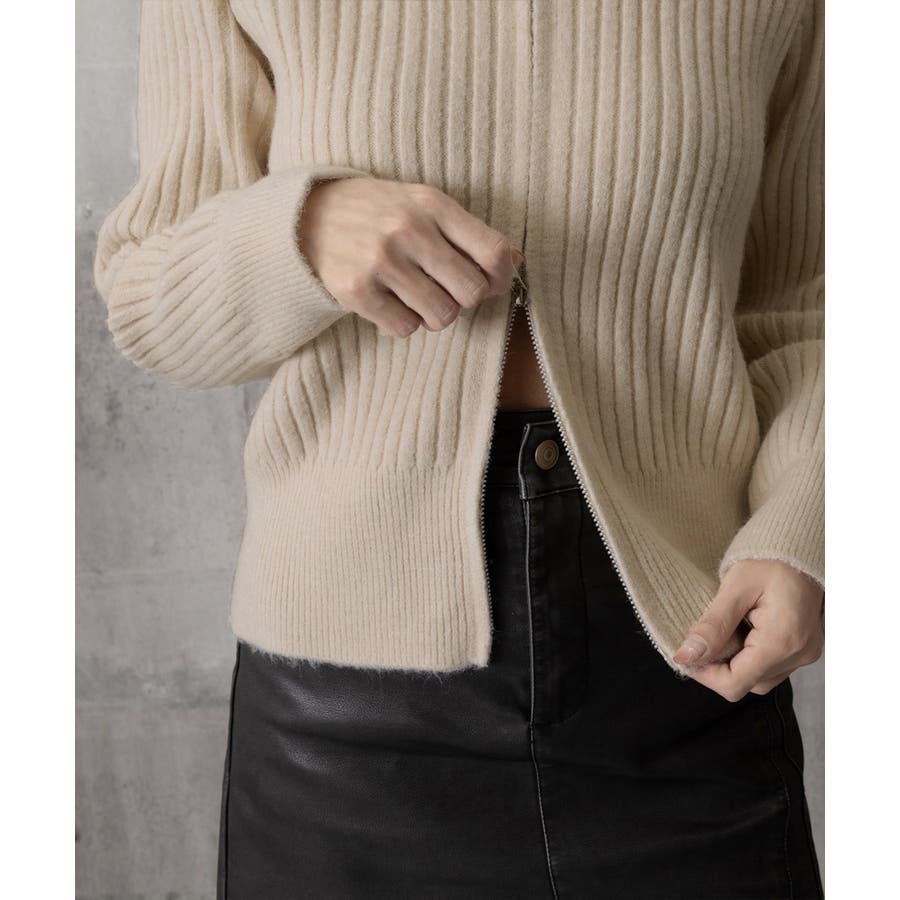 ダブルジップ仕様で、閉じればプルオーバー風、開ければカーディガンとして着こなせる。