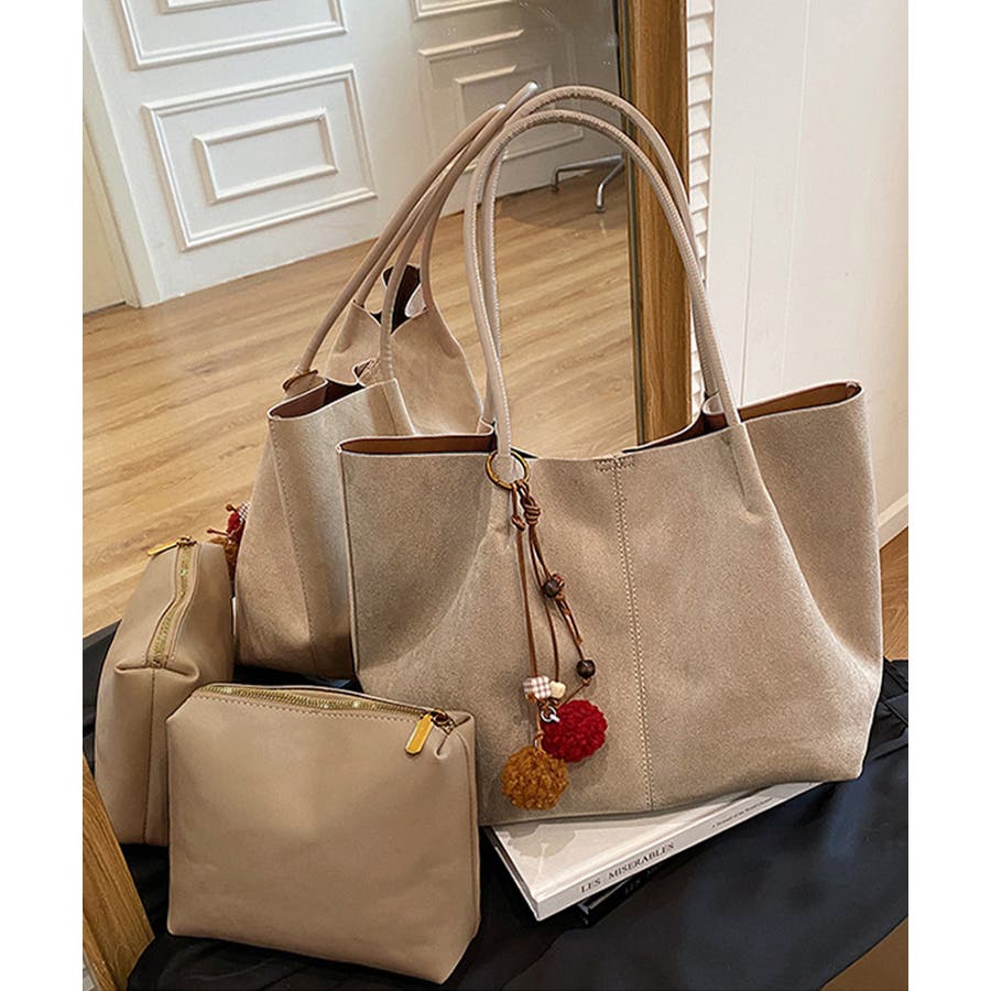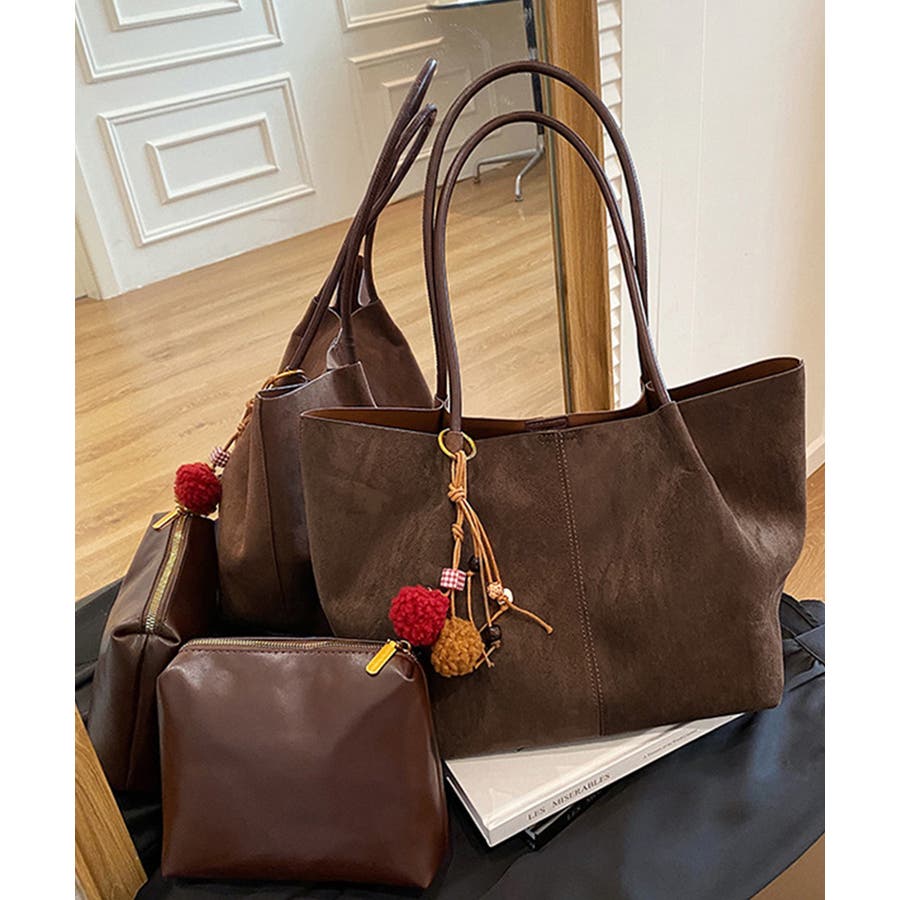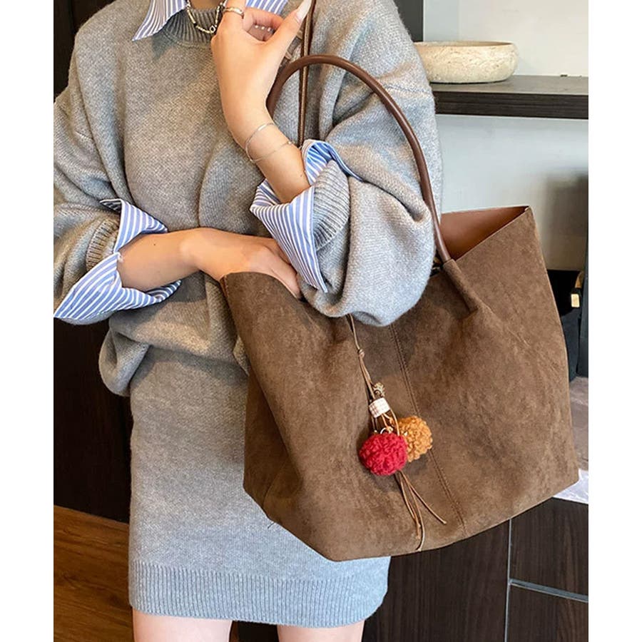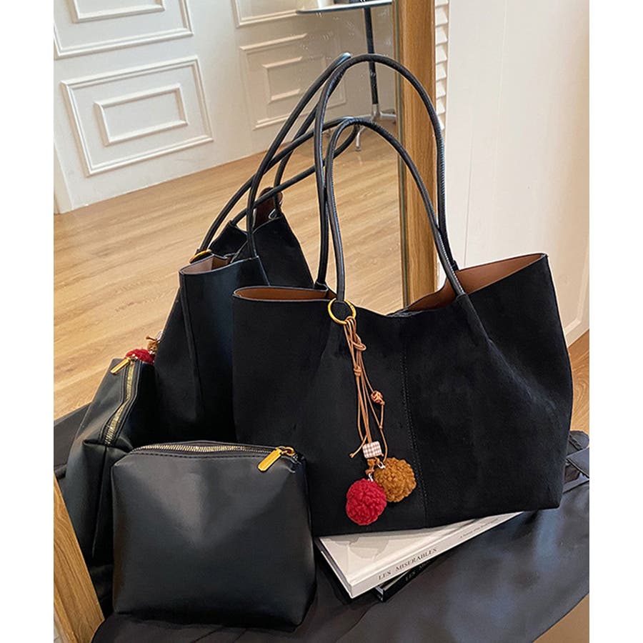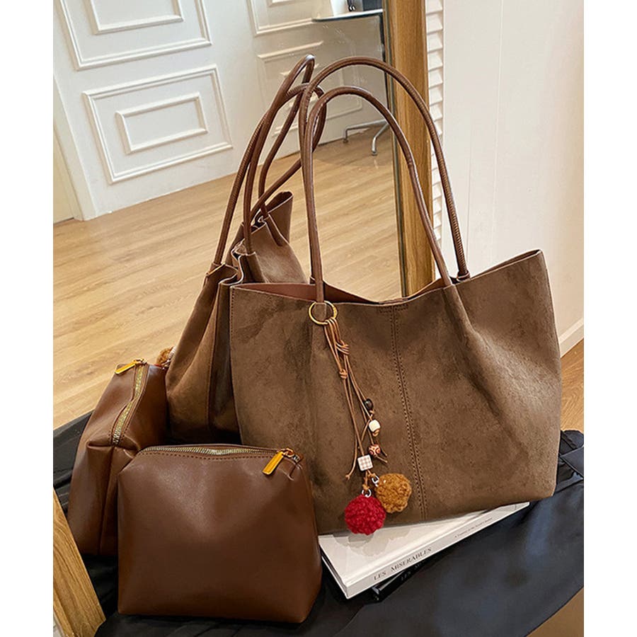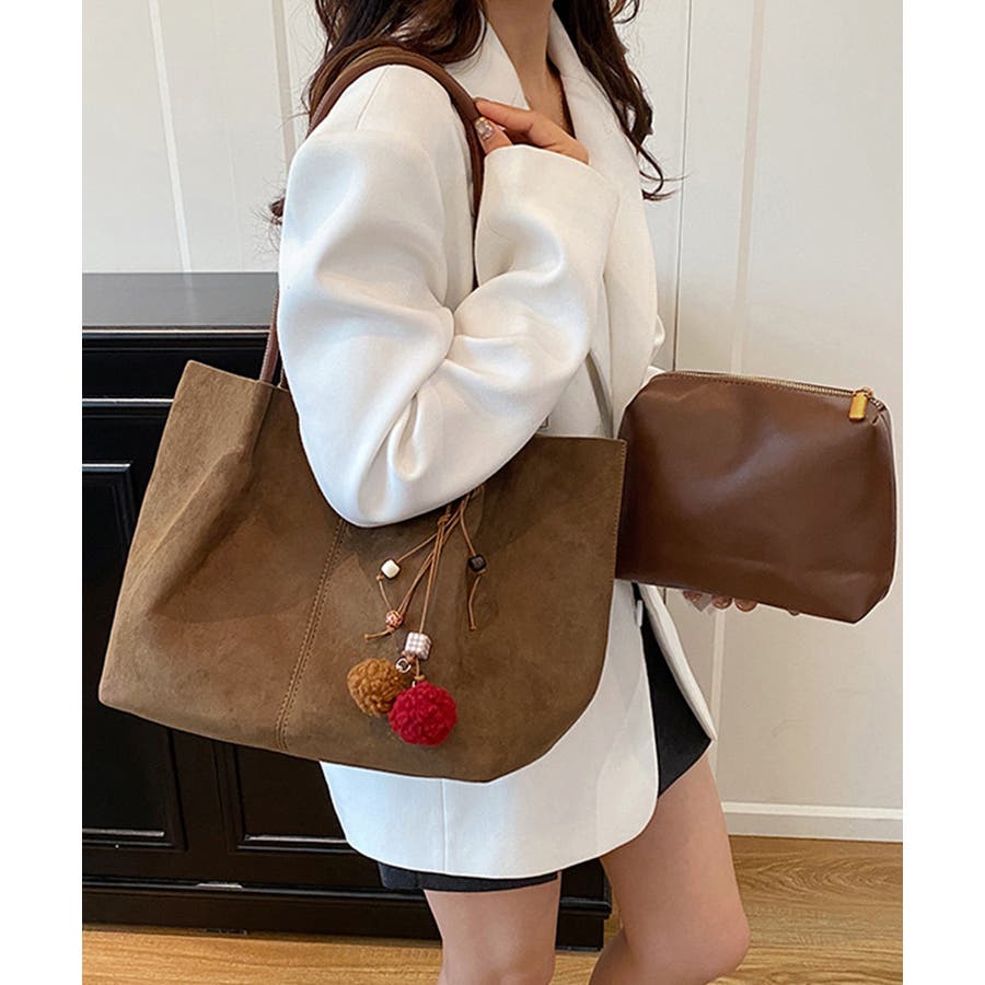落ち着いたスエード調素材を使用した、大容量で使い勝手の良いトートバッグ2点セット。