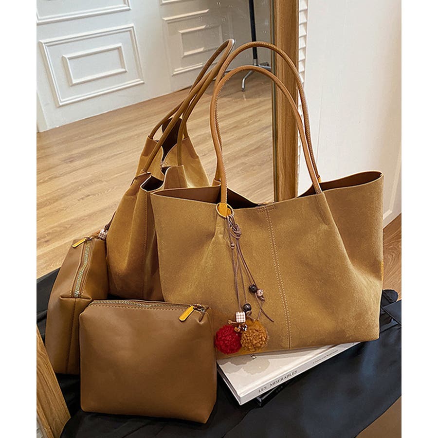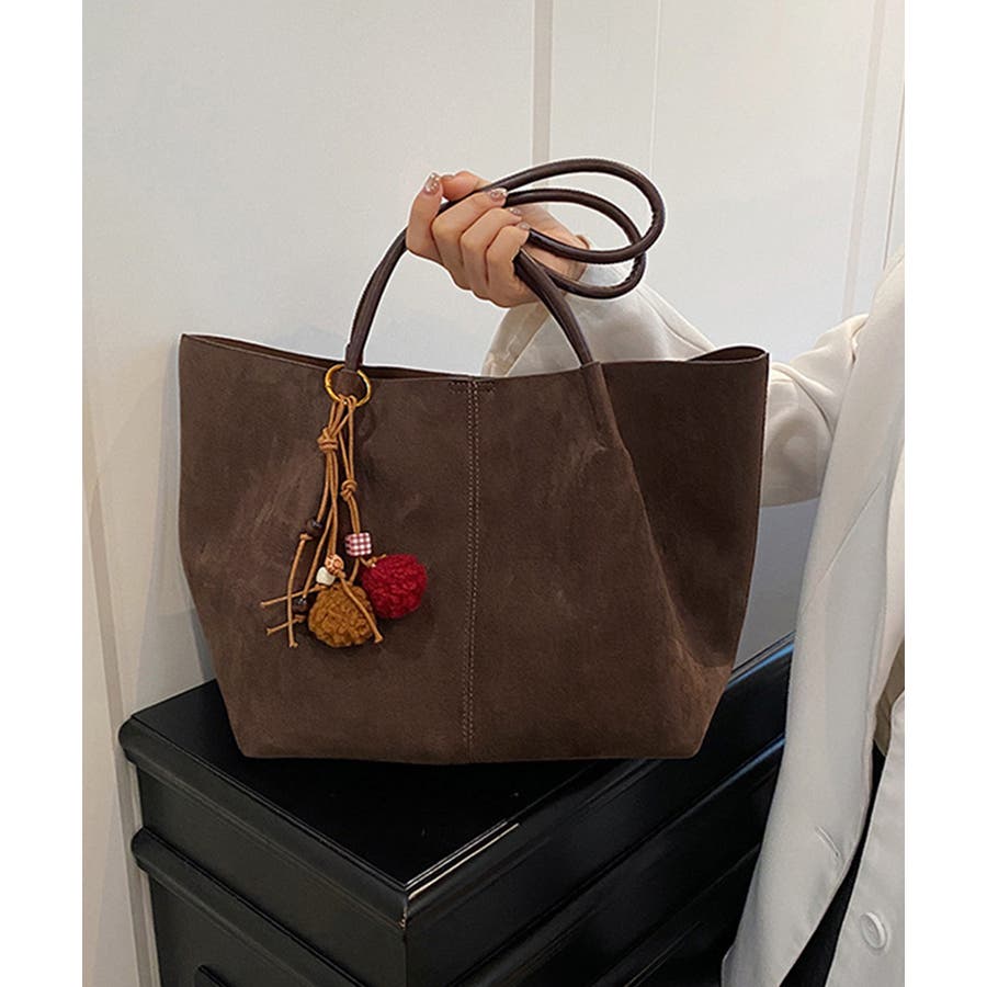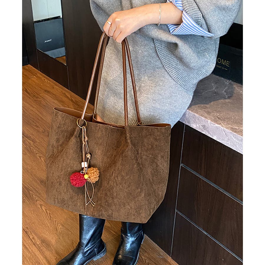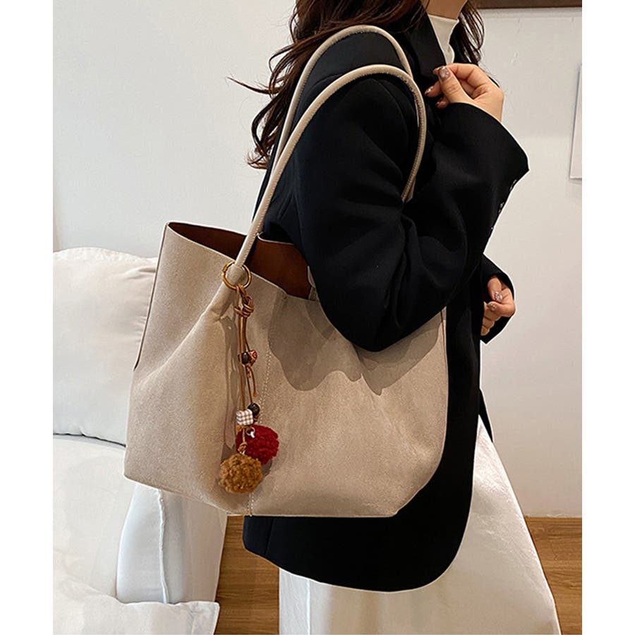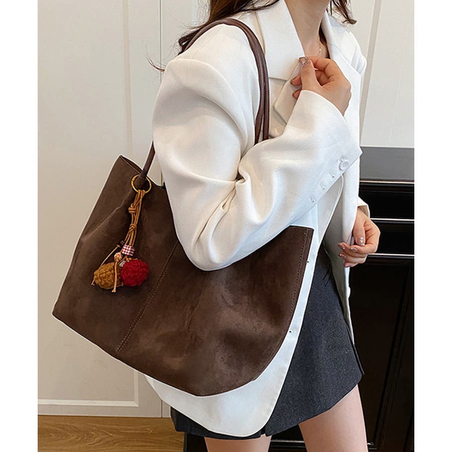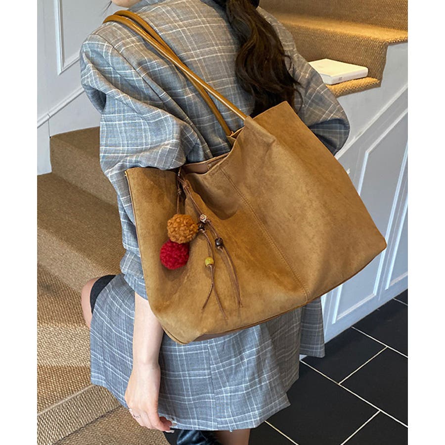 落ち着いたスエード調素材を使用した、大容量で使い勝手の良いトートバッグ2点セット。