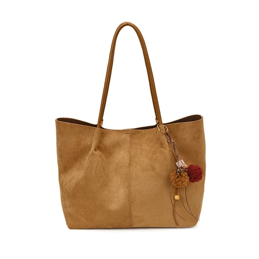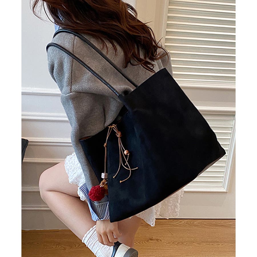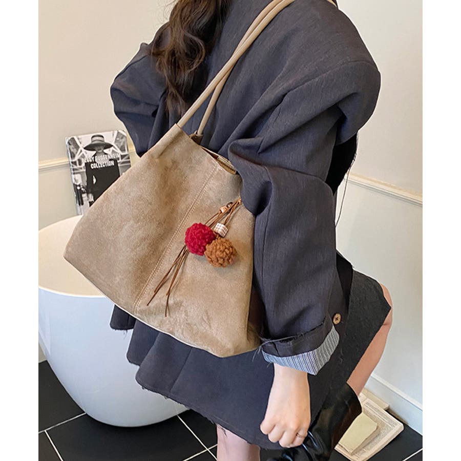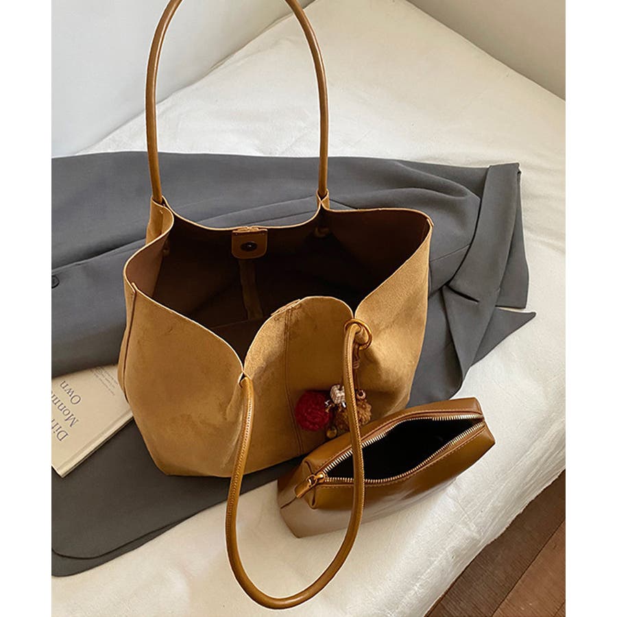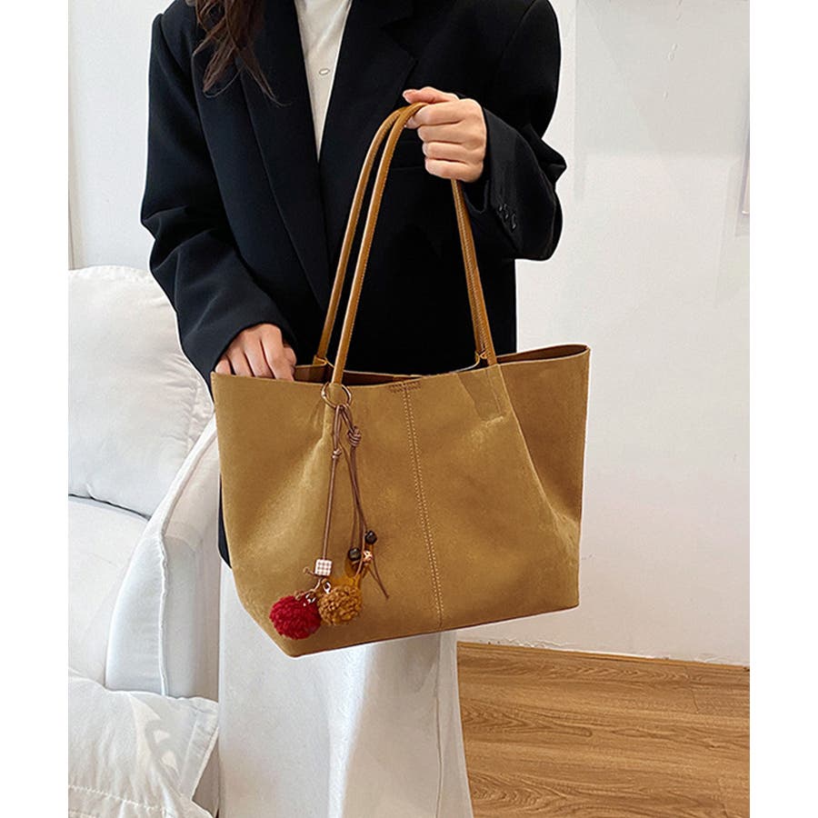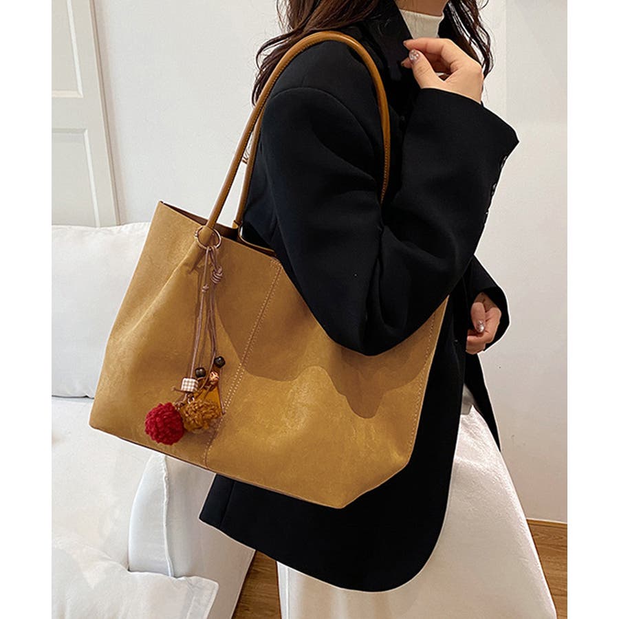 落ち着いたスエード調素材を使用した、大容量で使い勝手の良いトートバッグ2点セット。