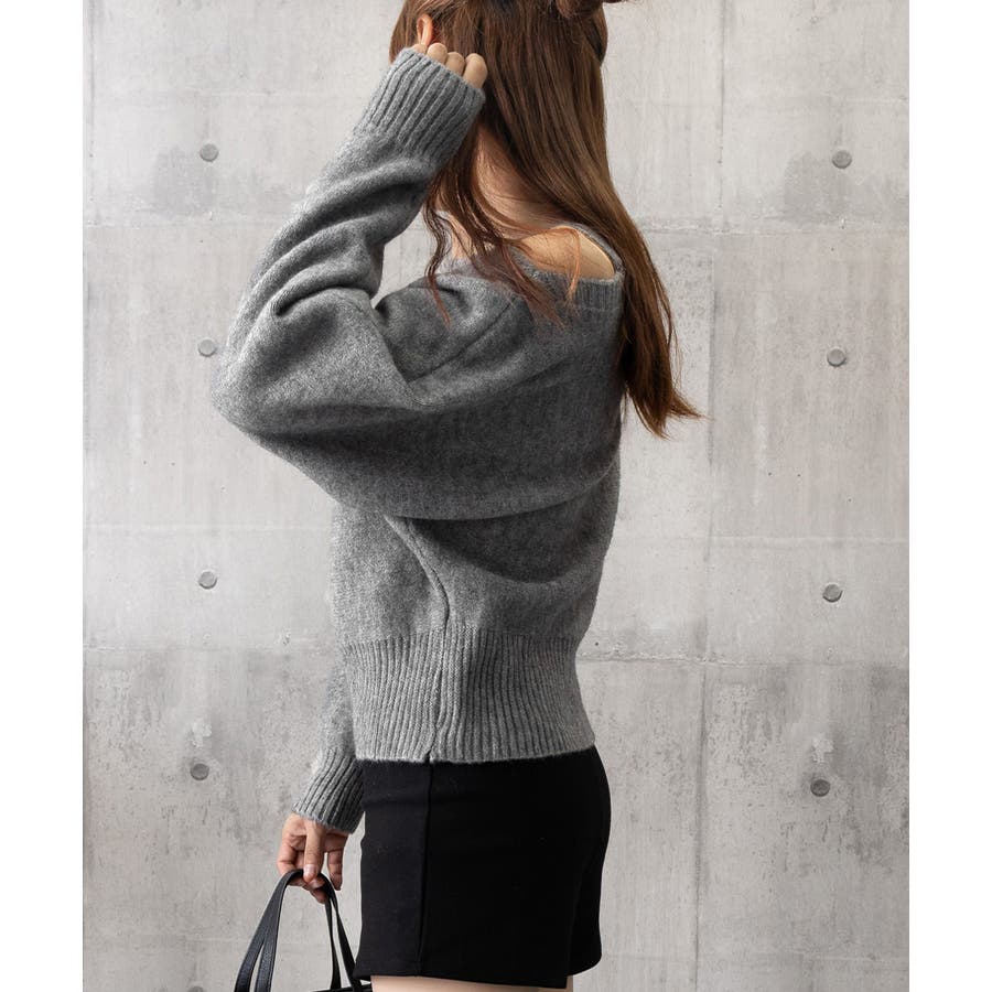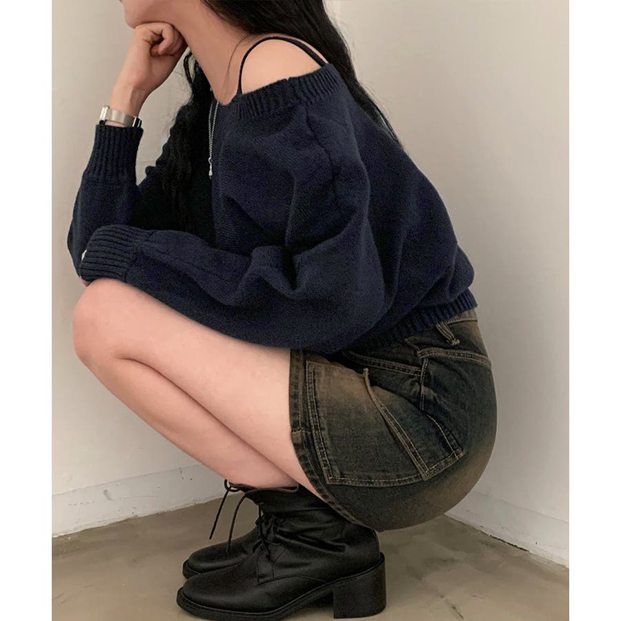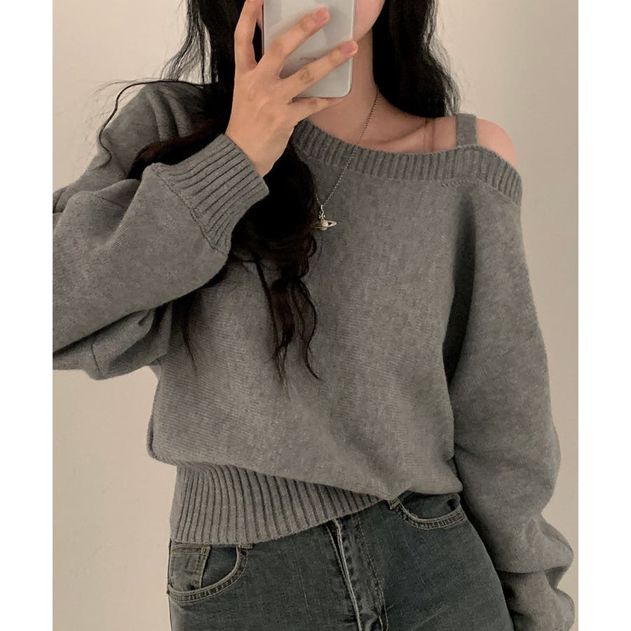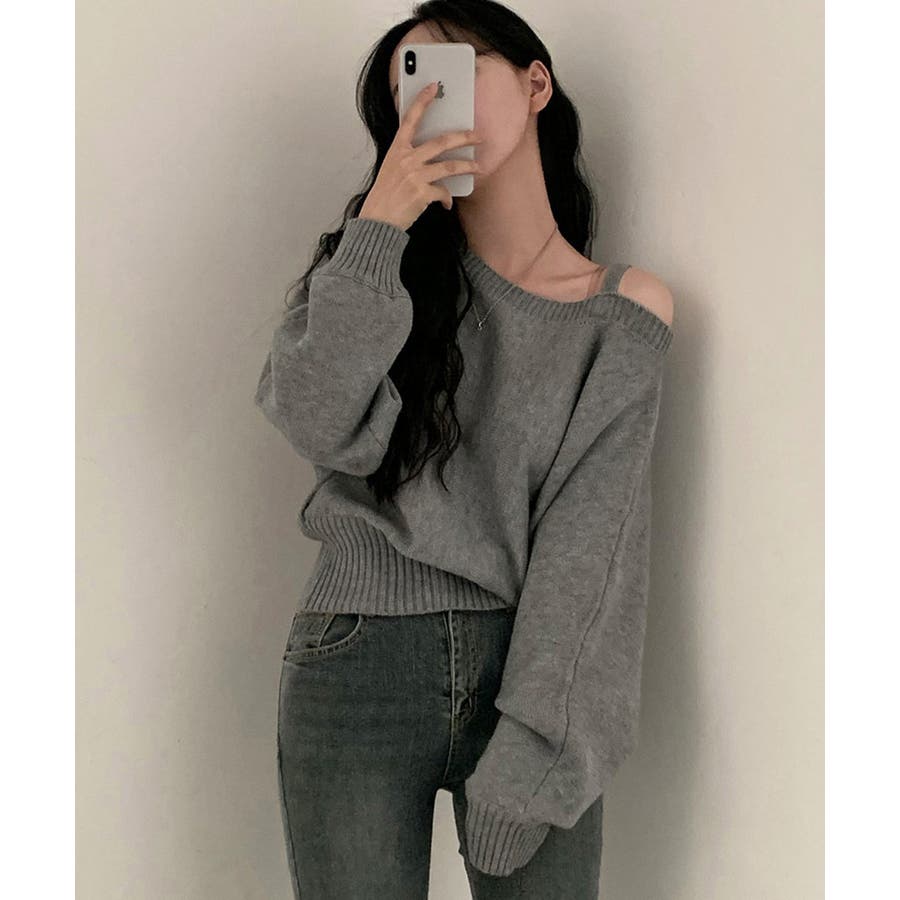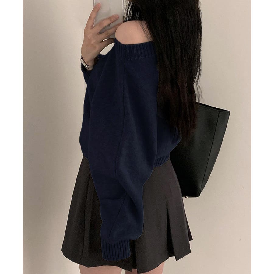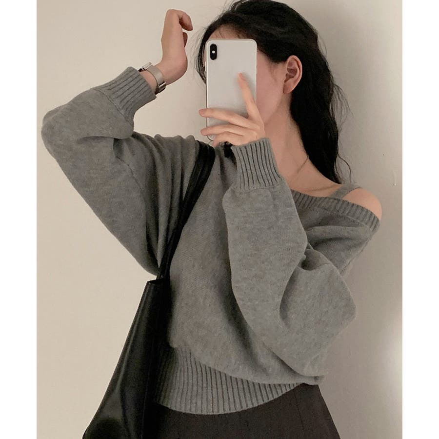 オフショルダーニットトップス肩見せ秋冬服