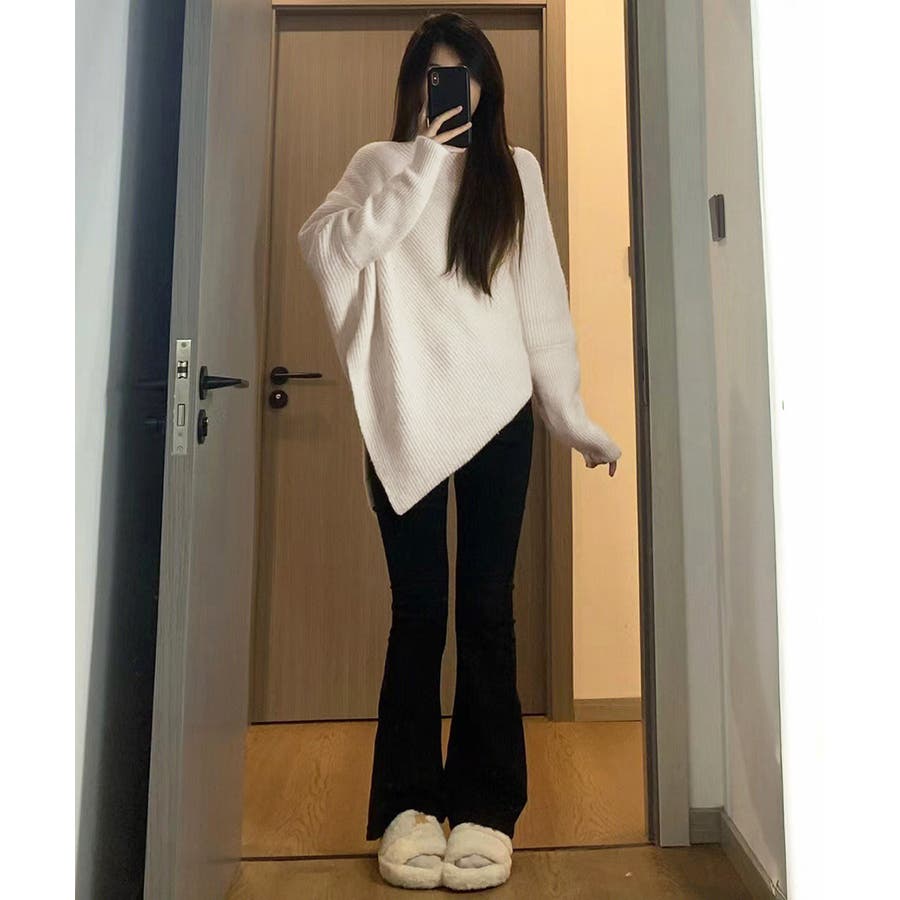 変形デザインニット 斜めカットニット冬 あったか厚手ニット