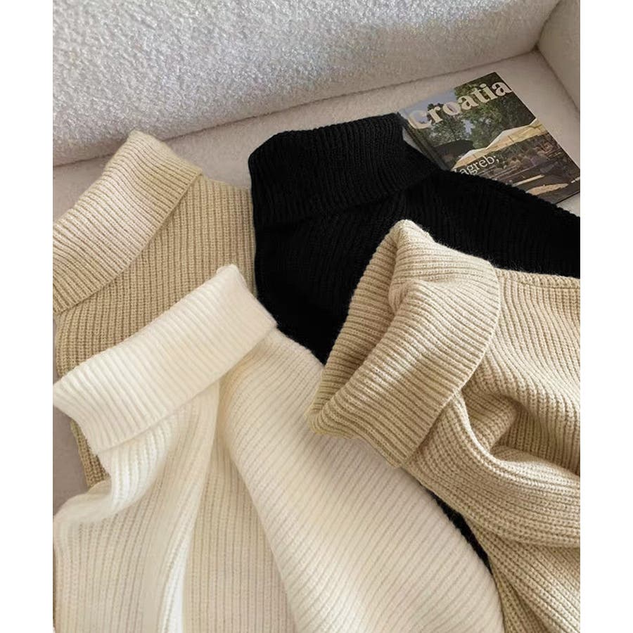 ハイネックニットセーター 不規則デザイン