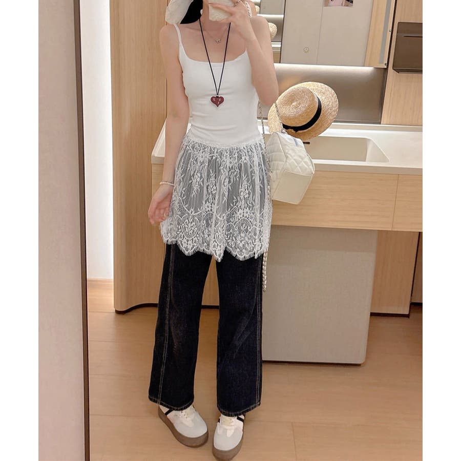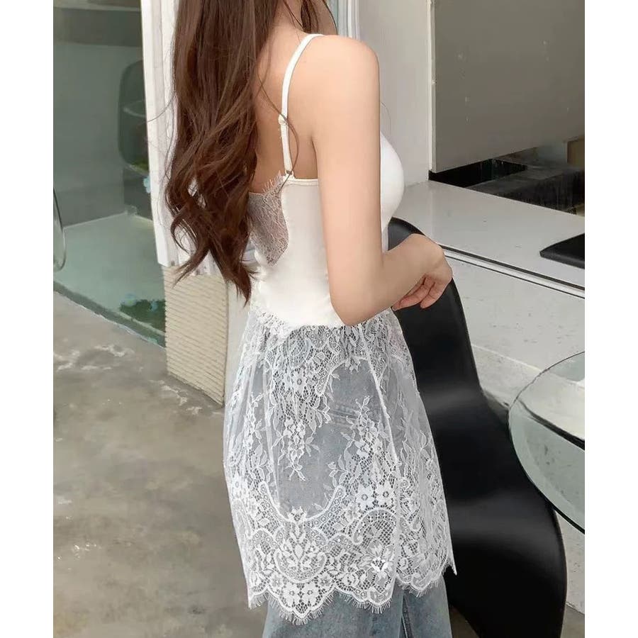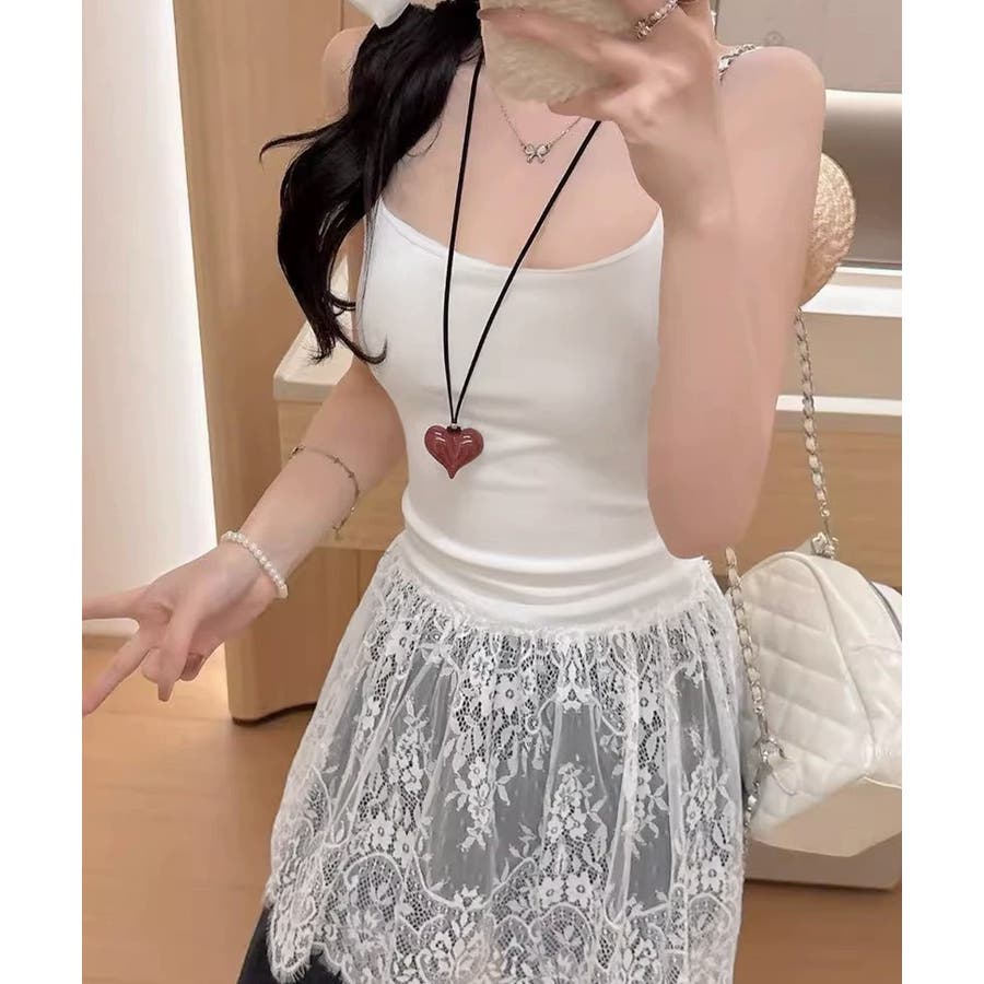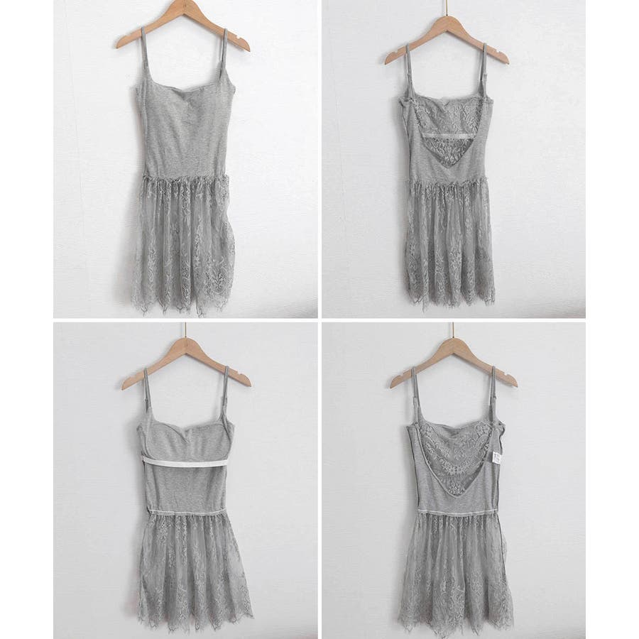 韓国っぽいムードが漂う、背中開きレースドッキングキャミソール。