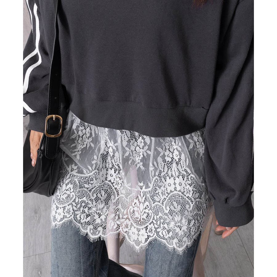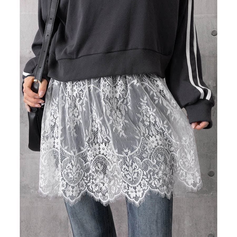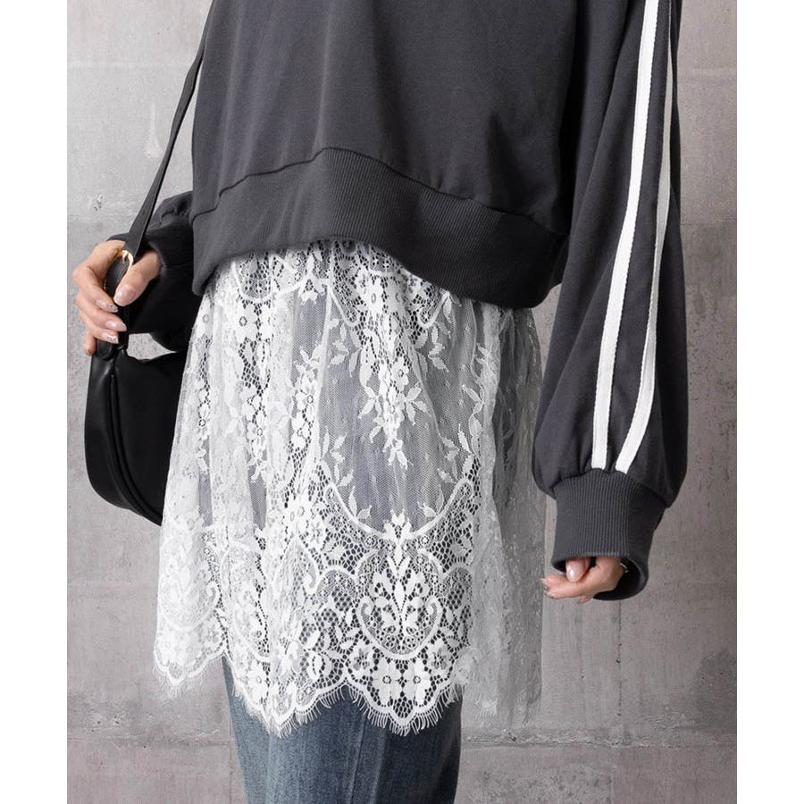 ニットやスウェットの裾からレースを覗かせて、旬な重ね着コーデに。