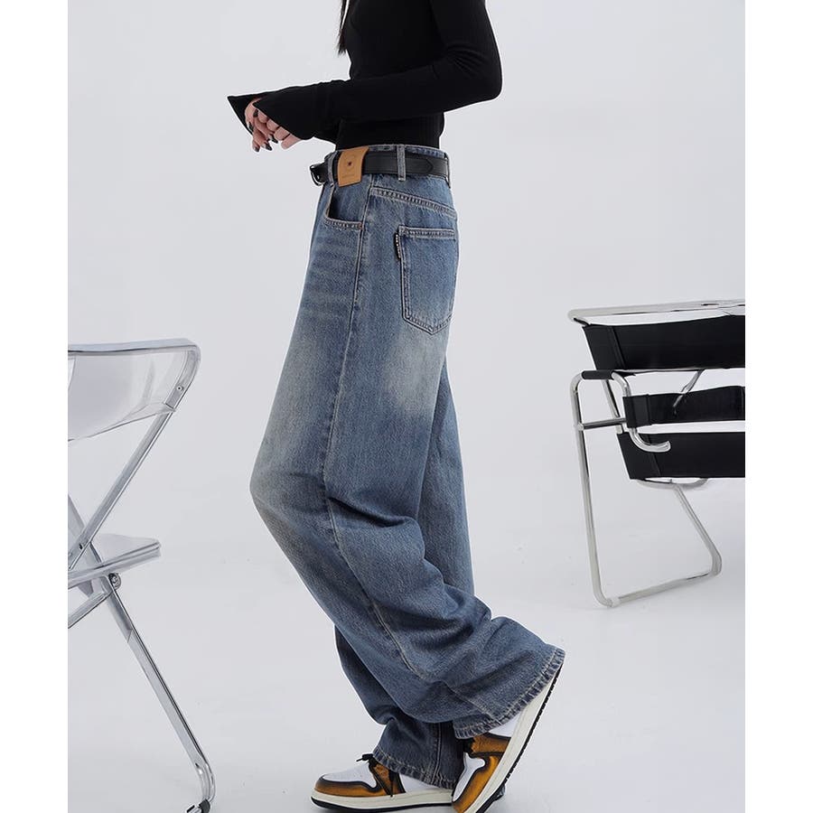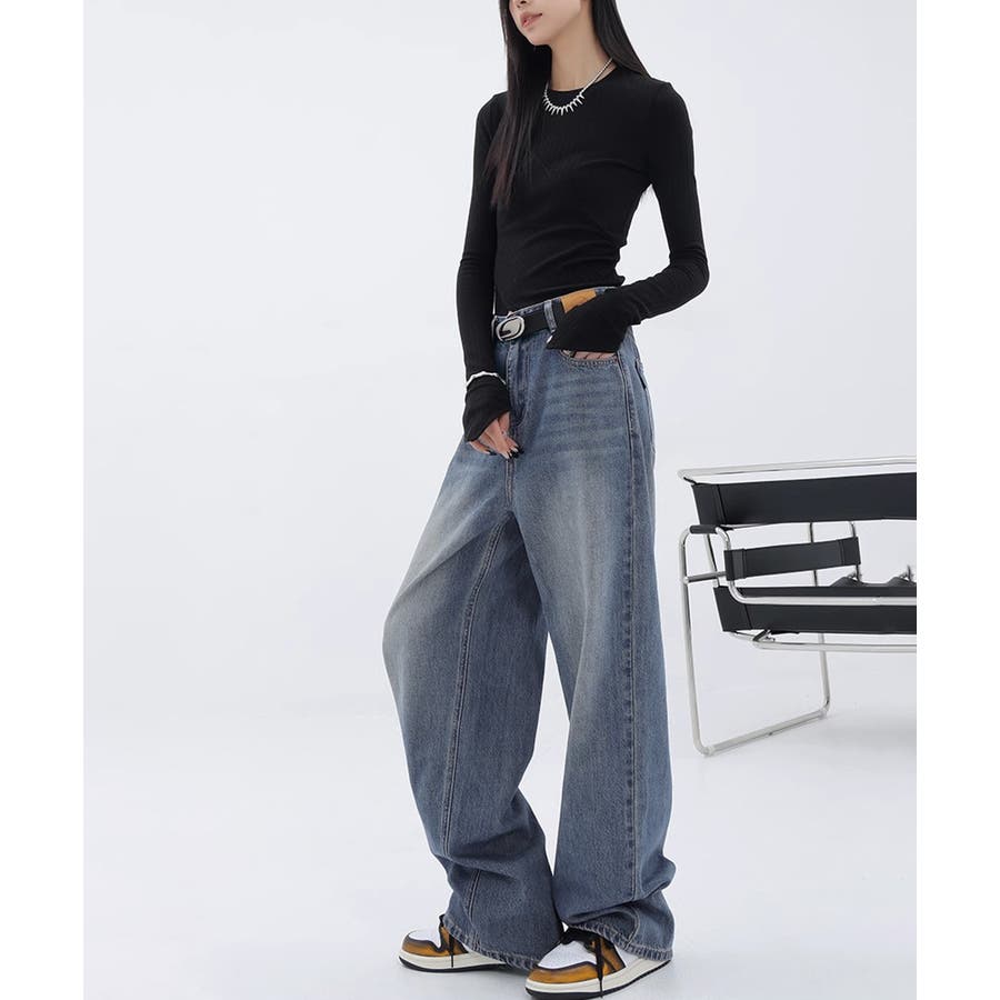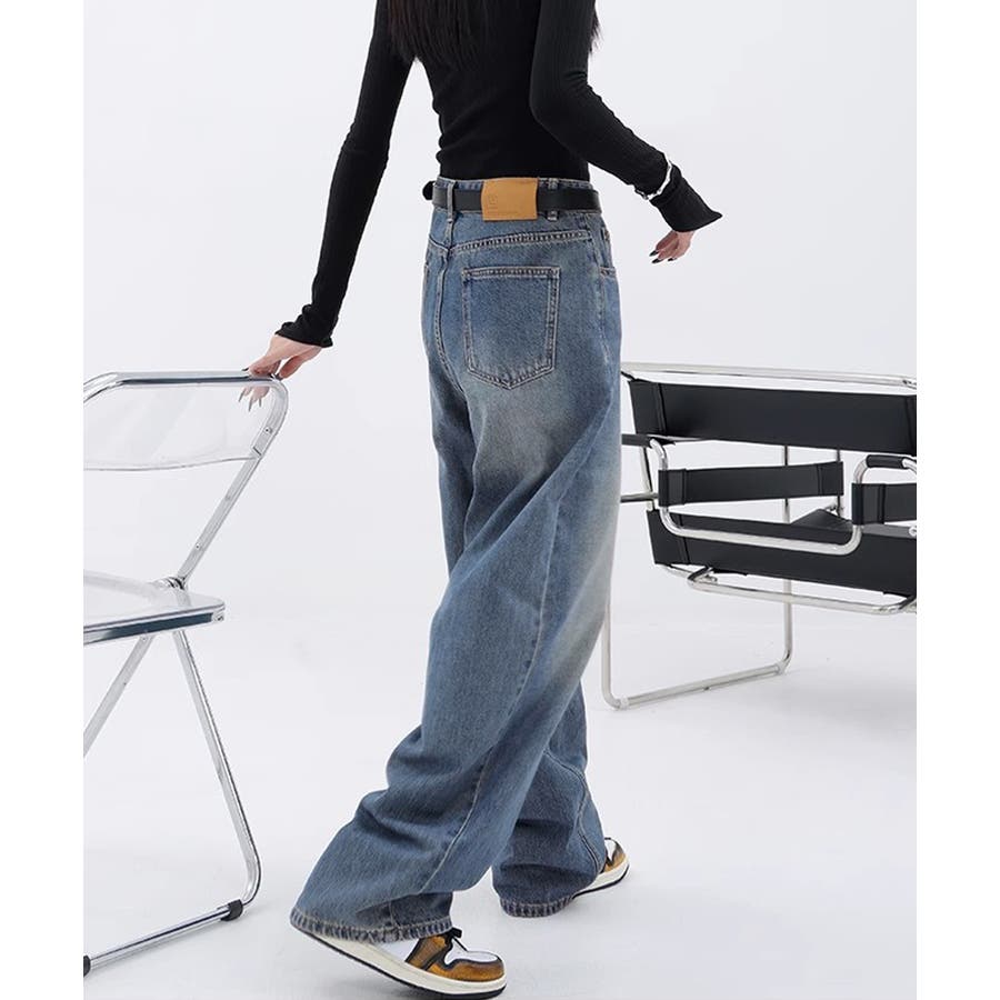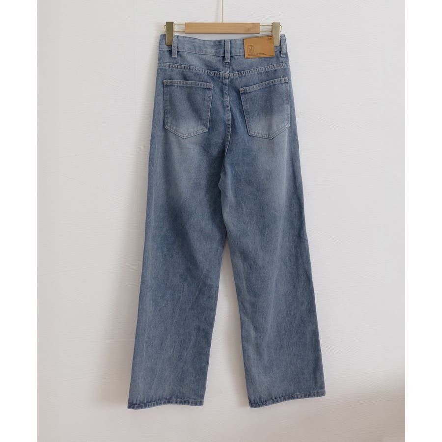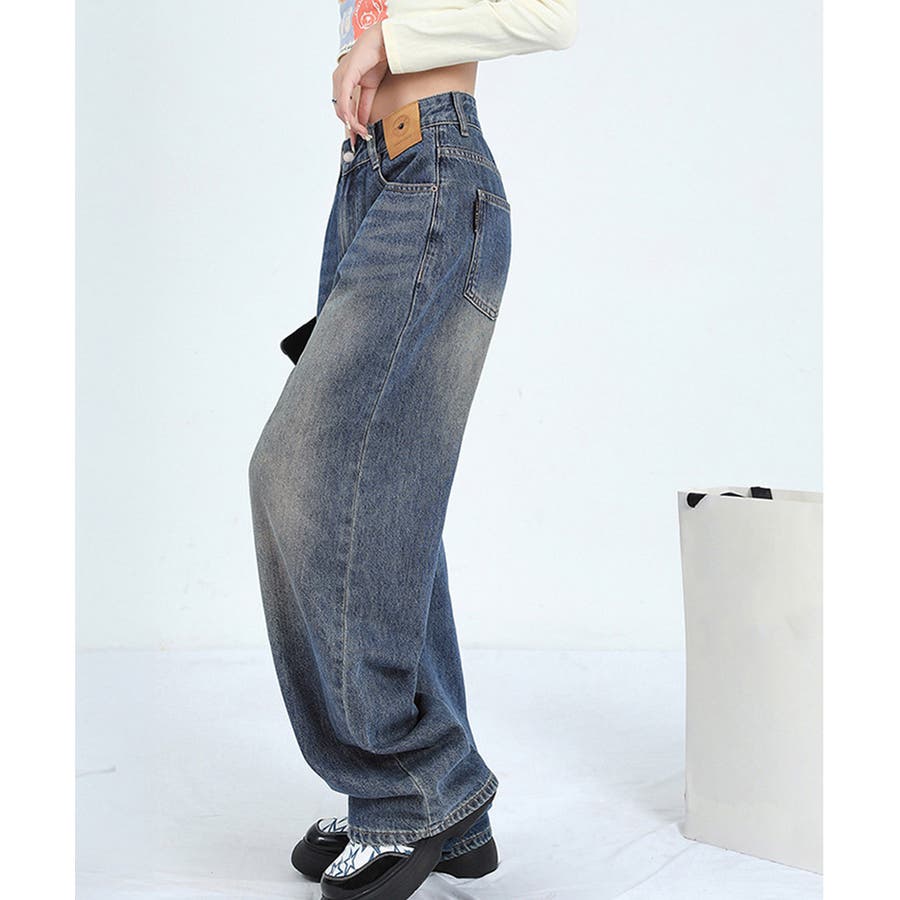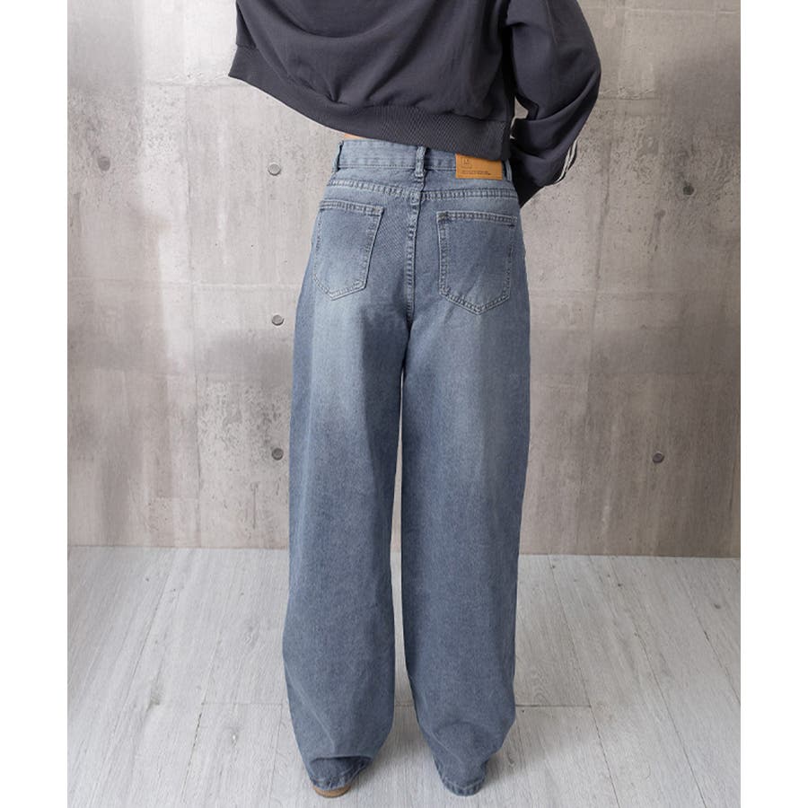 ビンテージ感漂うウォッシュ加工が魅力の、ワイドシルエットデニム。