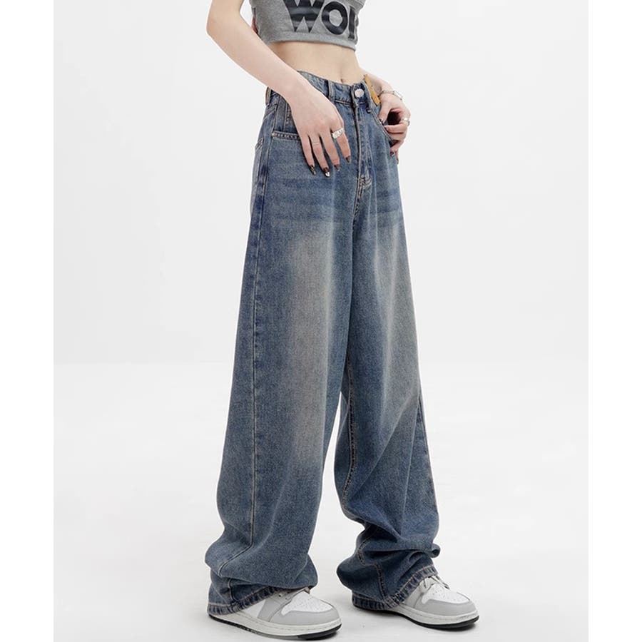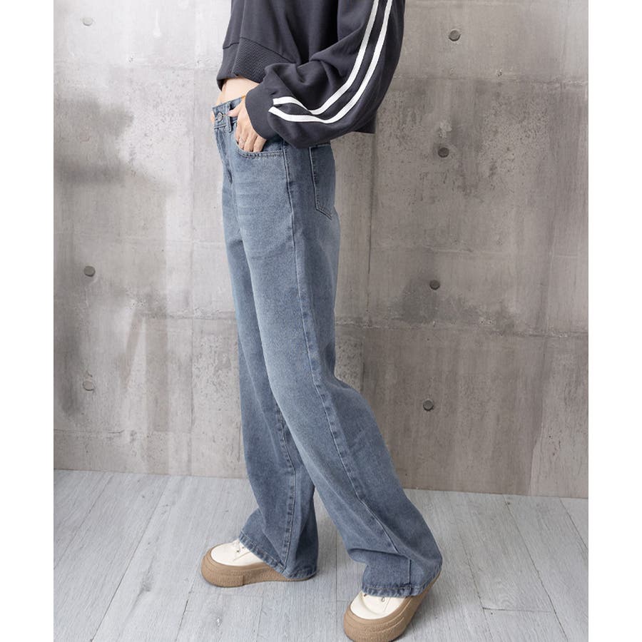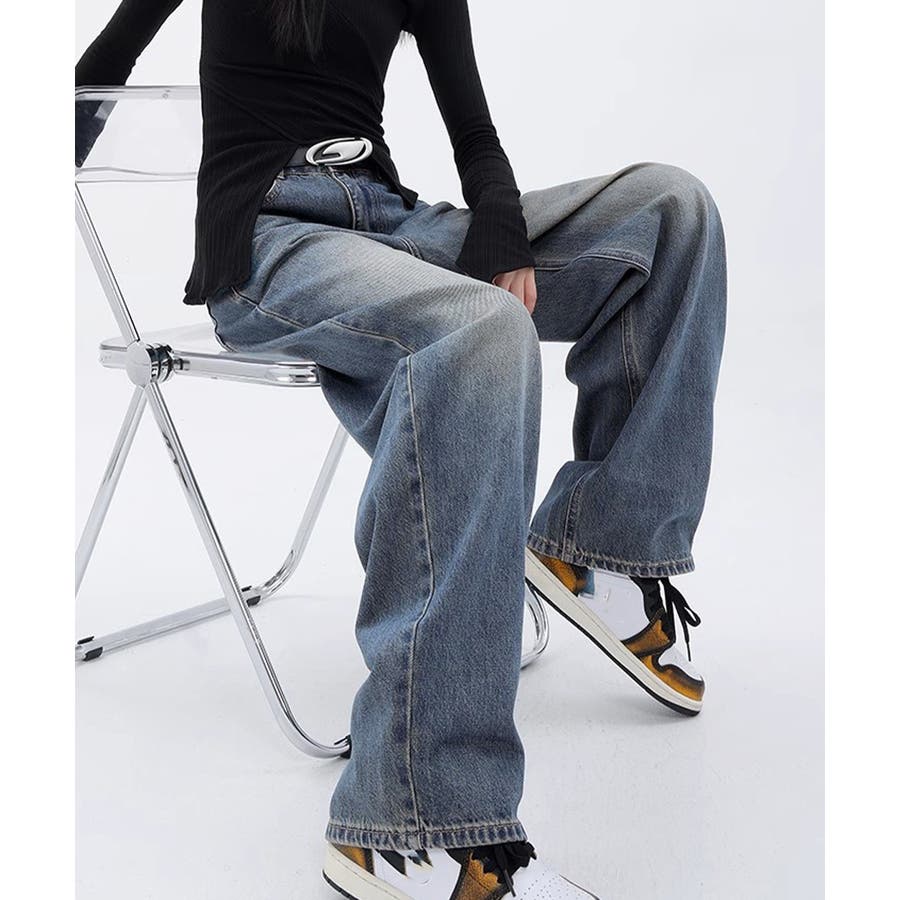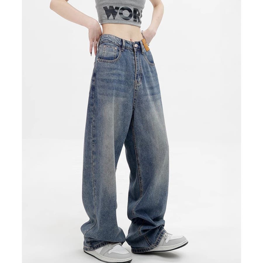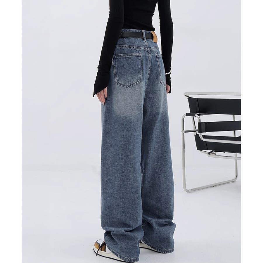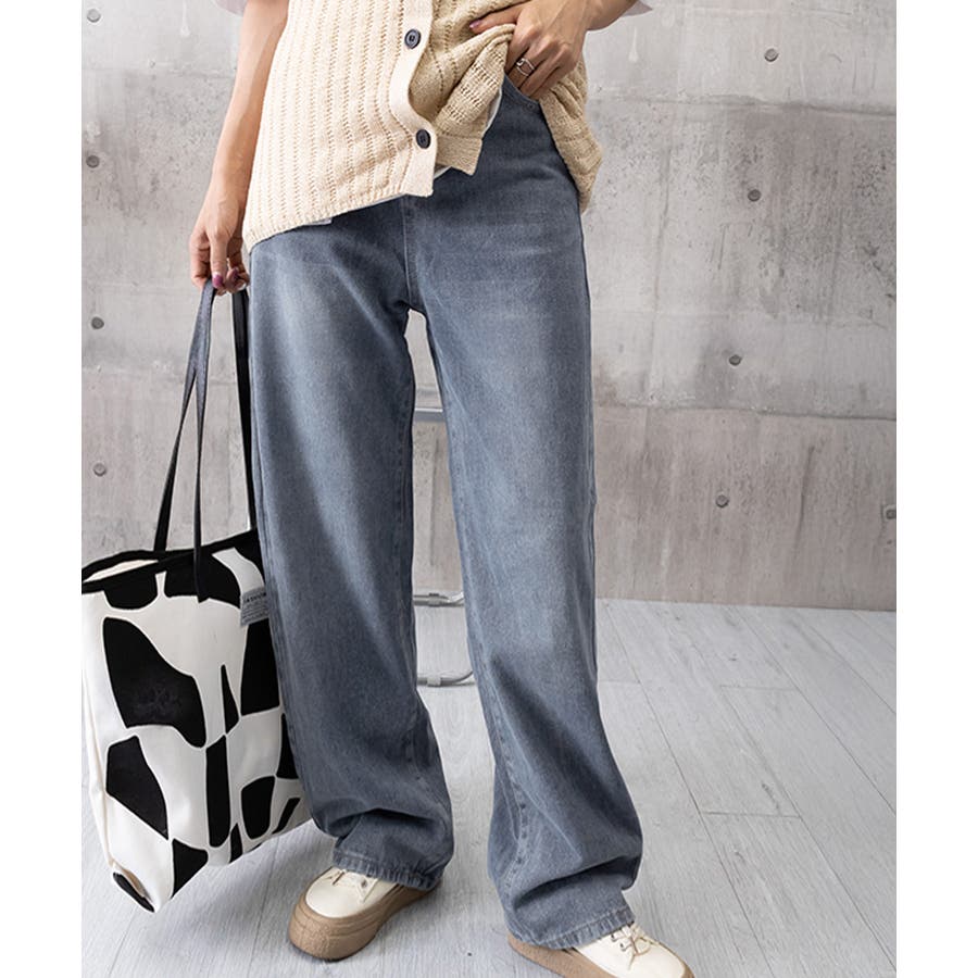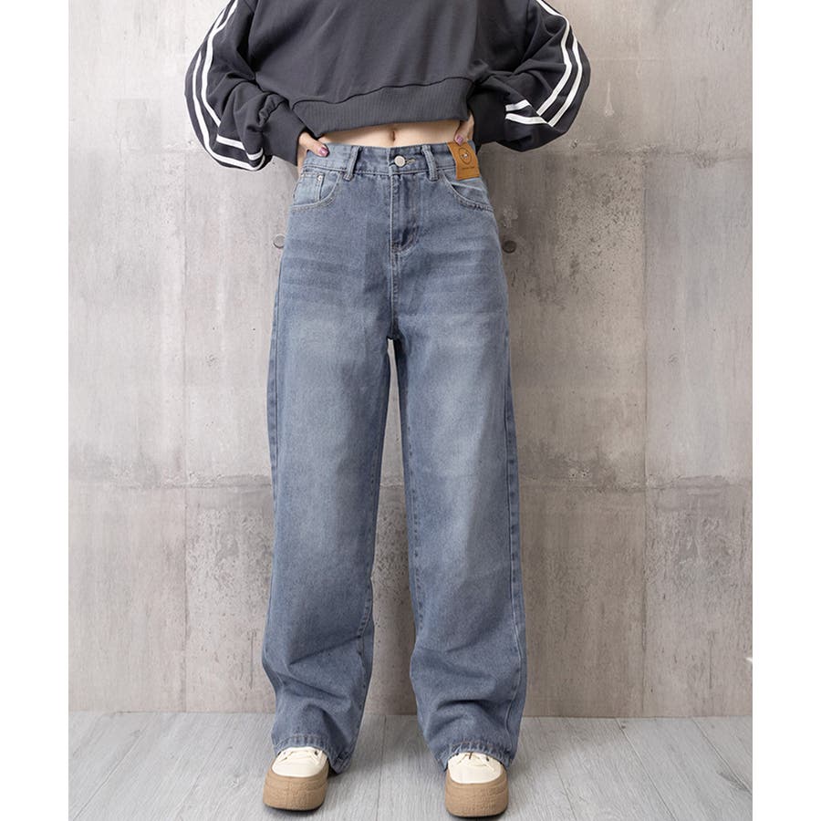 ビンテージ感漂うウォッシュ加工が魅力の、ワイドシルエットデニム。