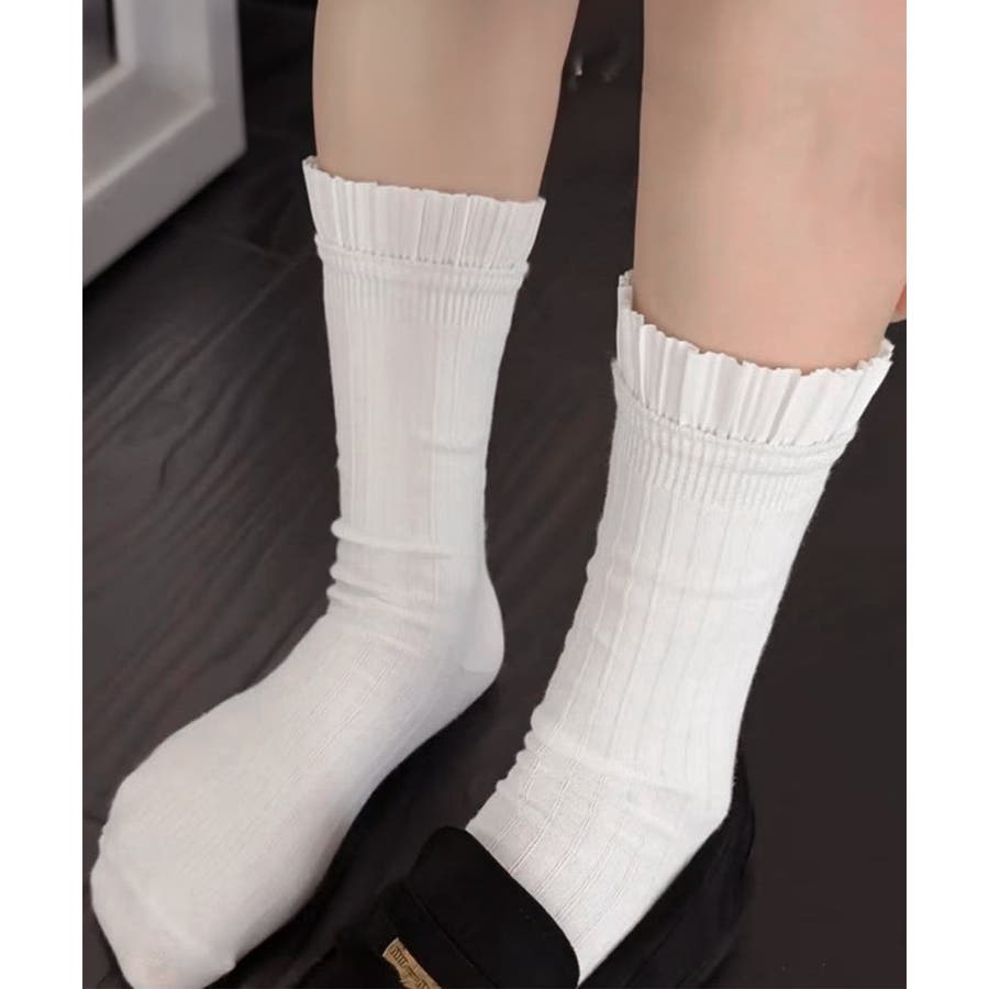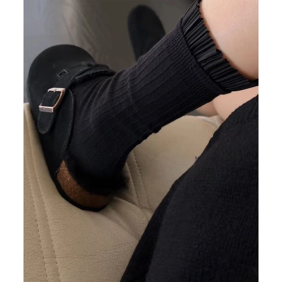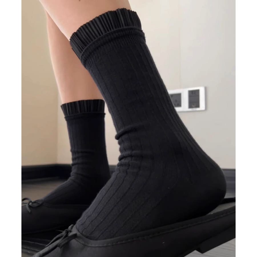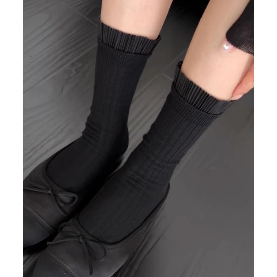 プリーツフリルソックス ミドル丈無地靴下