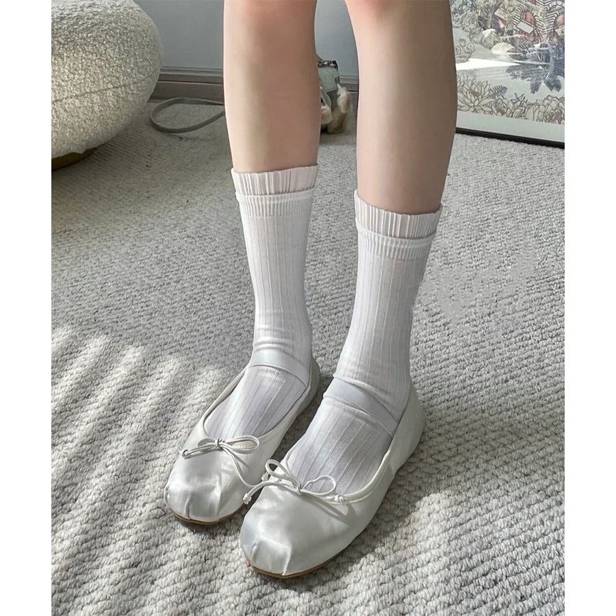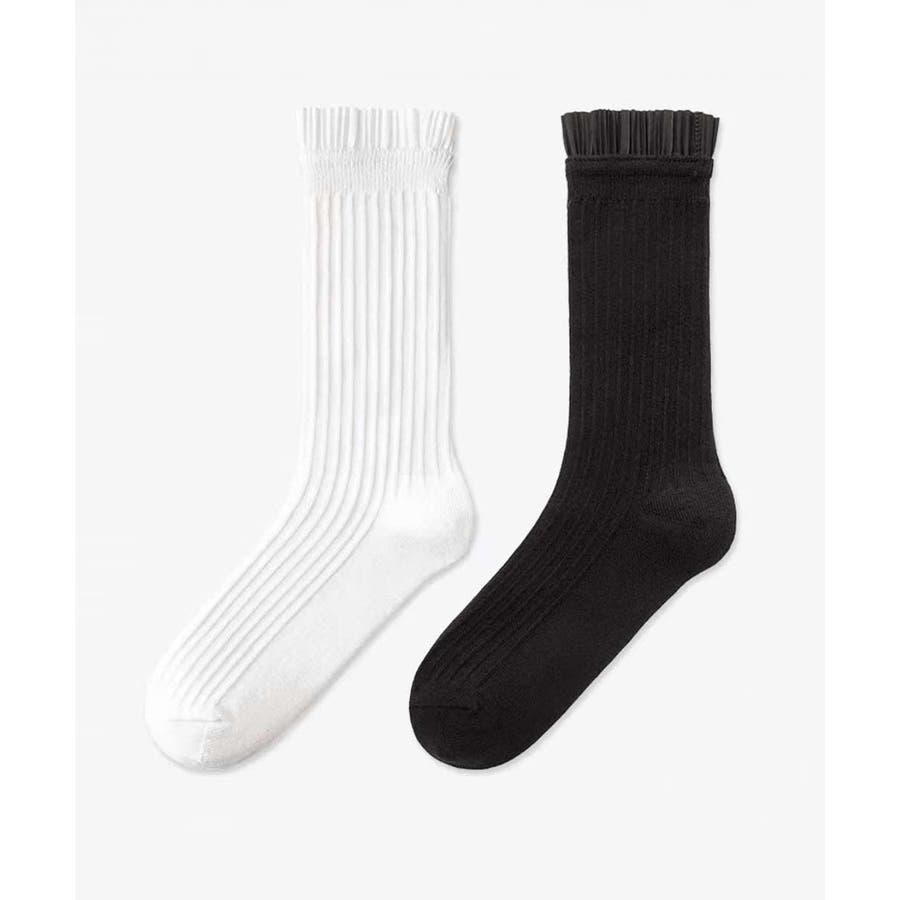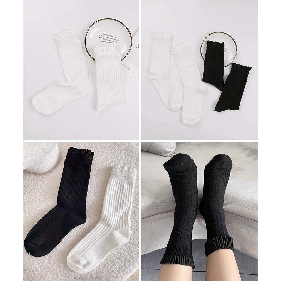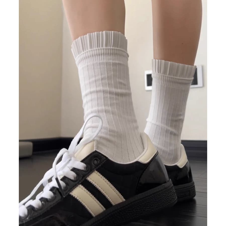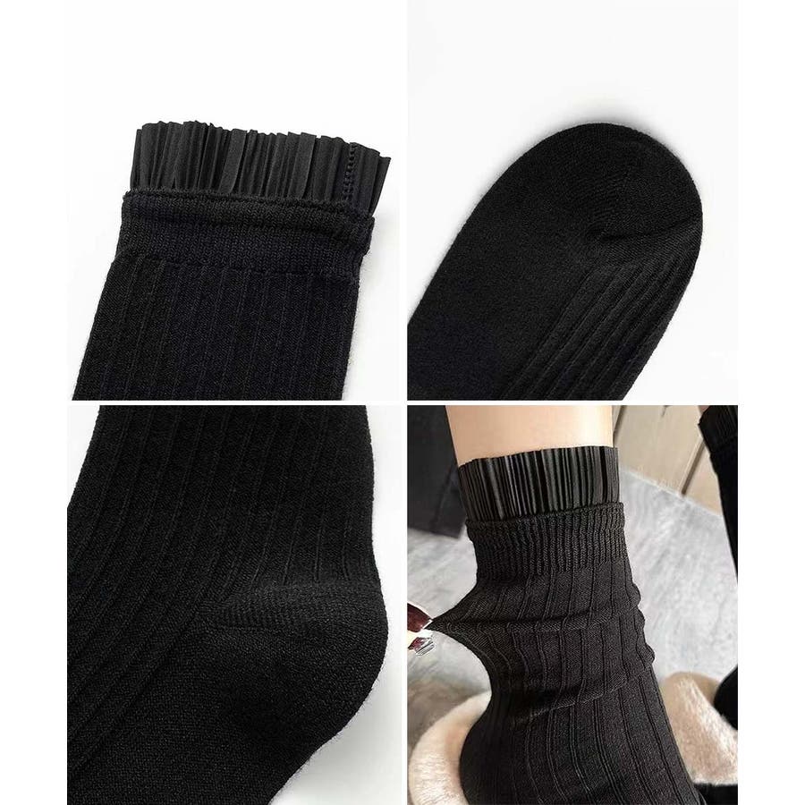 プリーツフリルソックス ミドル丈無地靴下