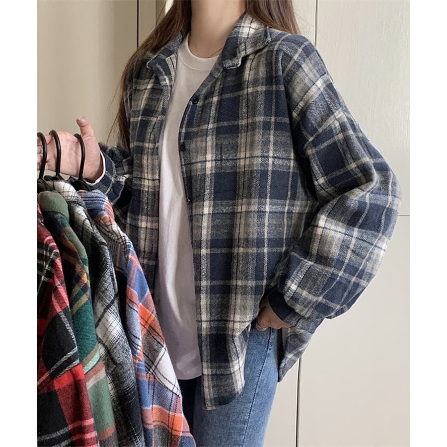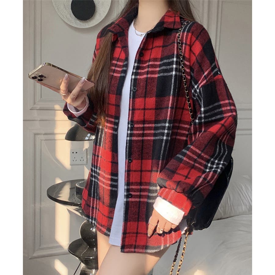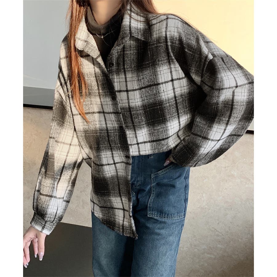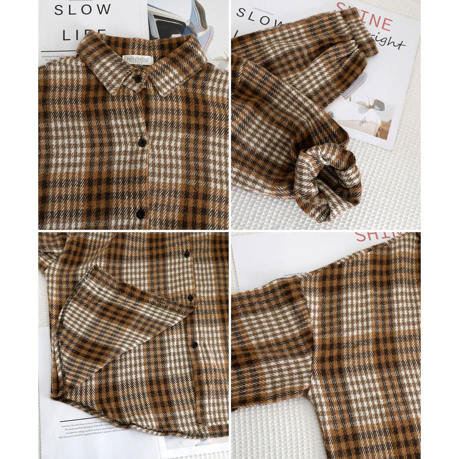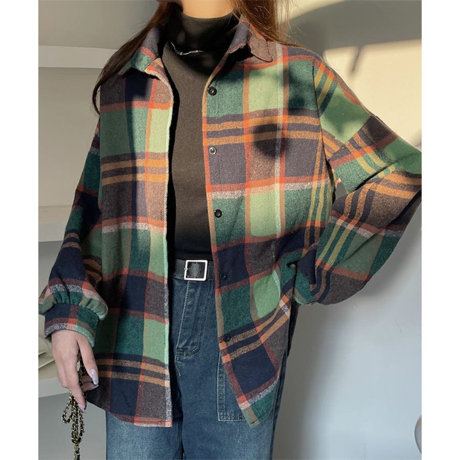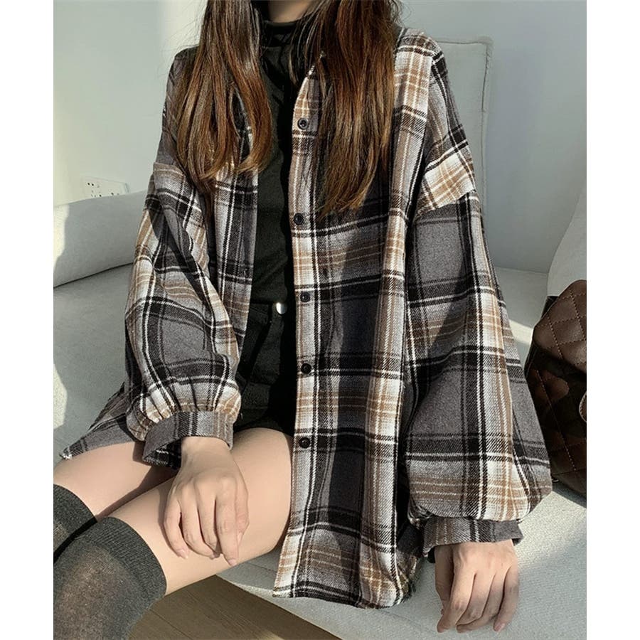 チェック柄羽織り秋 着やせシャツ韓国風 起毛シャツブラウス