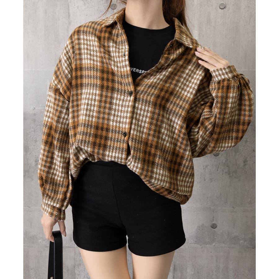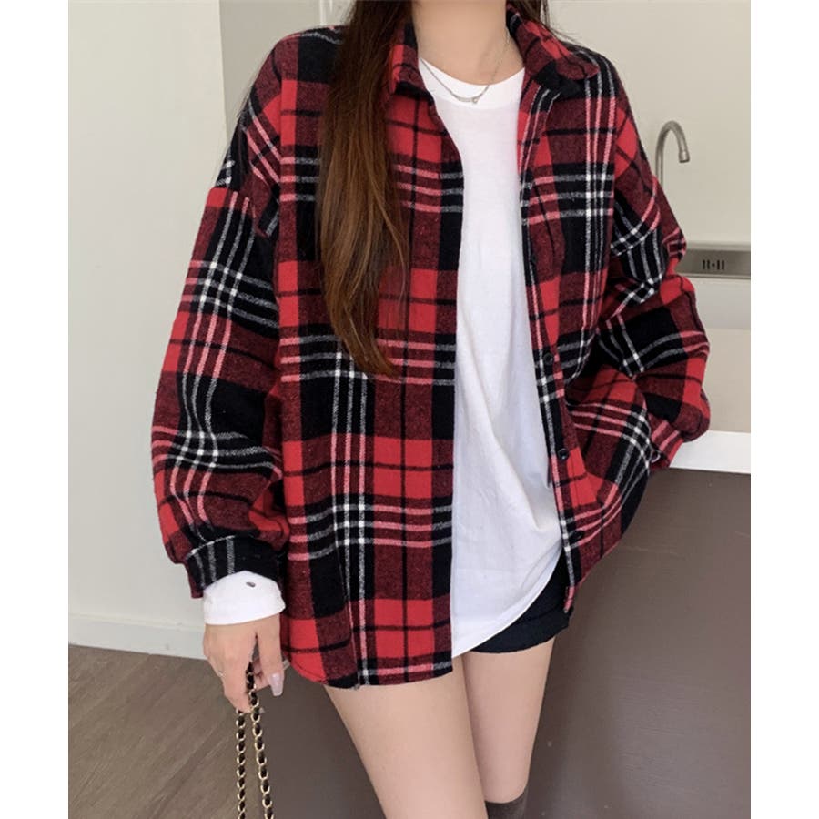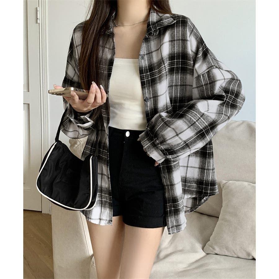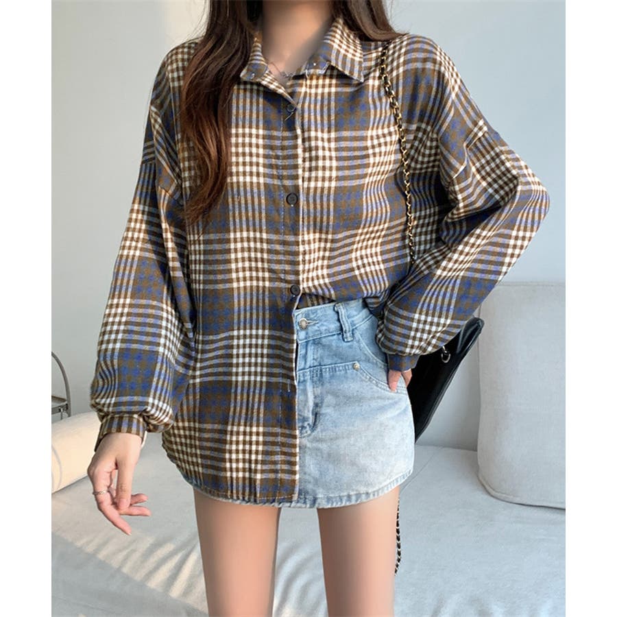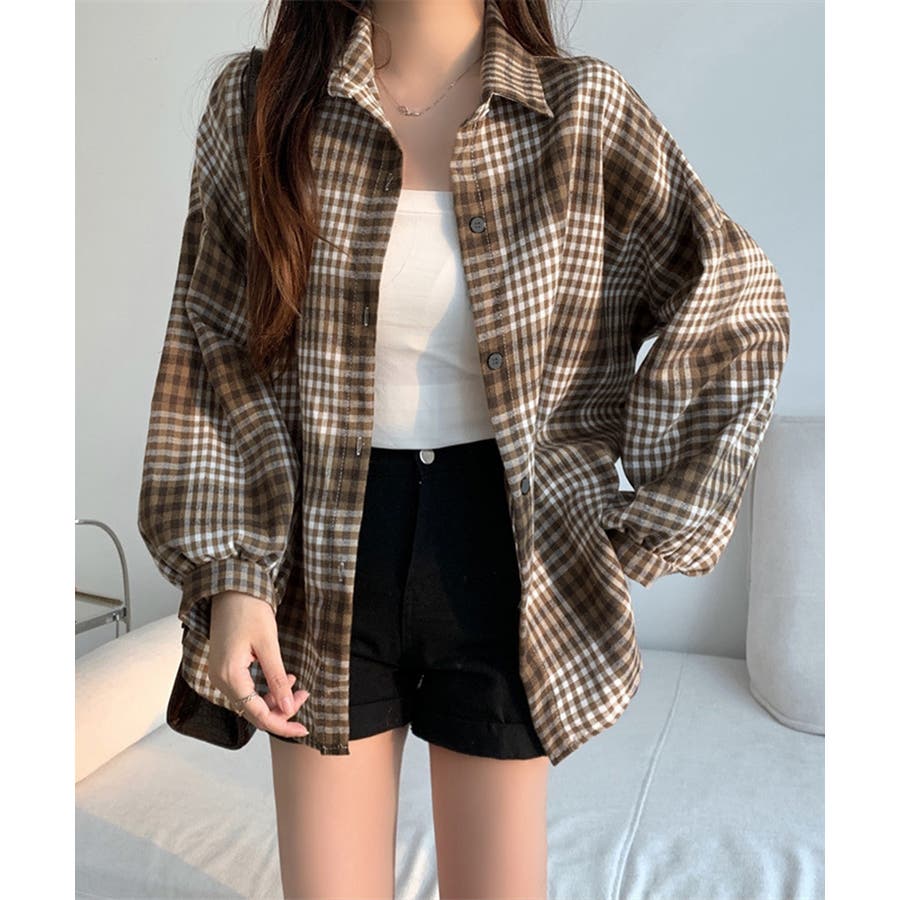 チェック柄羽織り秋 着やせシャツ韓国風 起毛シャツブラウス