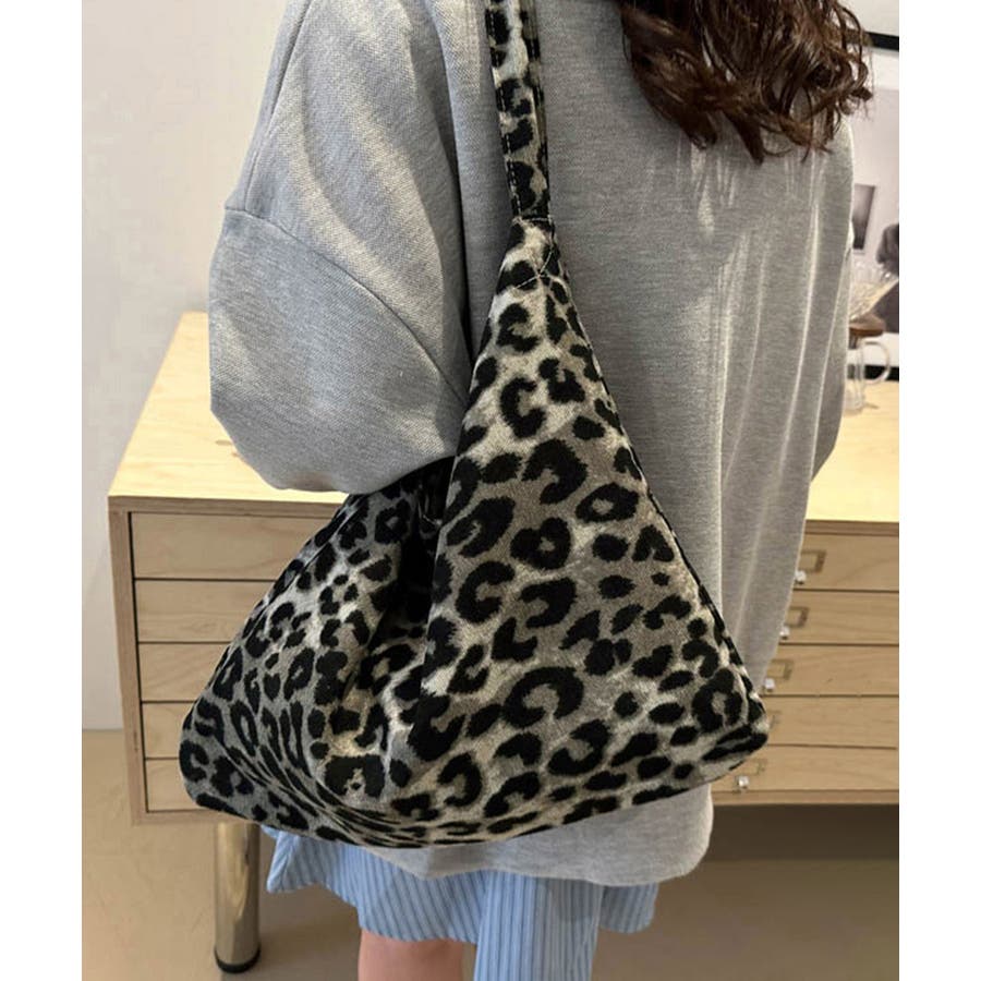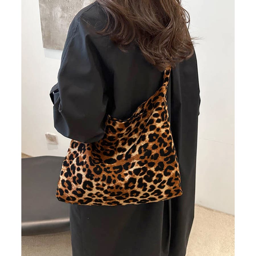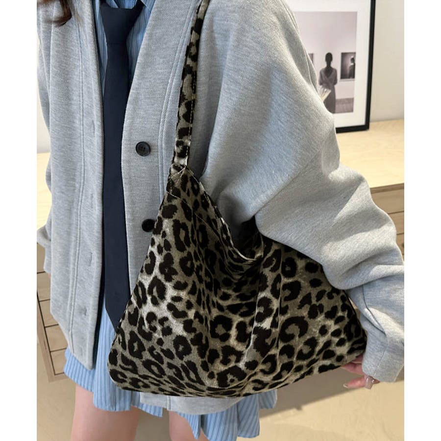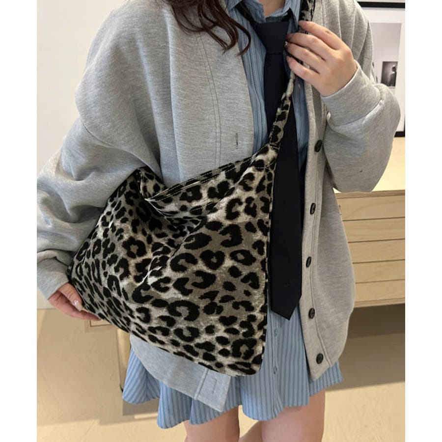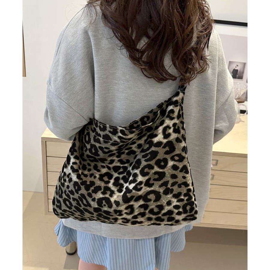 大胆なレオパード柄が目を引く、ワンショルダータイプのトートバッグ。