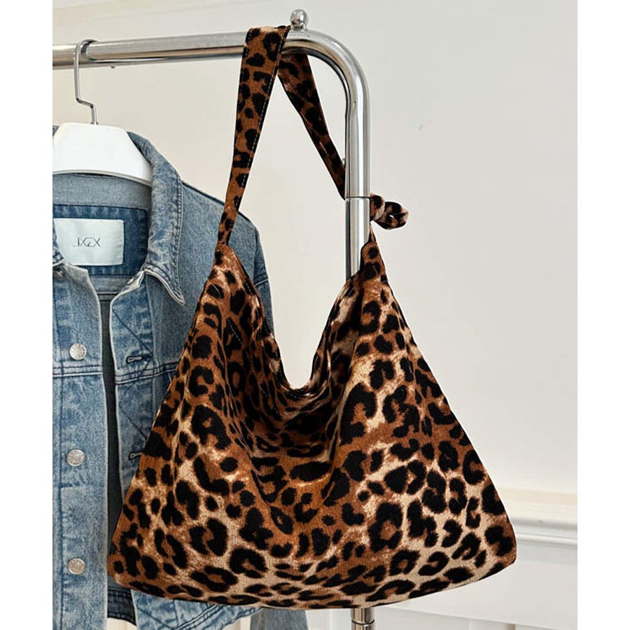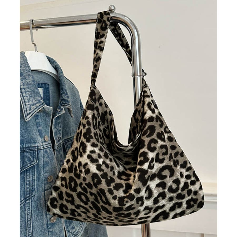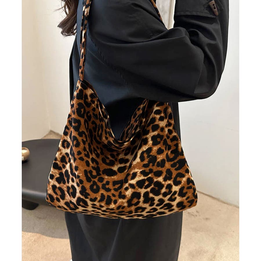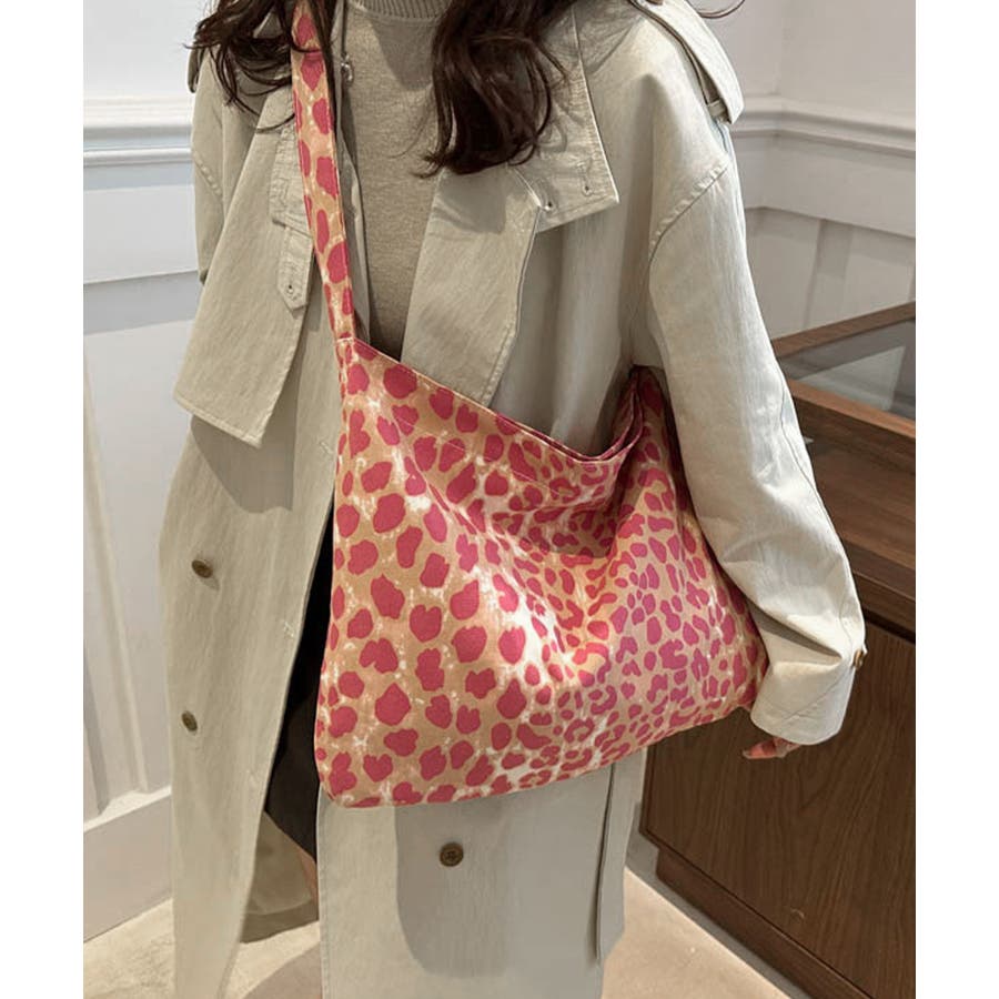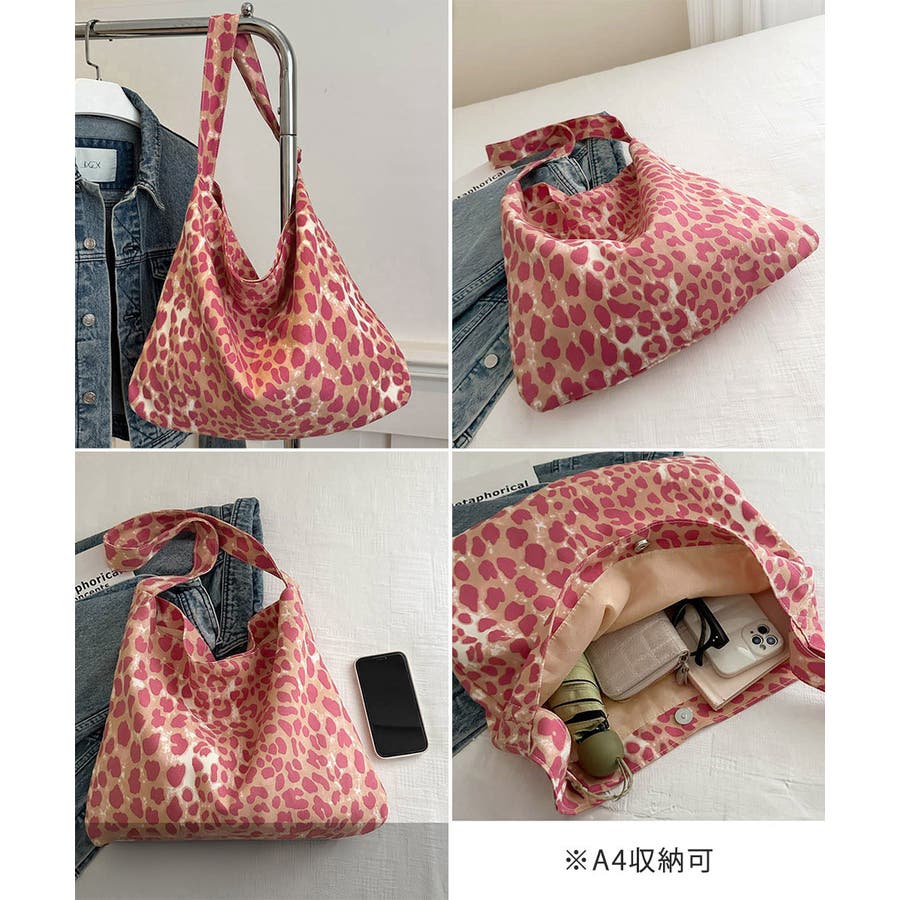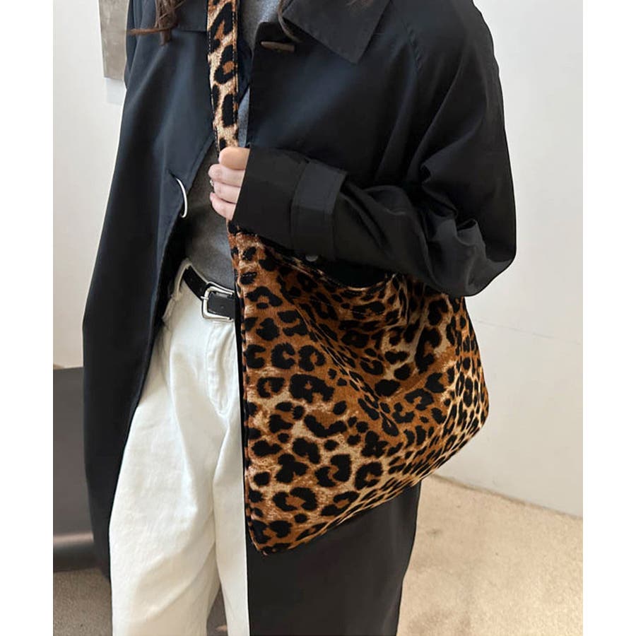 大胆なレオパード柄が目を引く、ワンショルダータイプのトートバッグ。