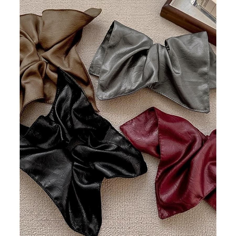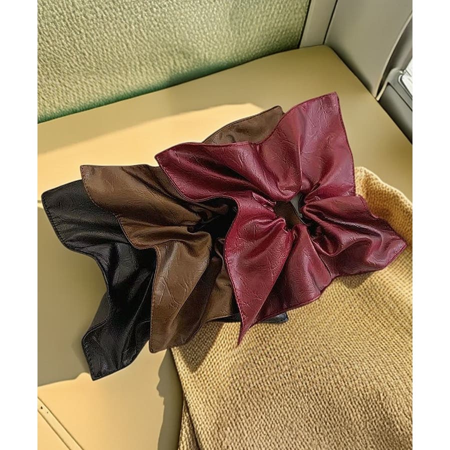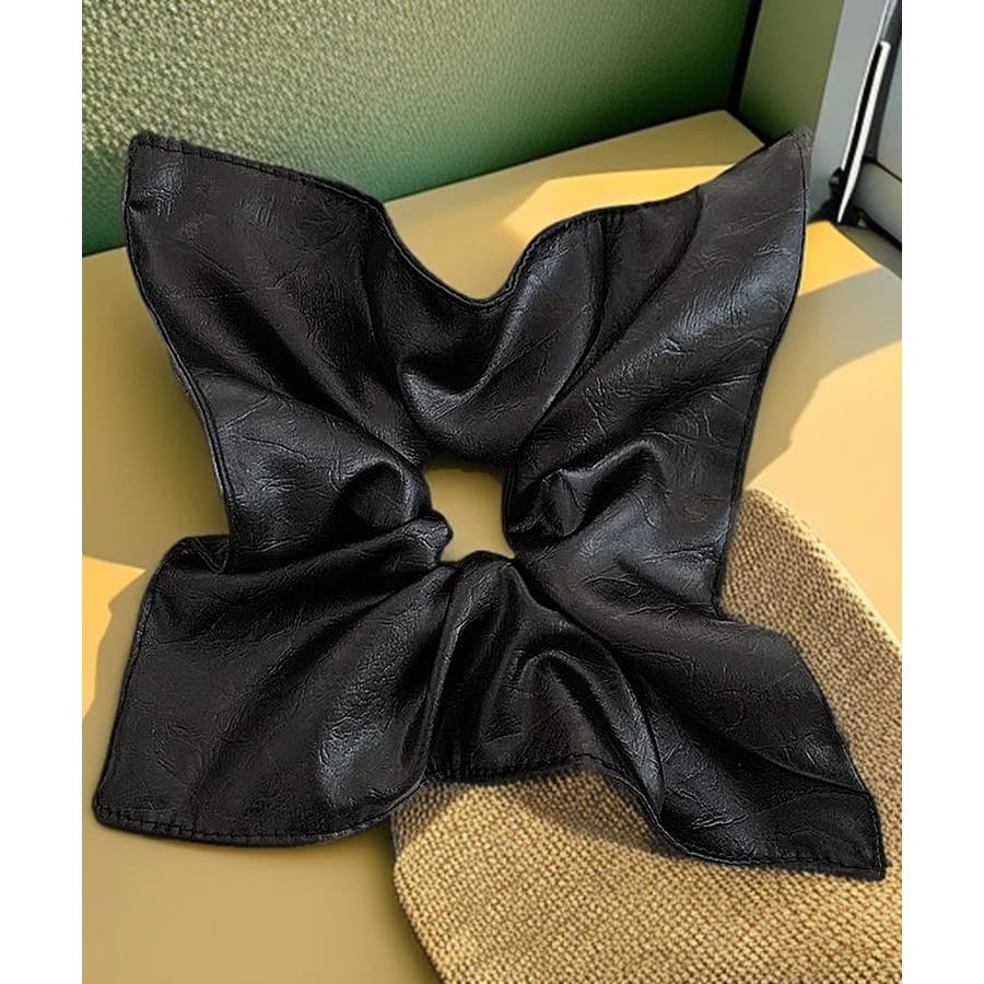 上質なフェイクレザーを使用したスクエア型の大きめシュシュ。