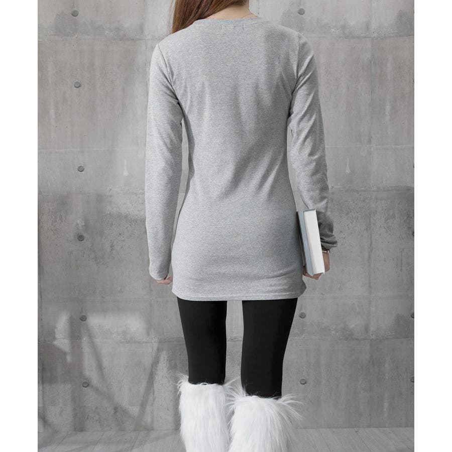 インナーとしても一枚でも活躍する万能デザインで、秋冬のレイヤードスタイルに欠かせない一枚。