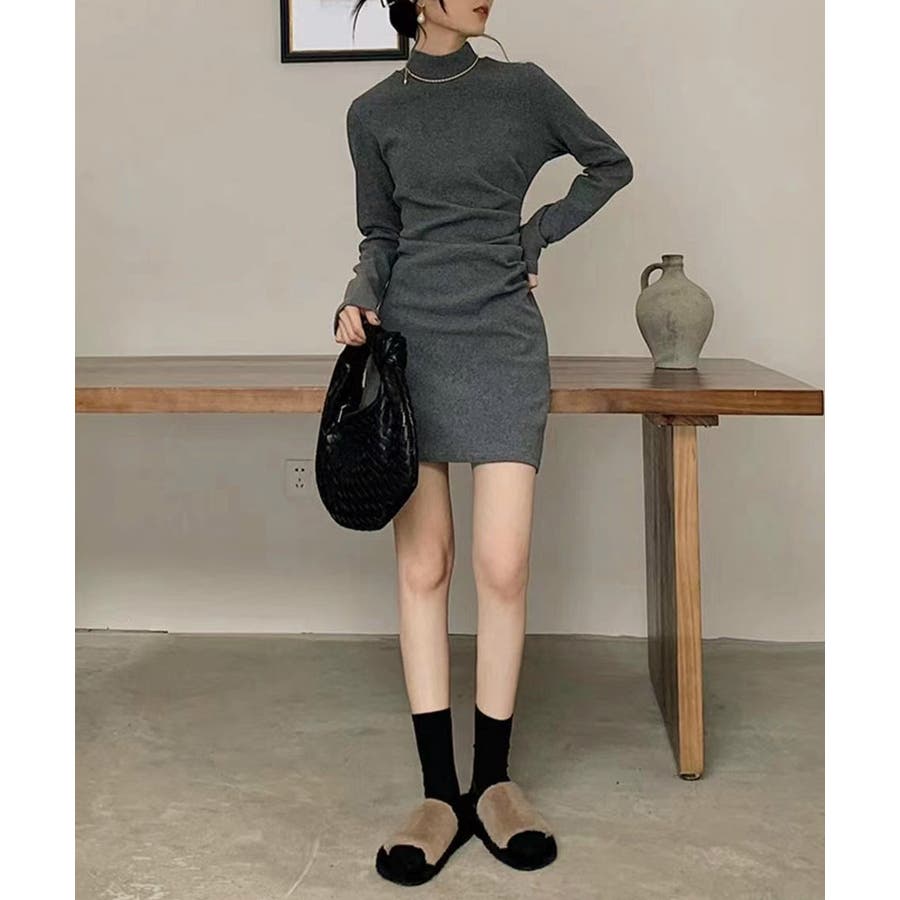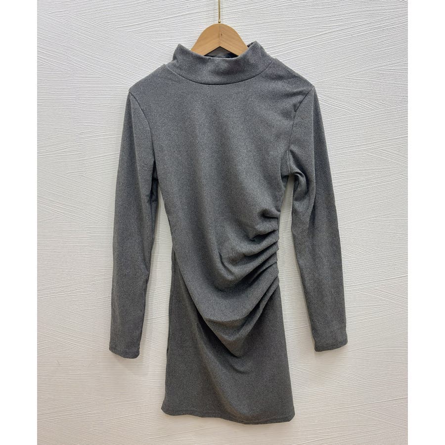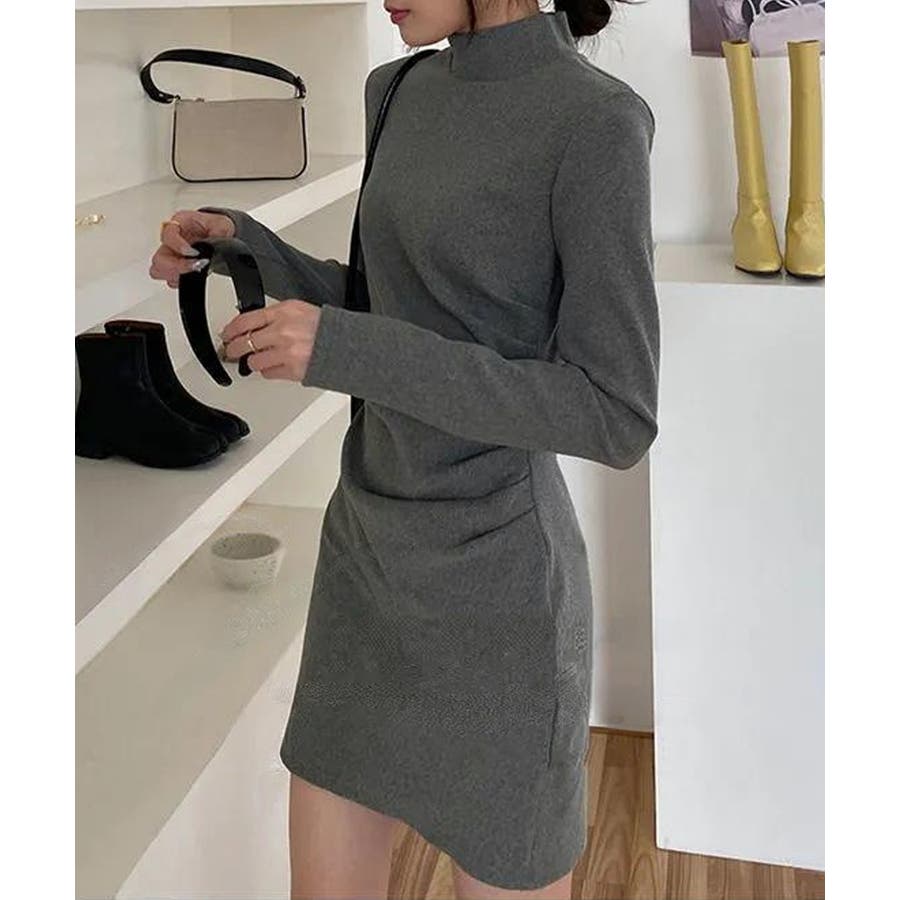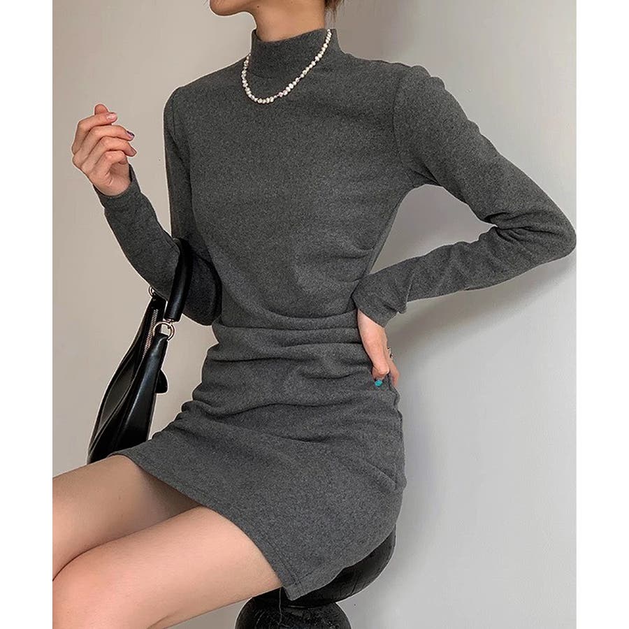 シンプルで着回し力の高い、レディースハイネックミニタイトワンピース。