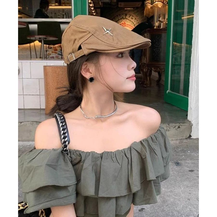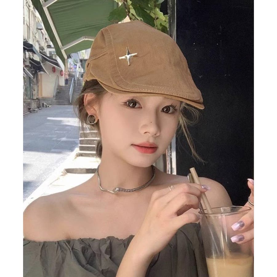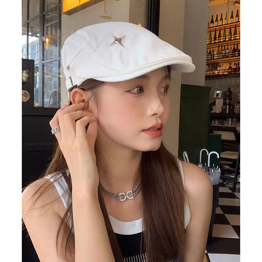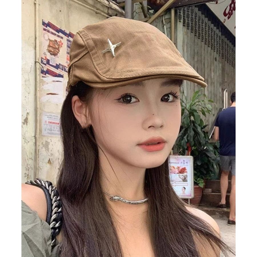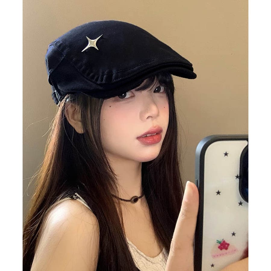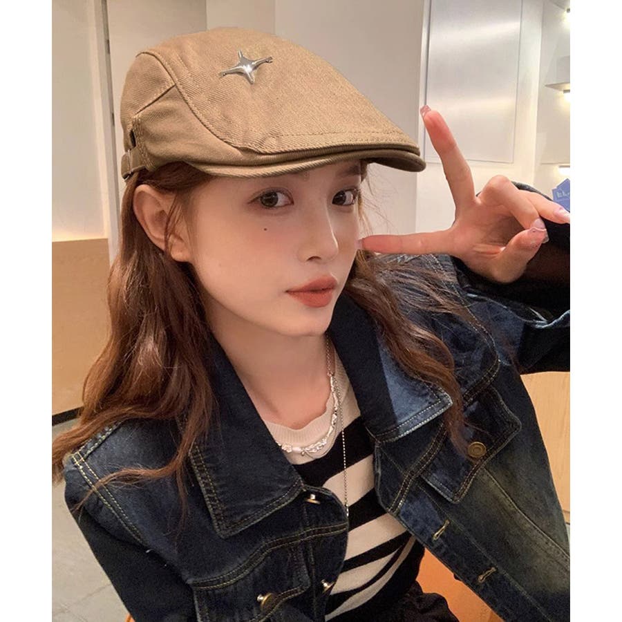 星形のメタル装飾リベットが付いた可愛らしいキャスケットです。