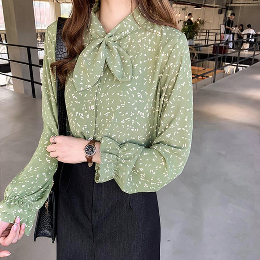 フロントにあしらったボウタイリボンで華やかに彩られたブラウス