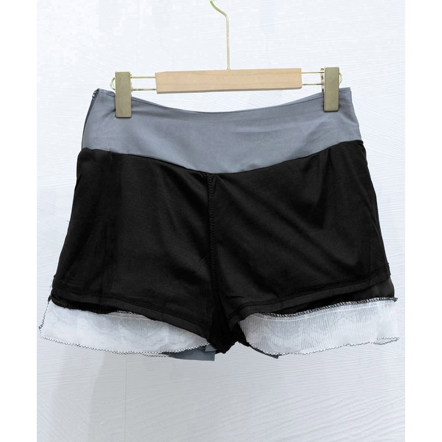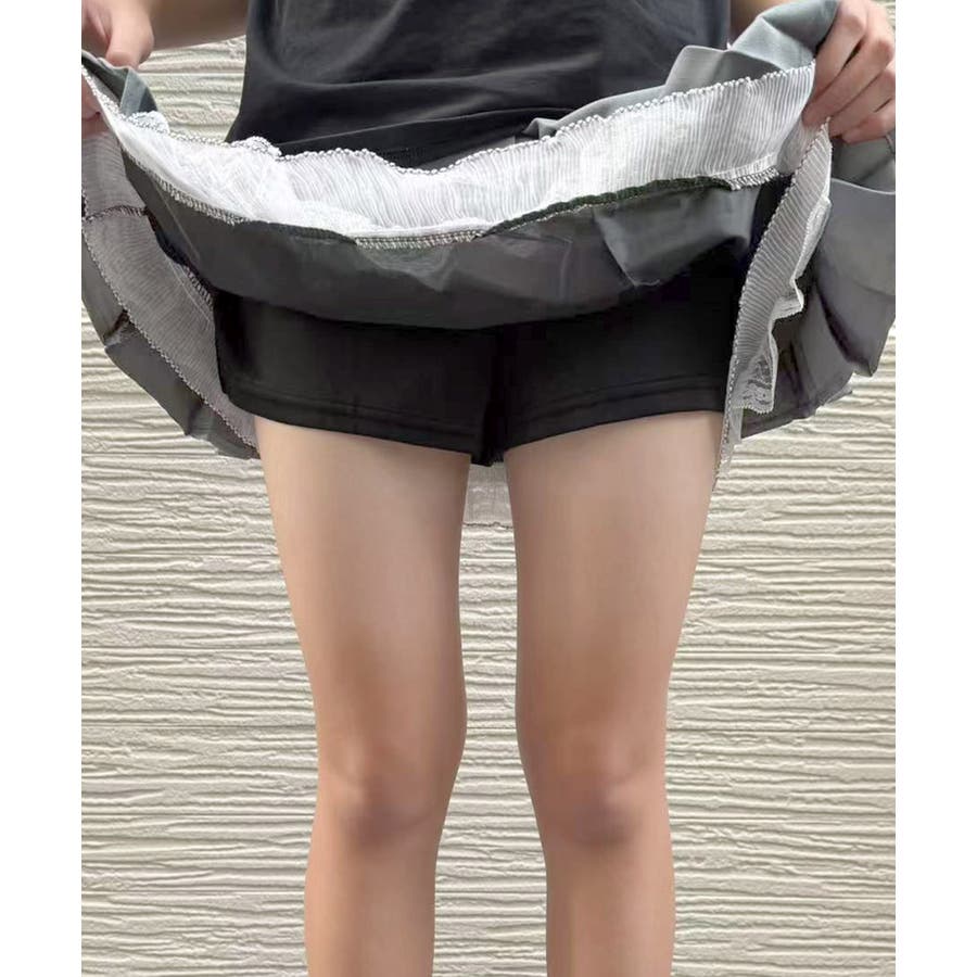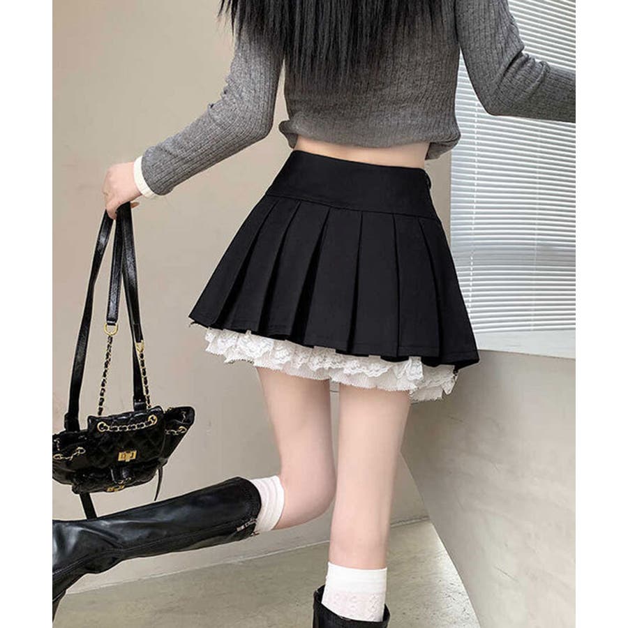 レディース ハイウエスト ショート丈スカート インナーパンツ付き Aラインスカート 裾レース ボリューム 細見えスカート