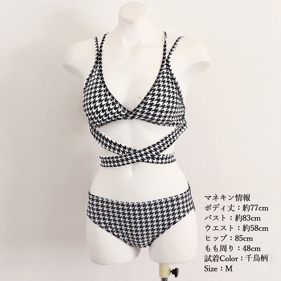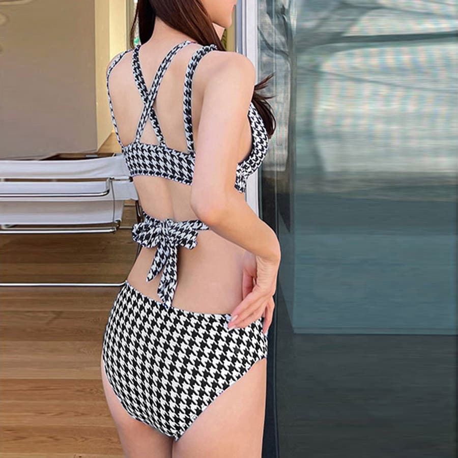 クロスビキニ 千鳥格子水着 セクシー 胸元