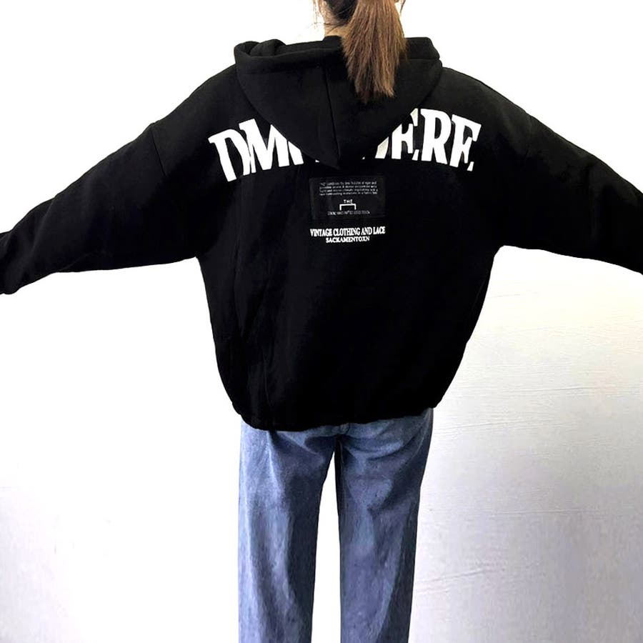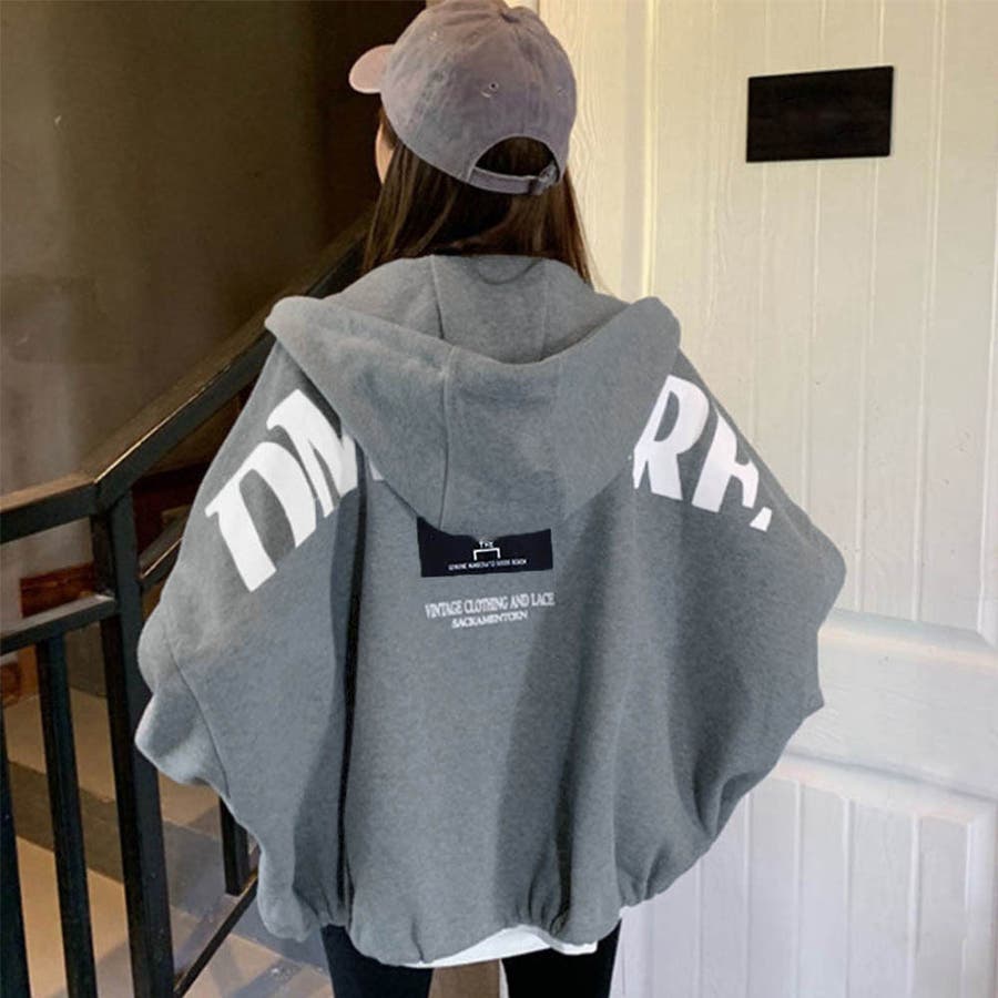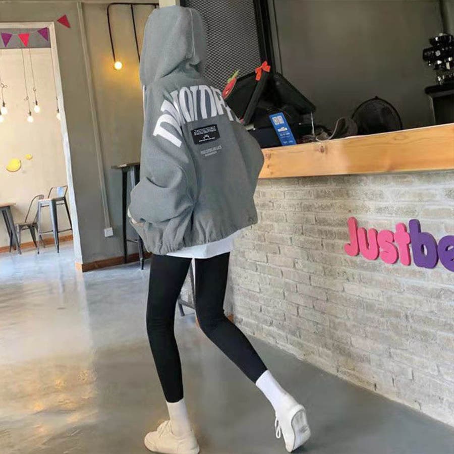 長袖 カジュアル フード付きブルゾン ドロップショルダー 裏微起毛トレーナー オシャレ ショート バックロゴ 韓国風