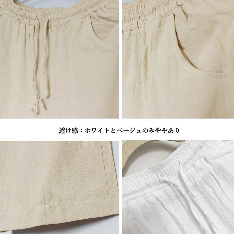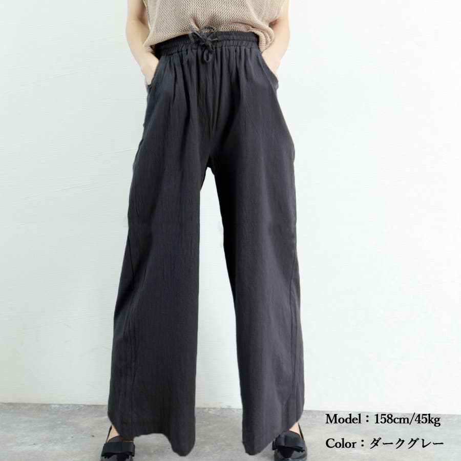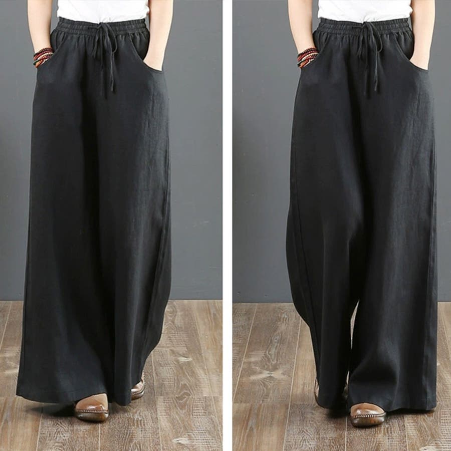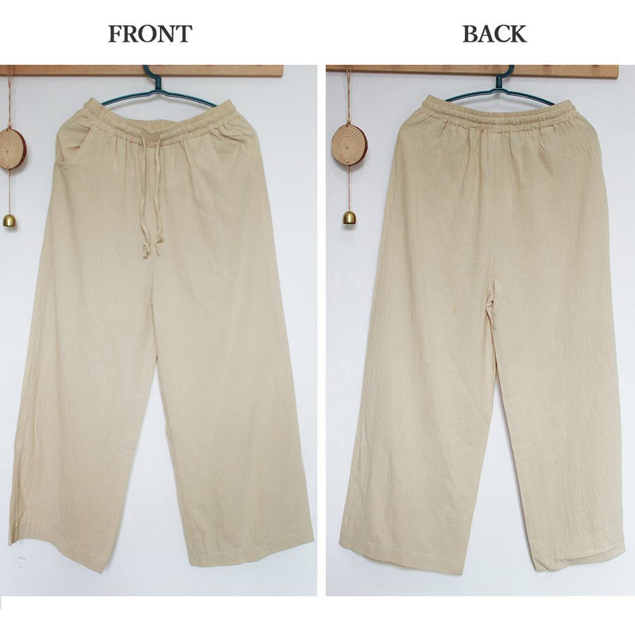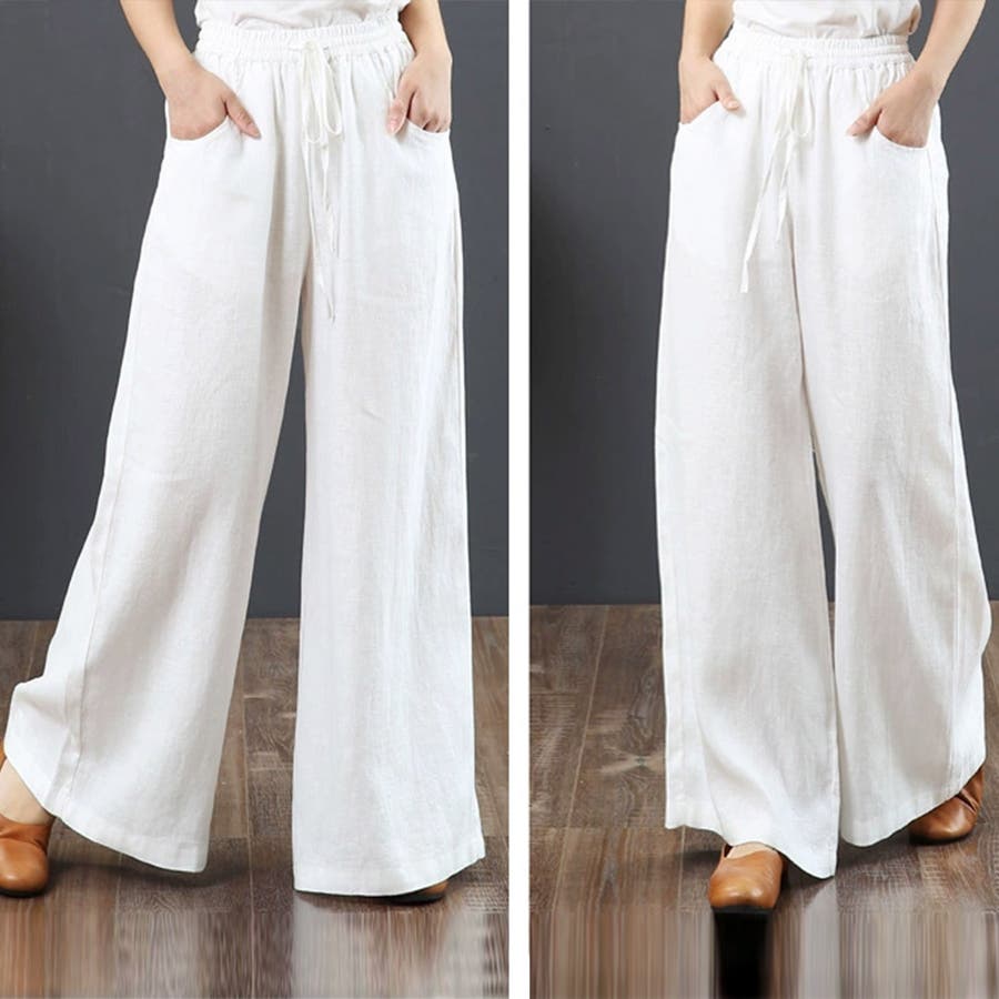 綿麻ワイドパンツ ロングパンツ春秋