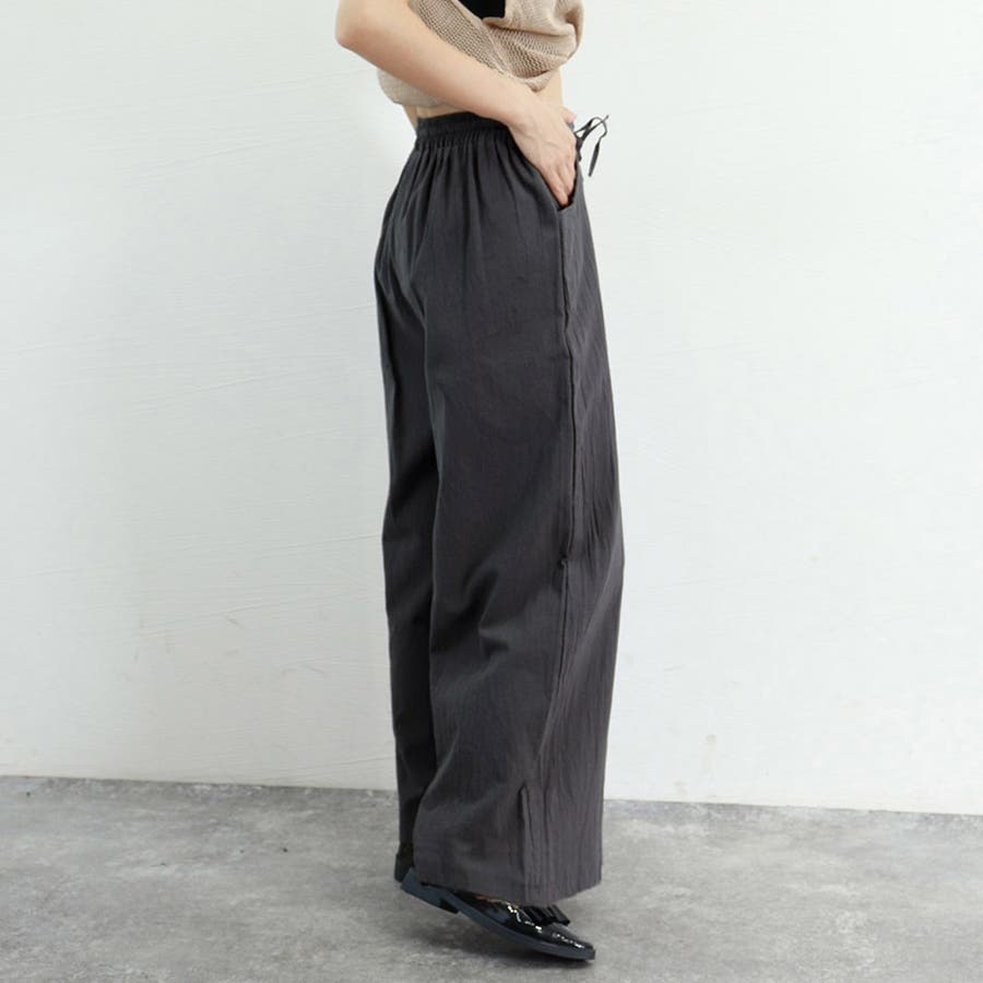 落ち感と涼感のあるリネン混生地を使用した、肌触りの良いコットンイージーパンツです。