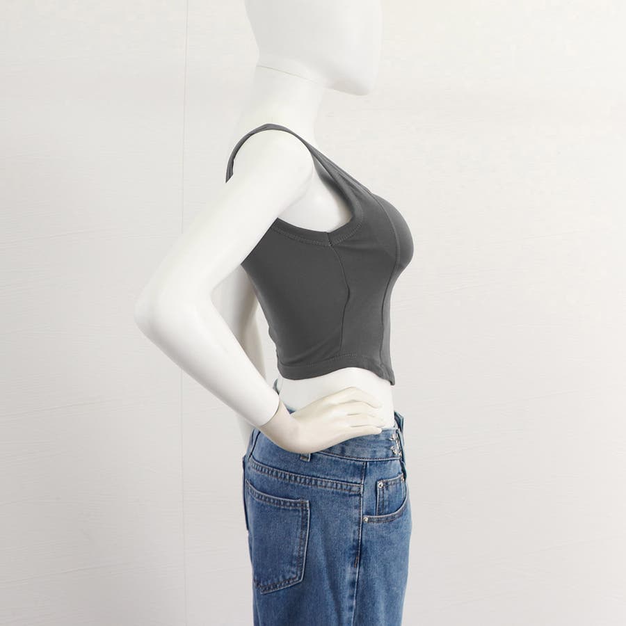 タンクトップ ショート丈無地 カップ付き
