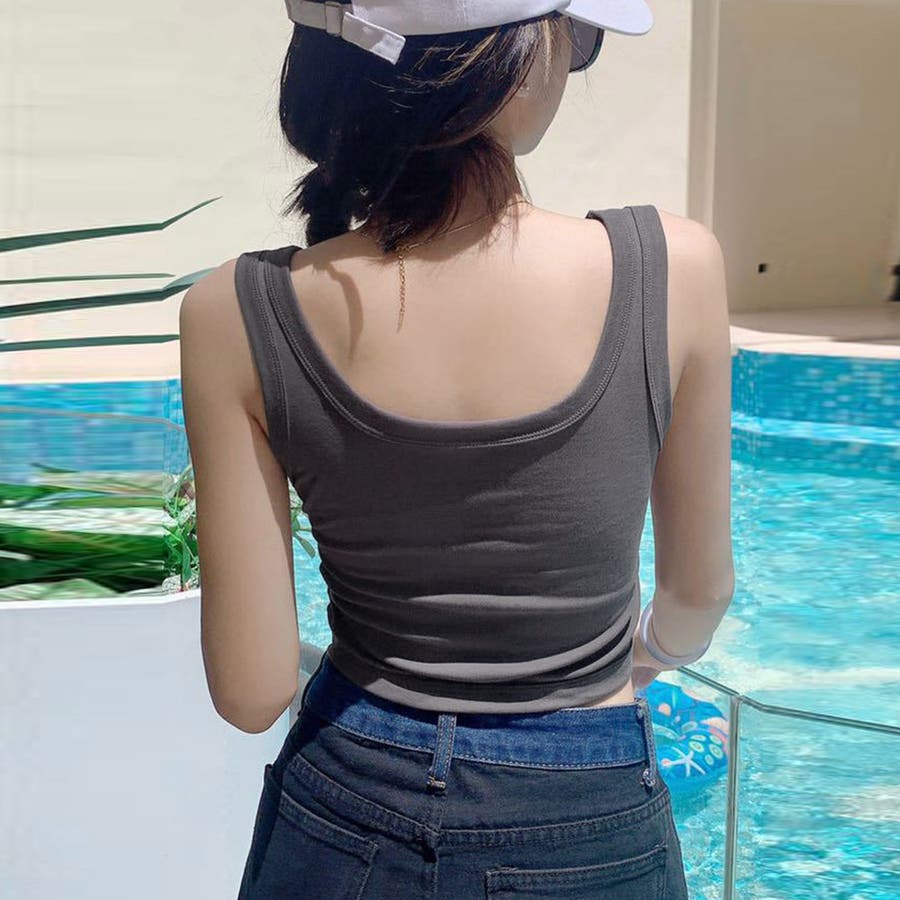 トップスとしても、インナーとしても使い勝手抜群なカップインタンクトップ