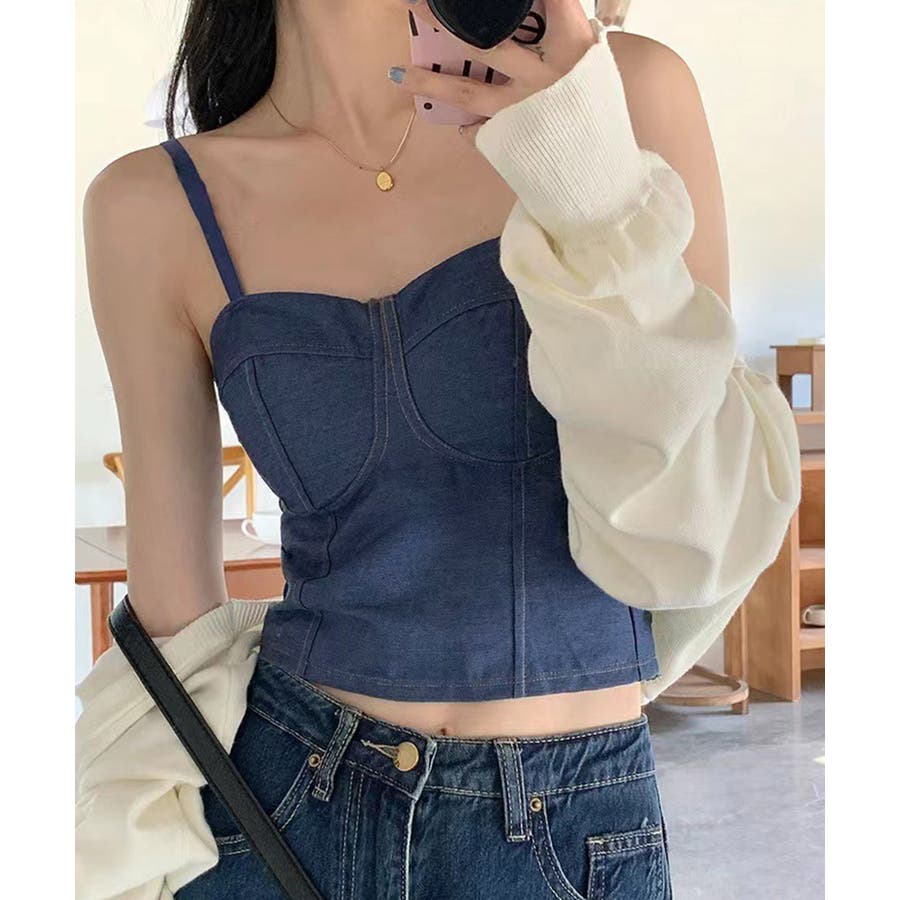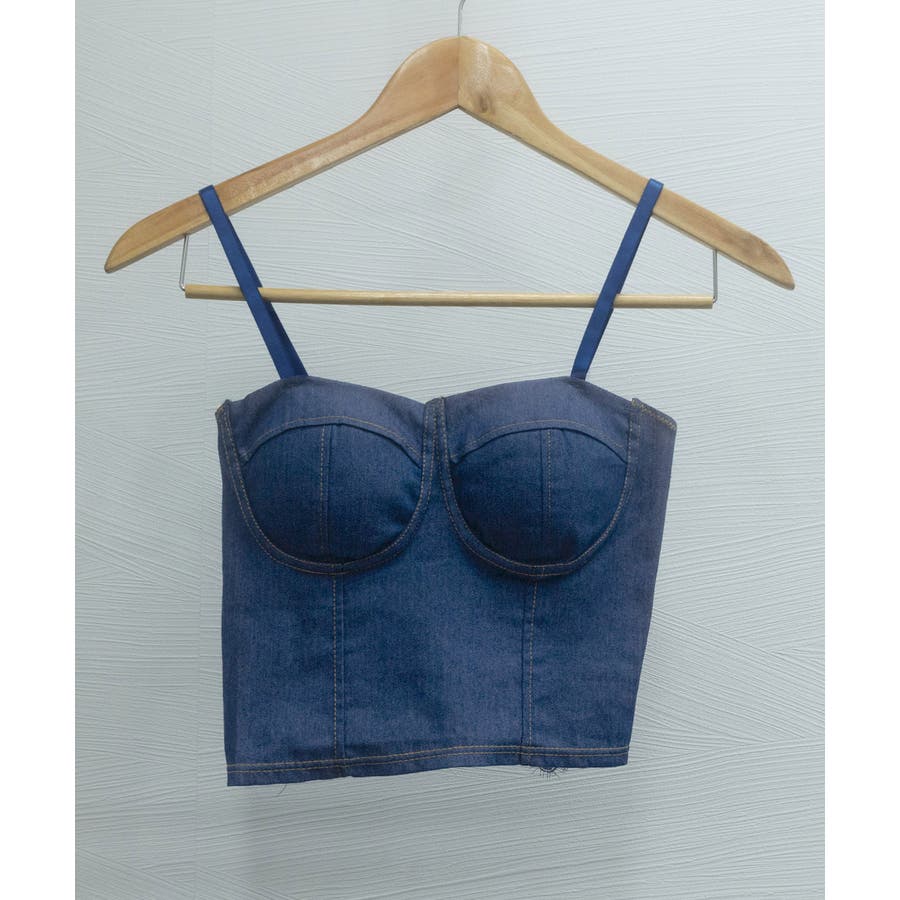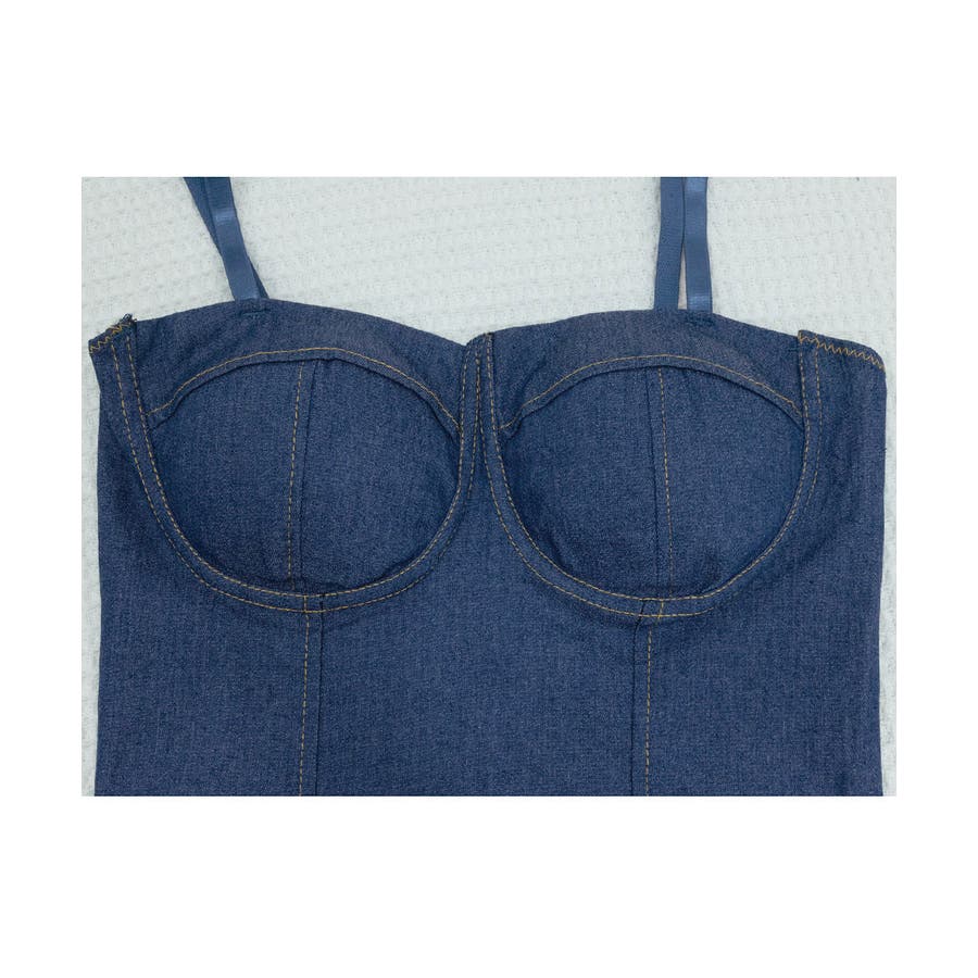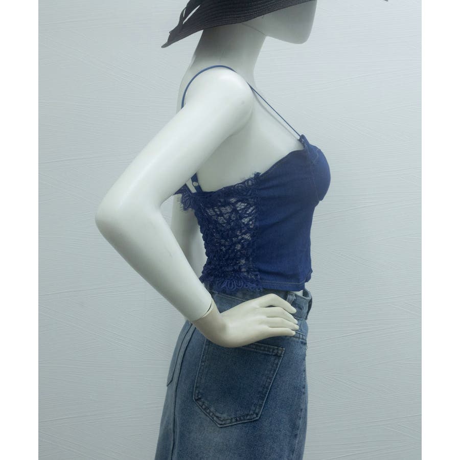 デニム風キャミ ビスチェ バックレース