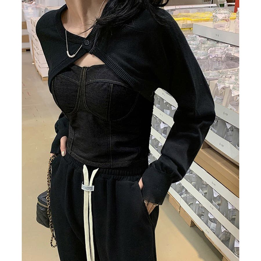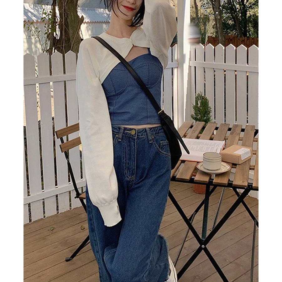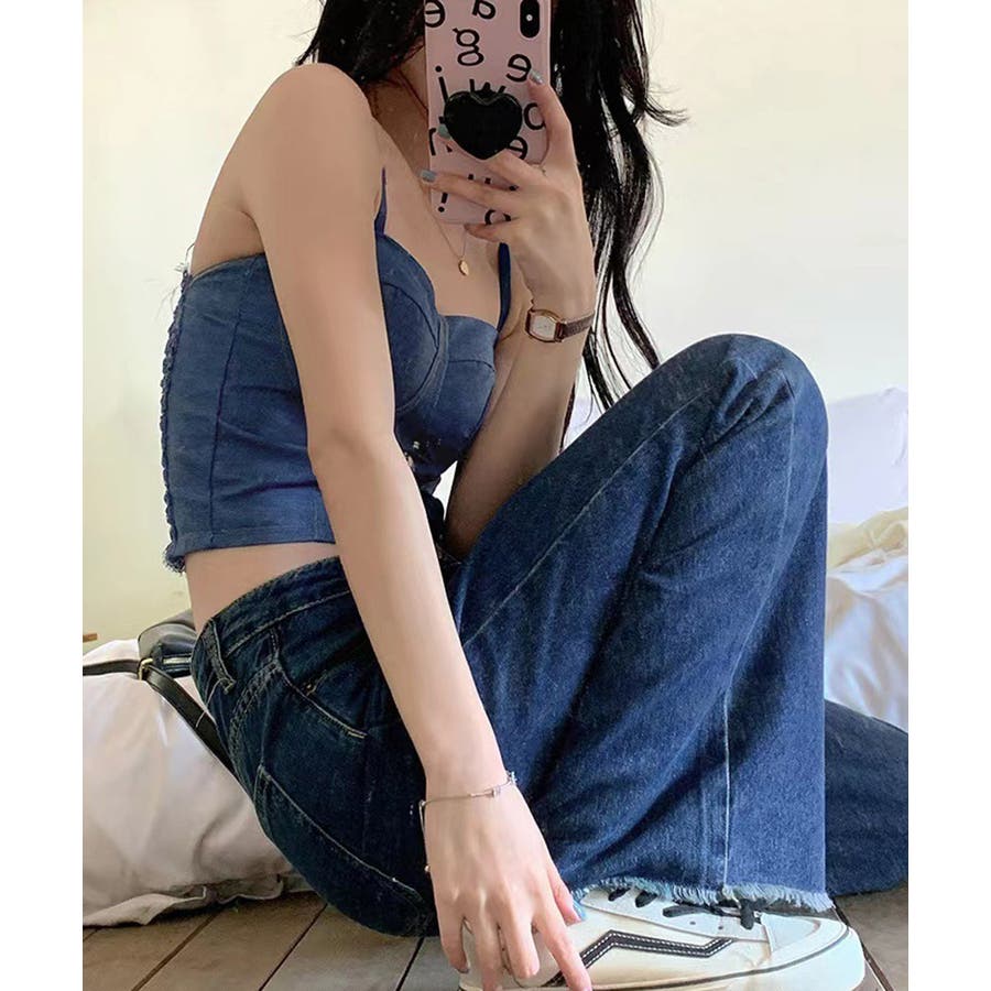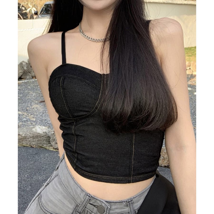 デニム風キャミ ビスチェ バックレース