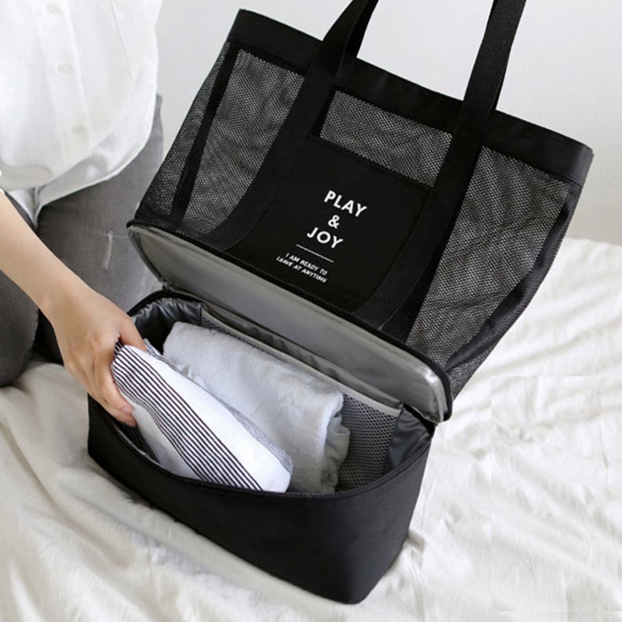 メッシュ素材を使用した通気性抜群の大容量トートバッグです。