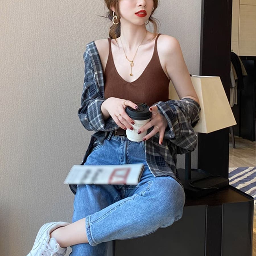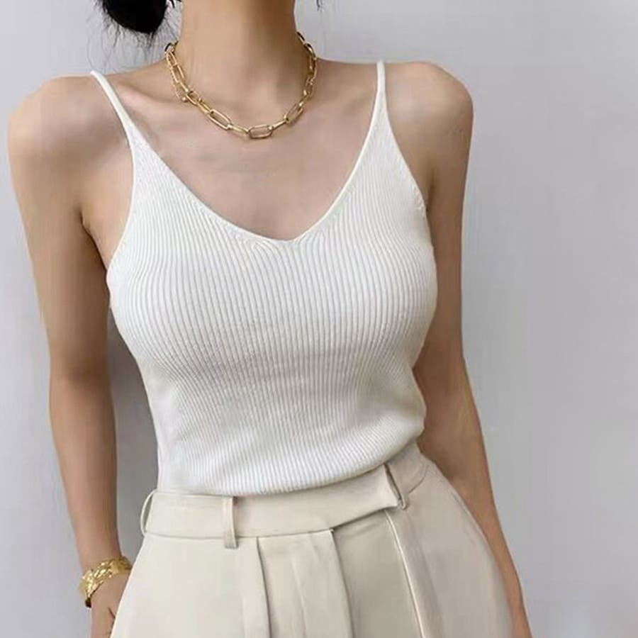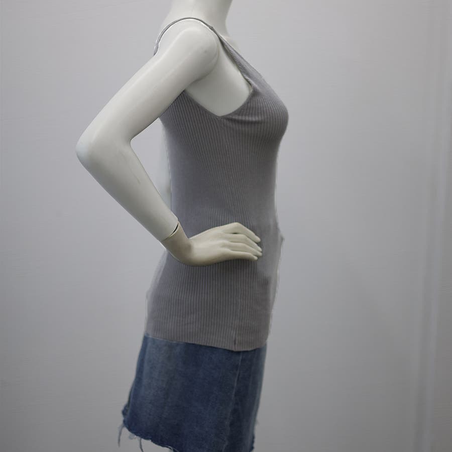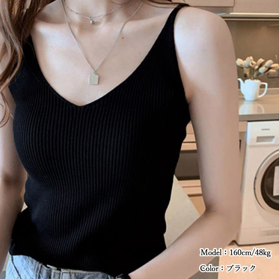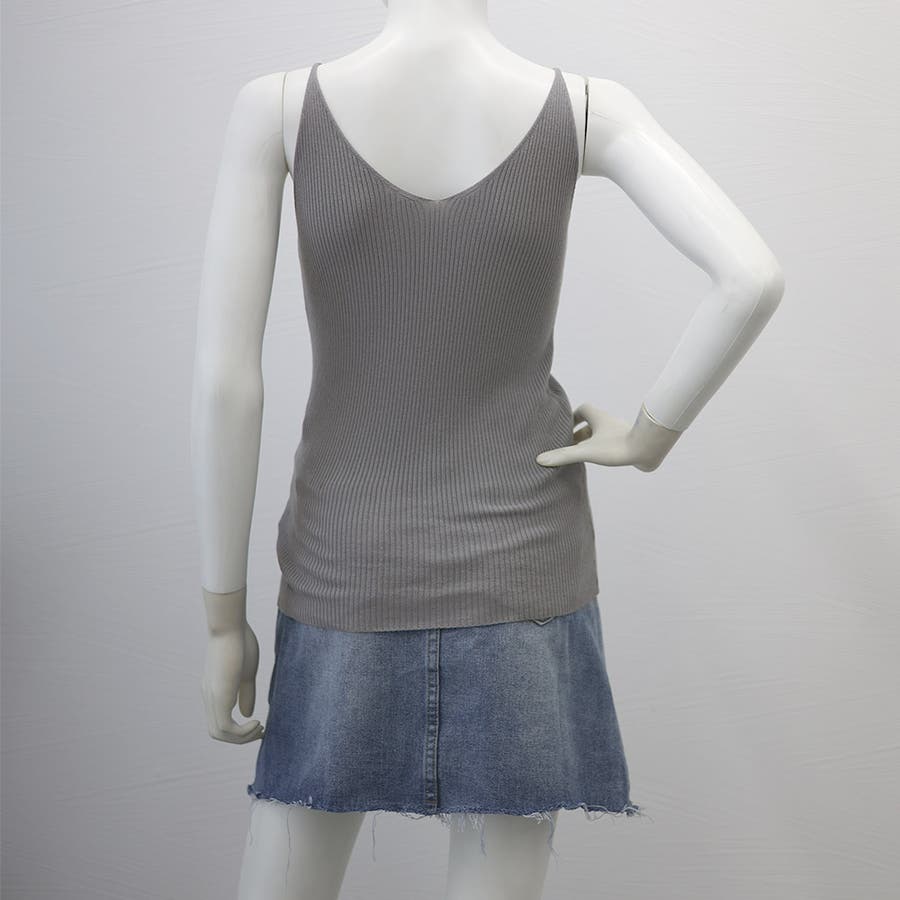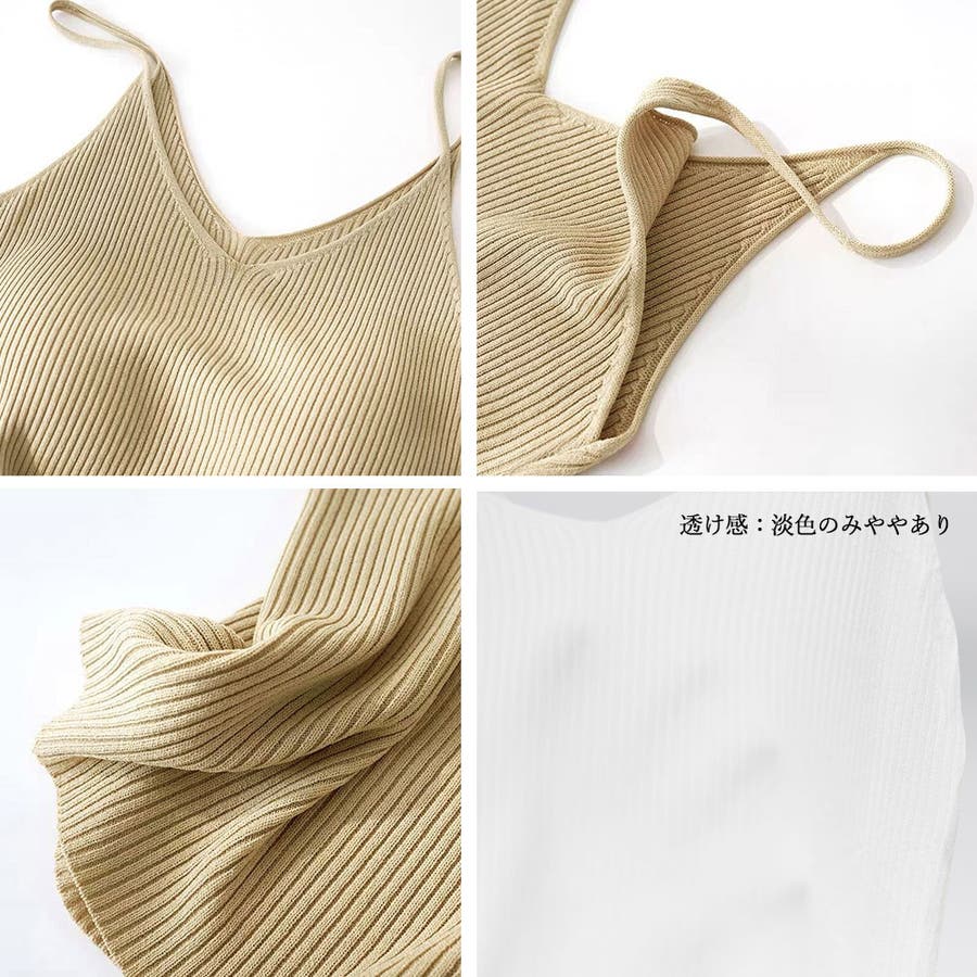 スタイリングのインナーに欠かせないニットキャミソール、ミディアム丈は安心感のあるデザインです。