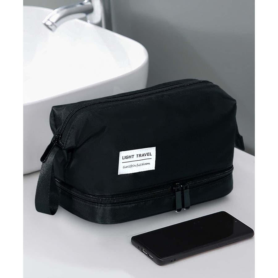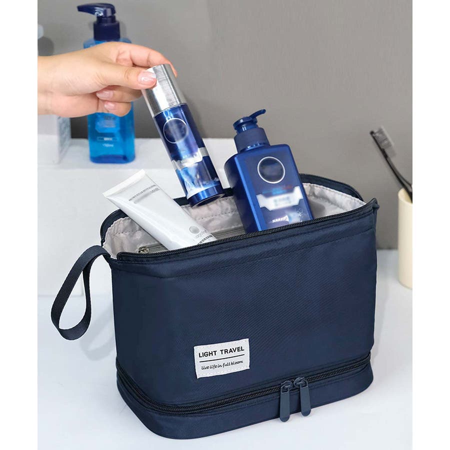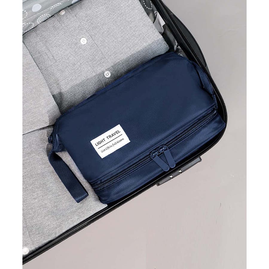 持ち歩き 男女兼用 大容量 トラベルポーチ 仕切り ファスナー付き メイクポーチ 使いやすい 便利グッズ