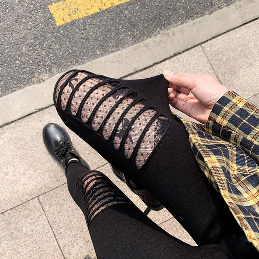 レース切り替え 美脚 ストレッチ パンツ 黒 スキニーパンツ ウエストゴム 無地 ボトムス
