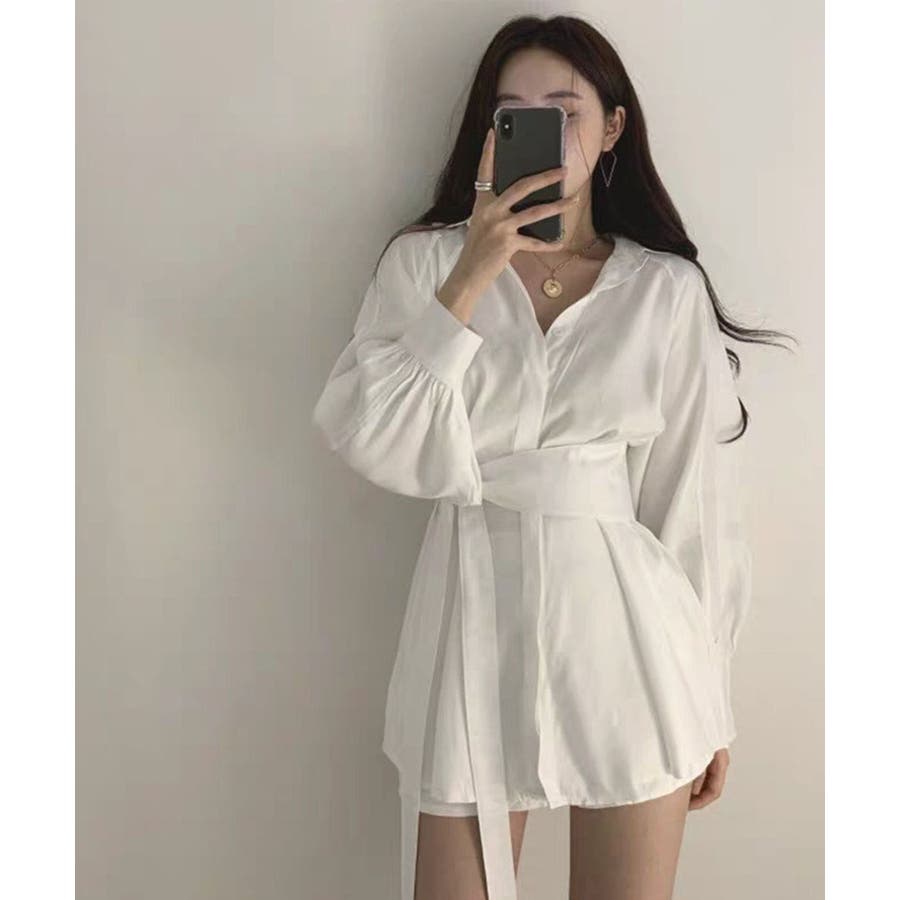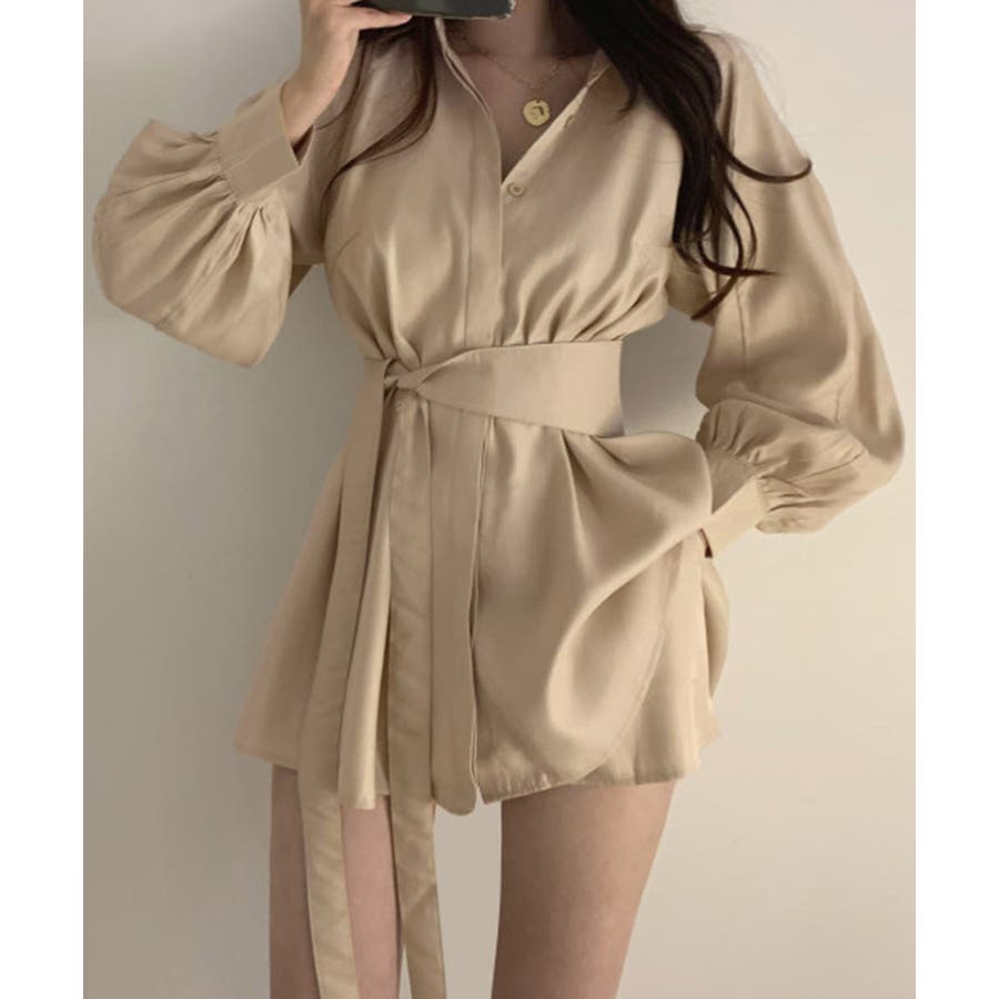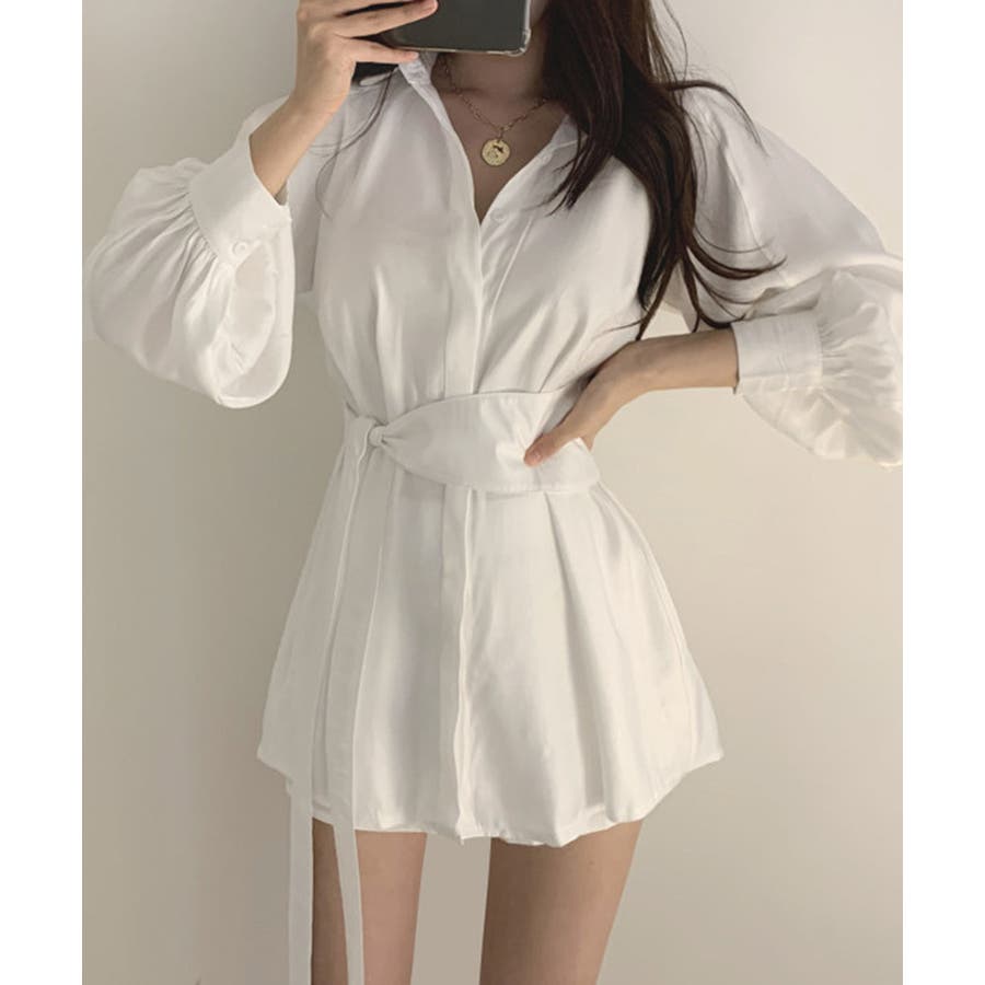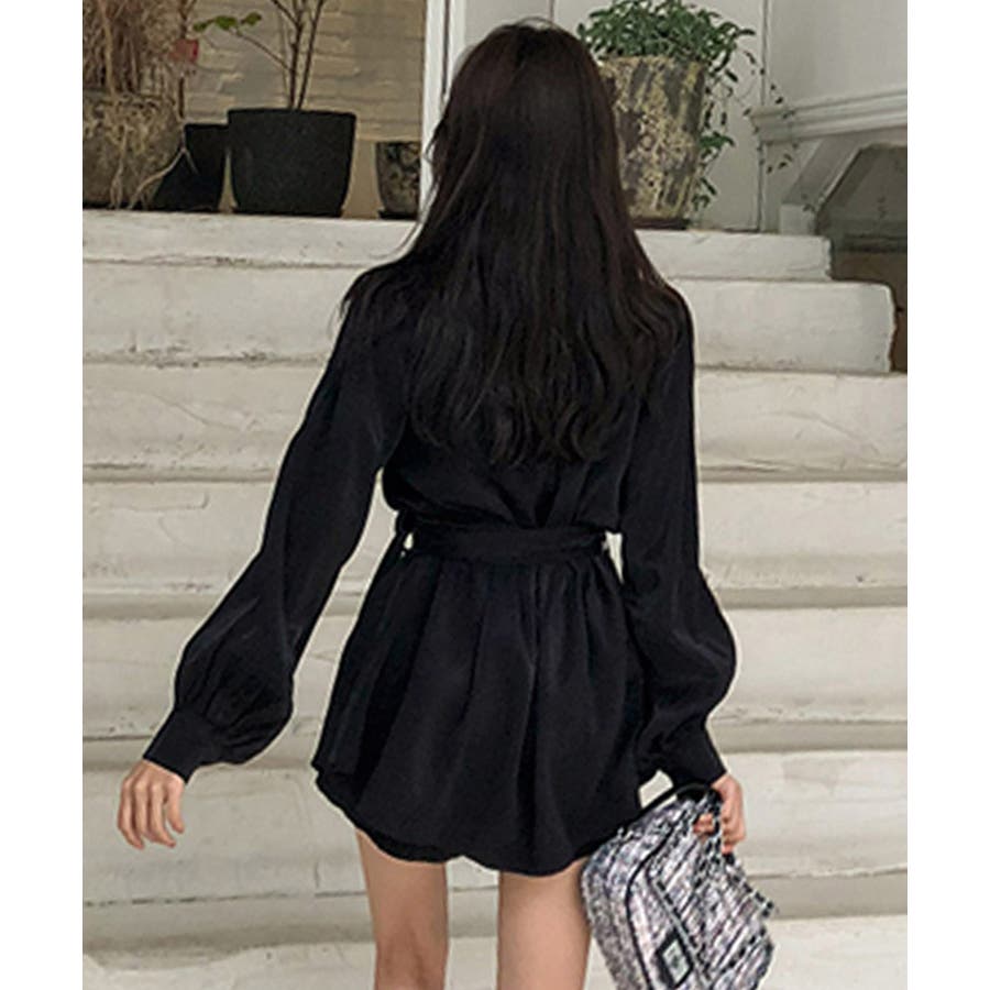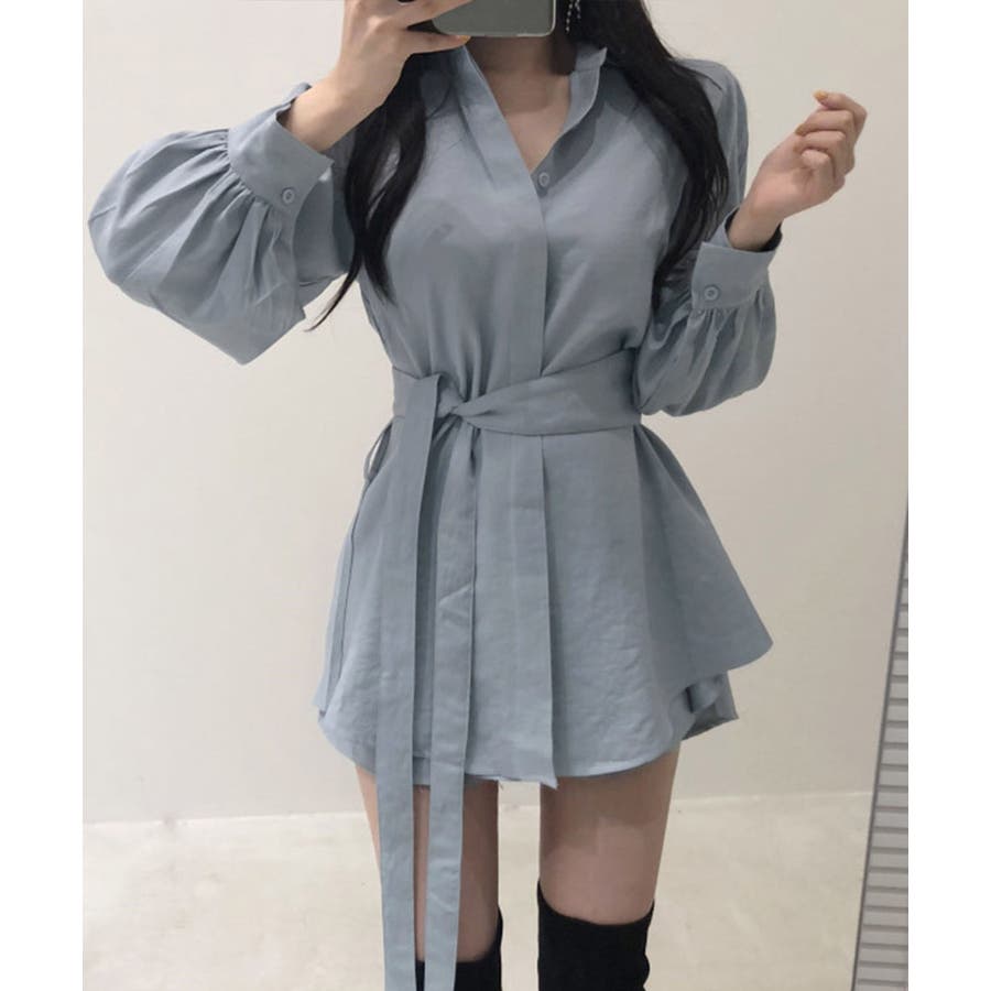 きれいめ ボリューム袖 薄手 襟付き 体型カバーワンピ オルチャン 女性らしい おしゃれ ショート丈 ミニワンピース