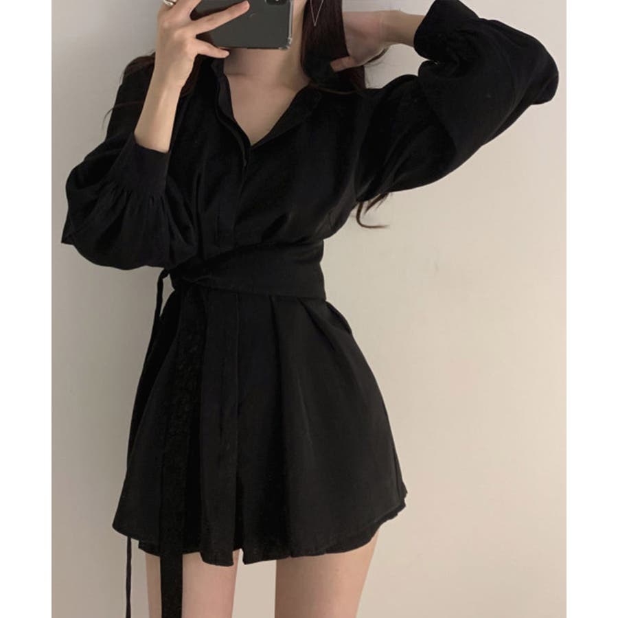 【ブラック】シャツワンピース長袖 レディース 韓国風