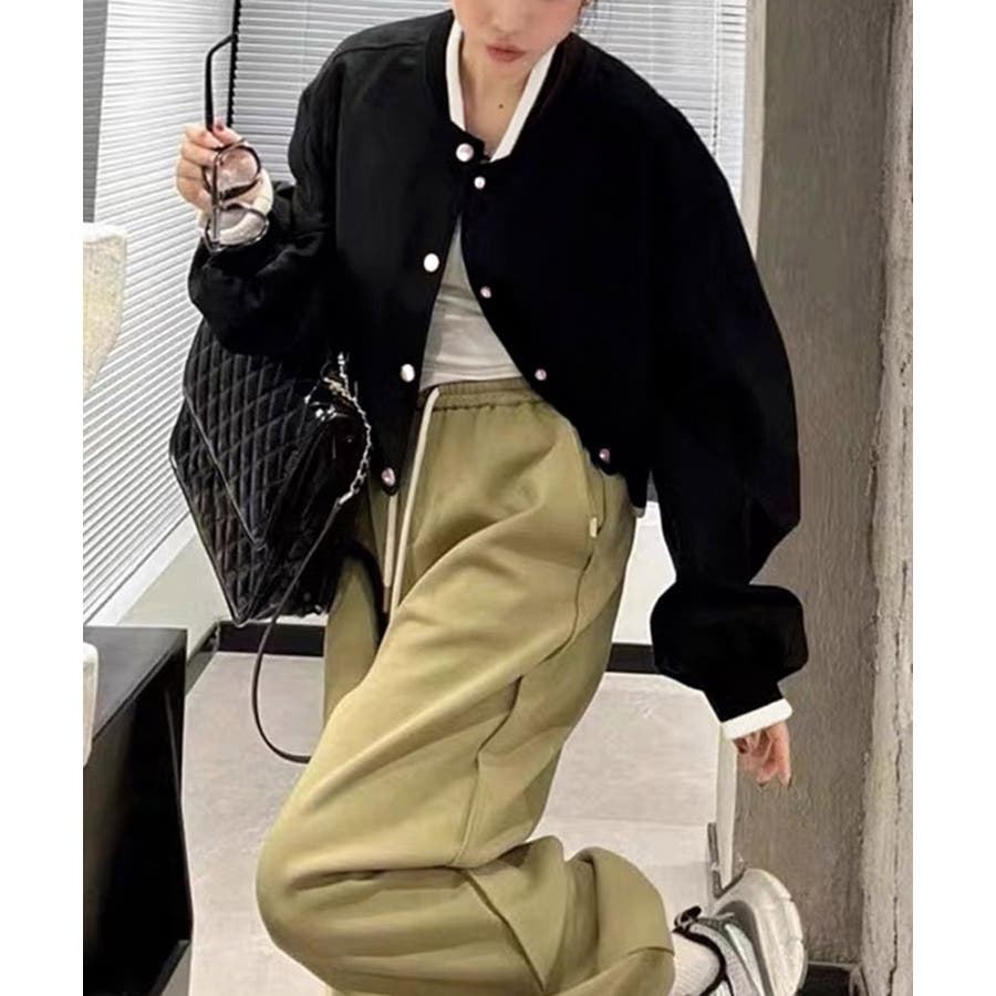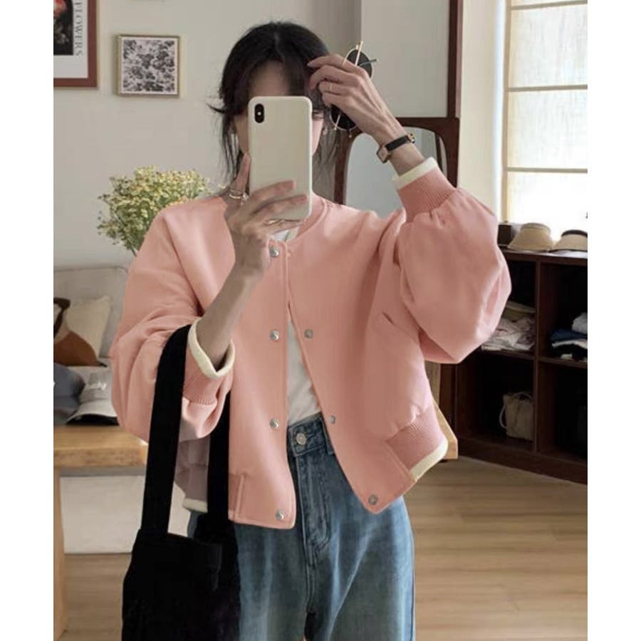 シングルブレストジャケット ショートジャケット 大人カジュアル 通勤通学 ブルゾン スタジャン 無地 韓国ファッション