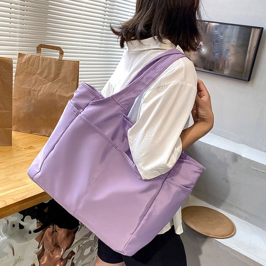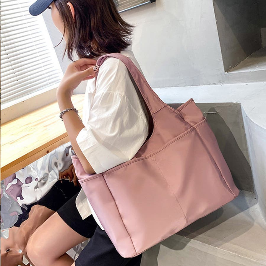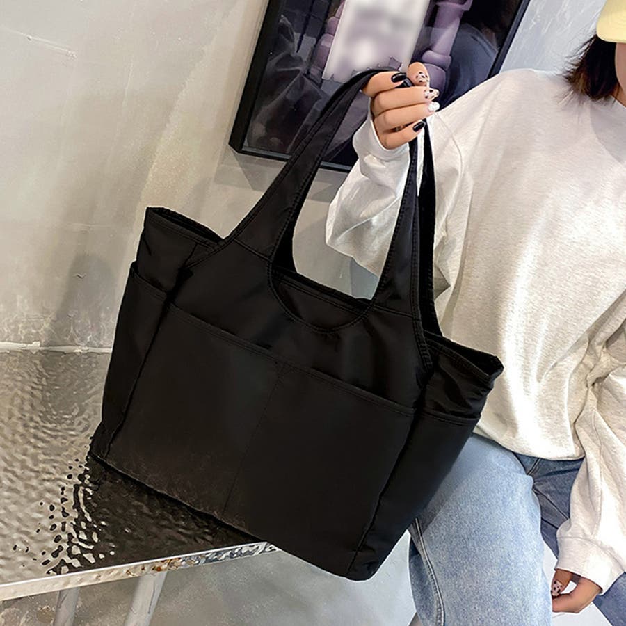 丈夫なナイロン素材で作り上げたシンプルな大容量トートバッグ。